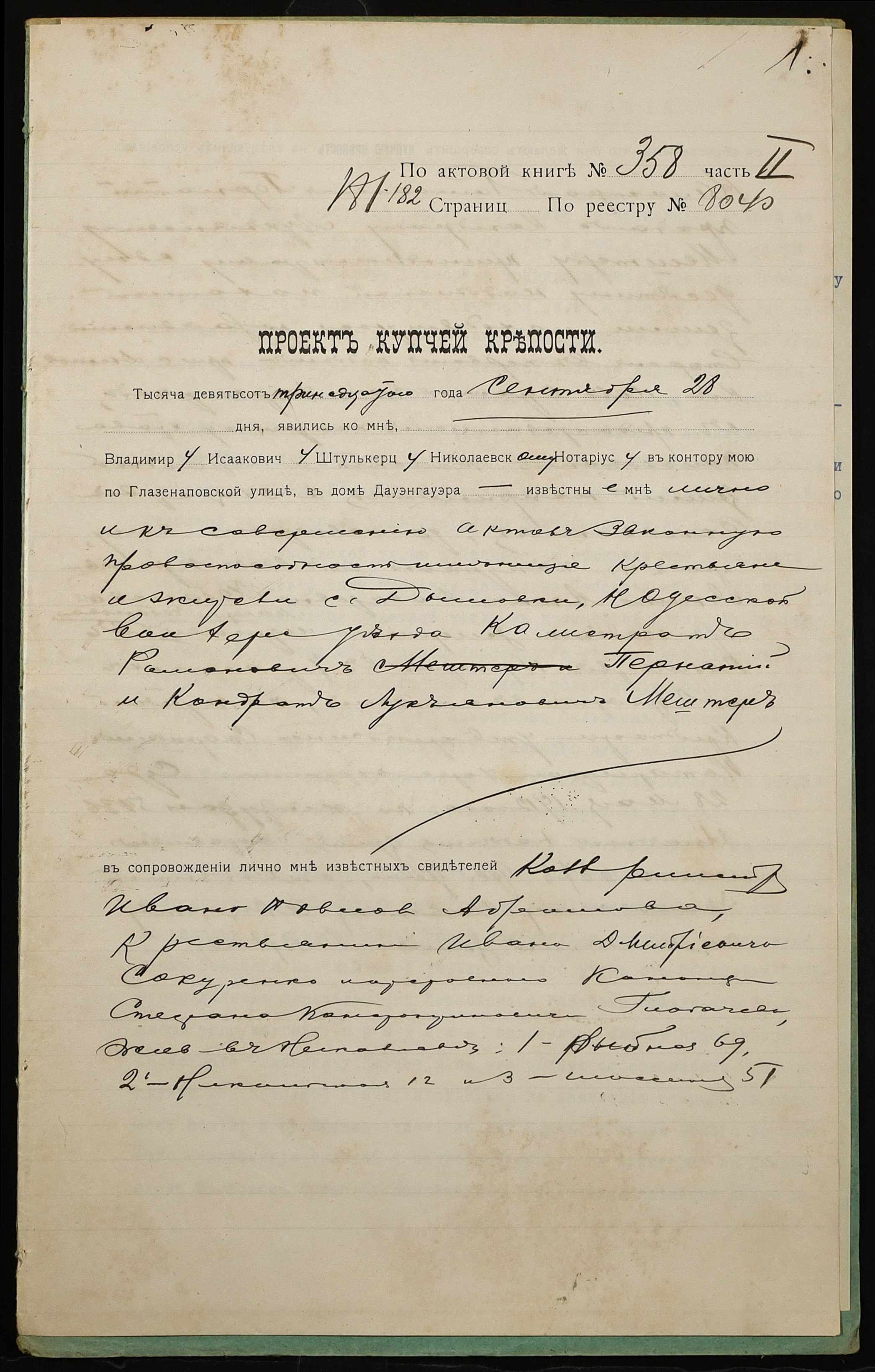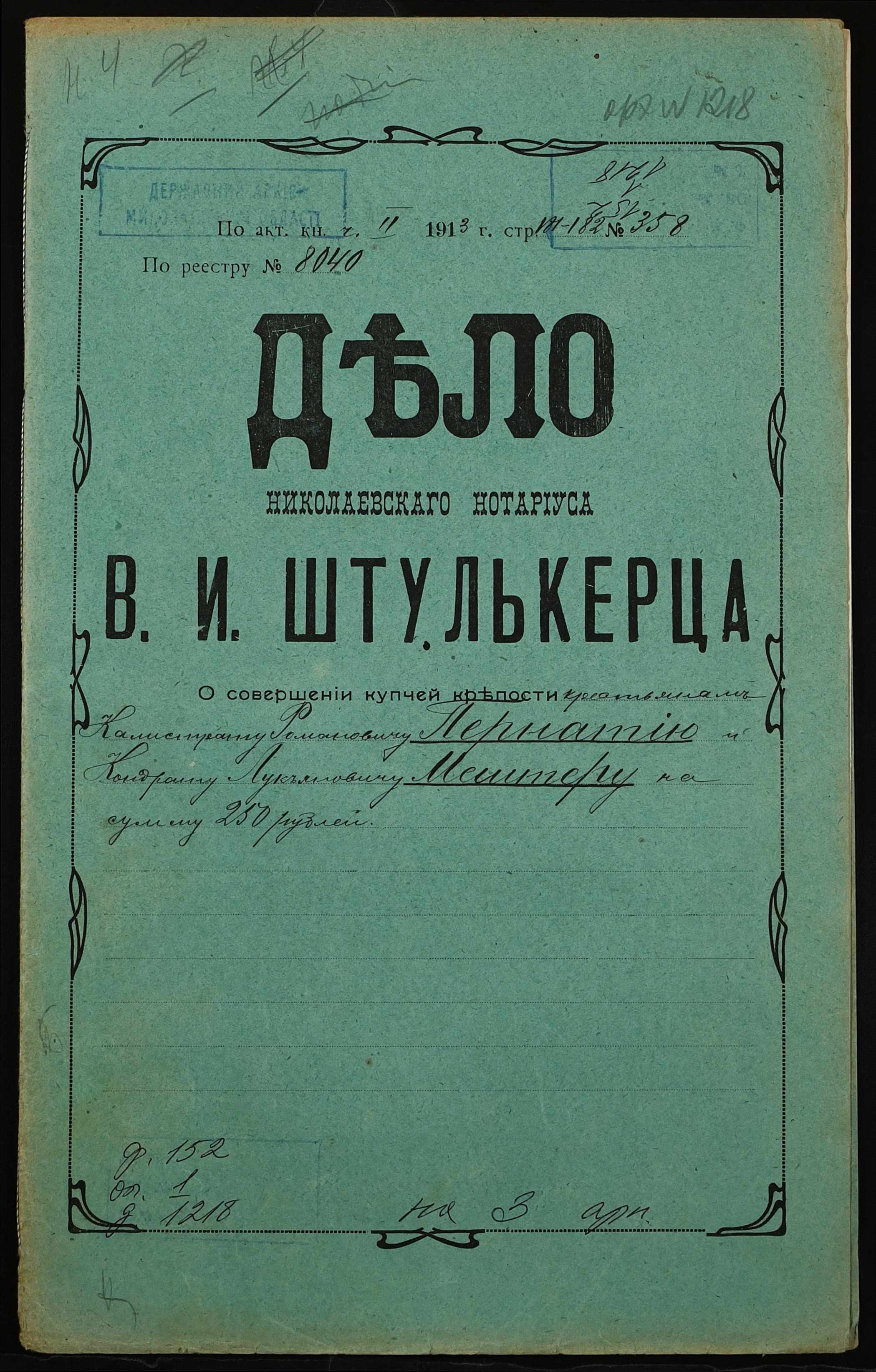 ◦ ◦ Фонд № 152 “Контора миколаївського нотаріуса Херсонського окружного суду Штулькерца Володимира Ісааковича”