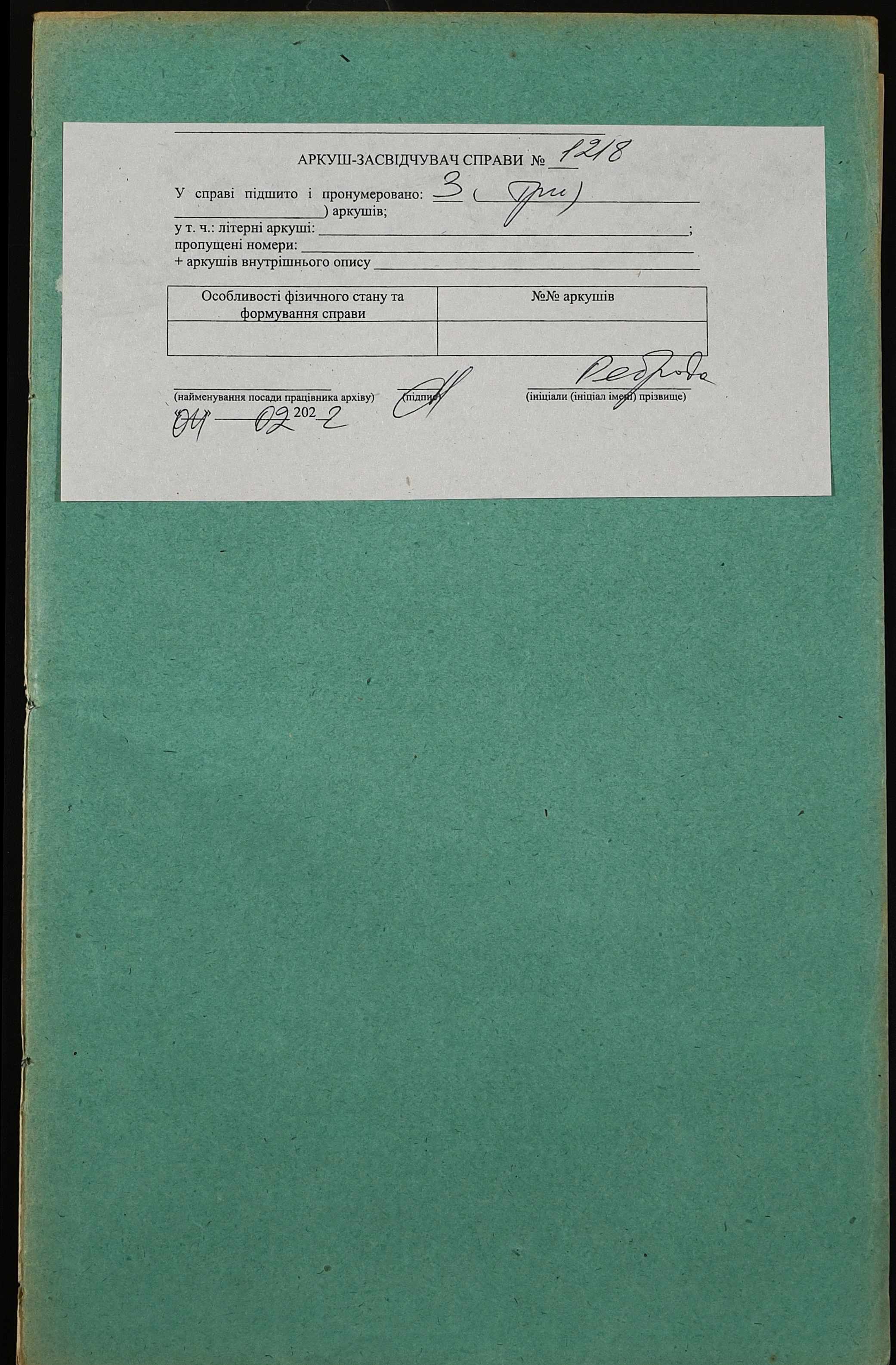 Фонд 152 / Опис 1 / Справа 1218