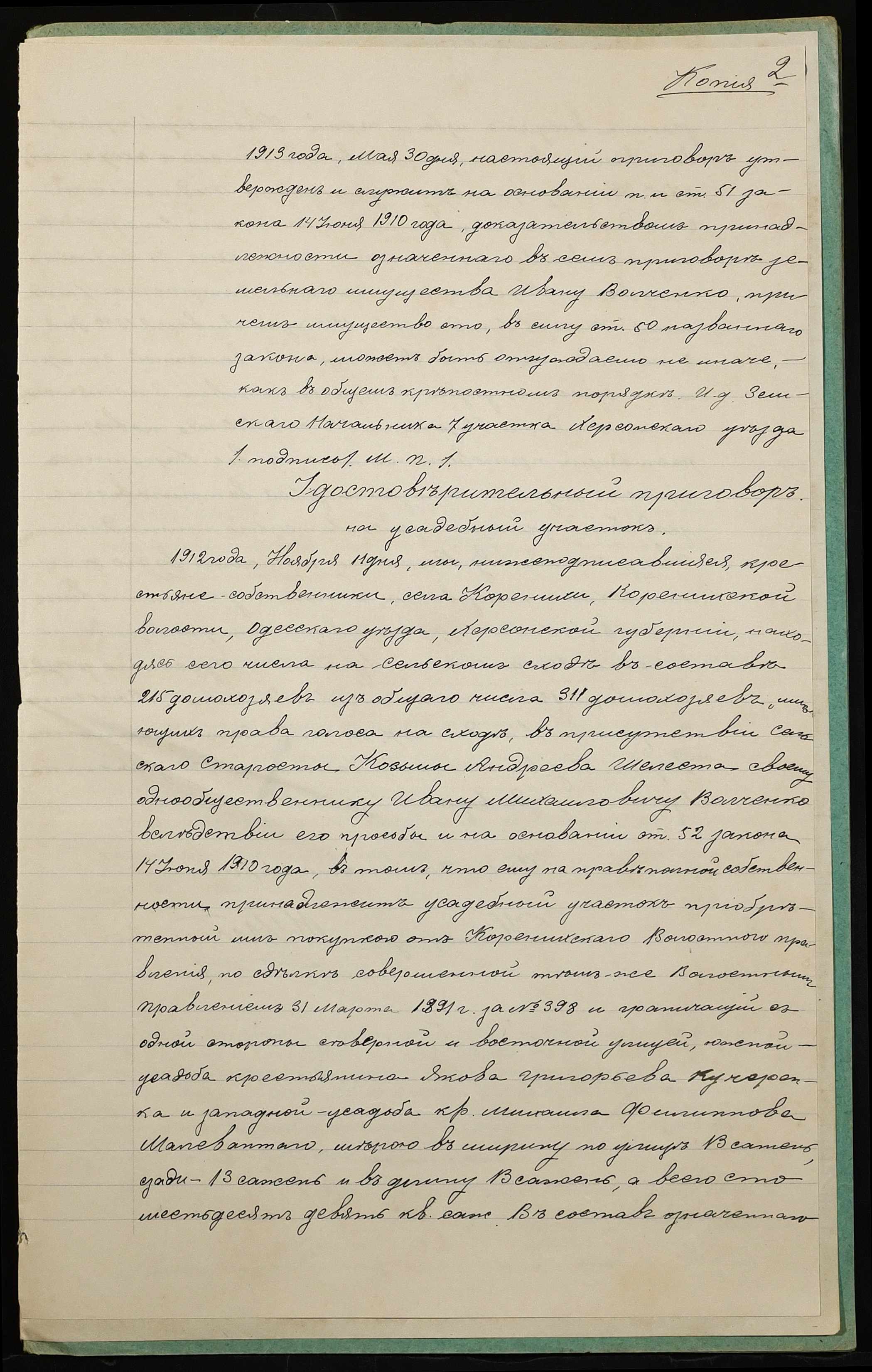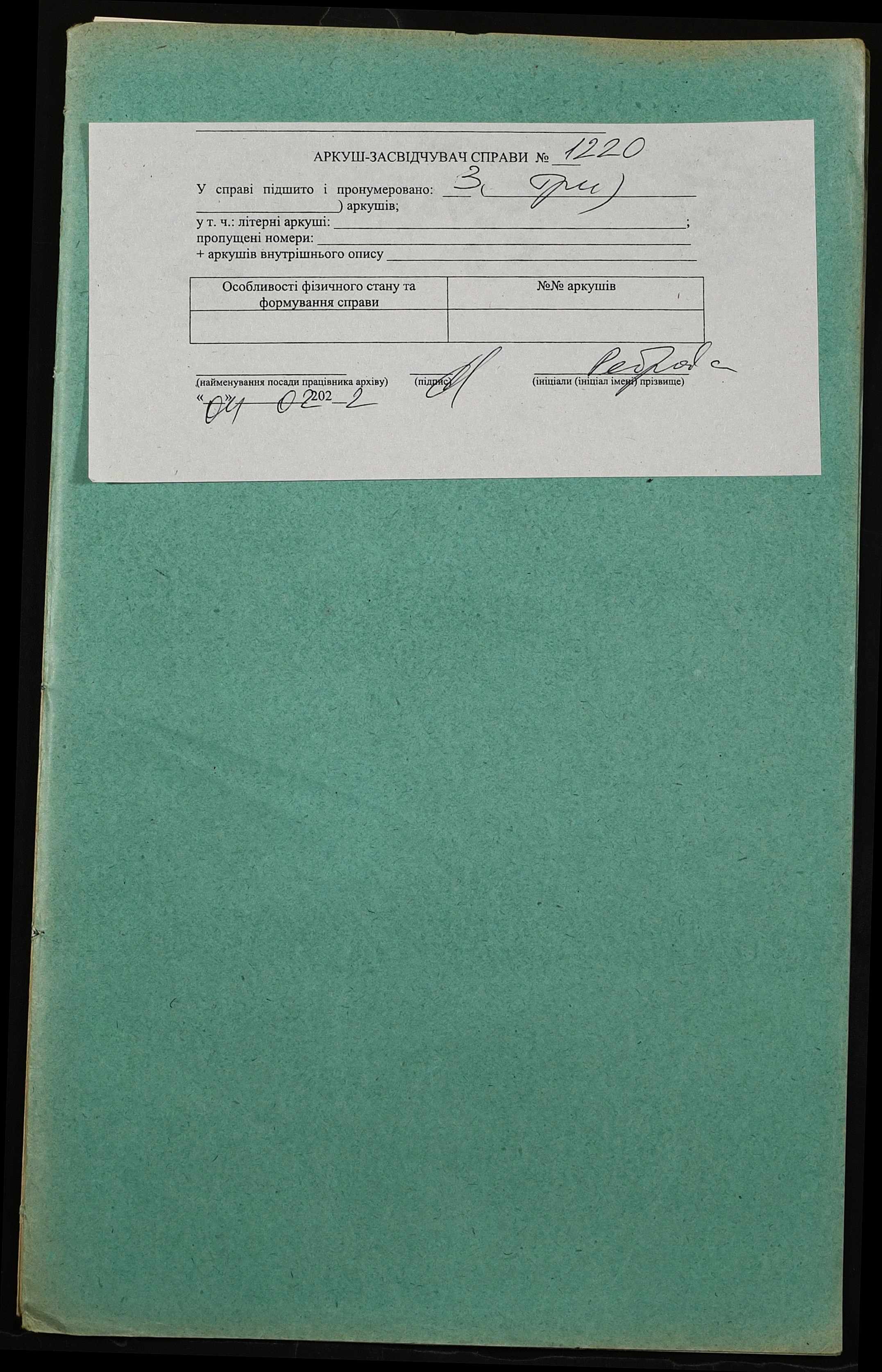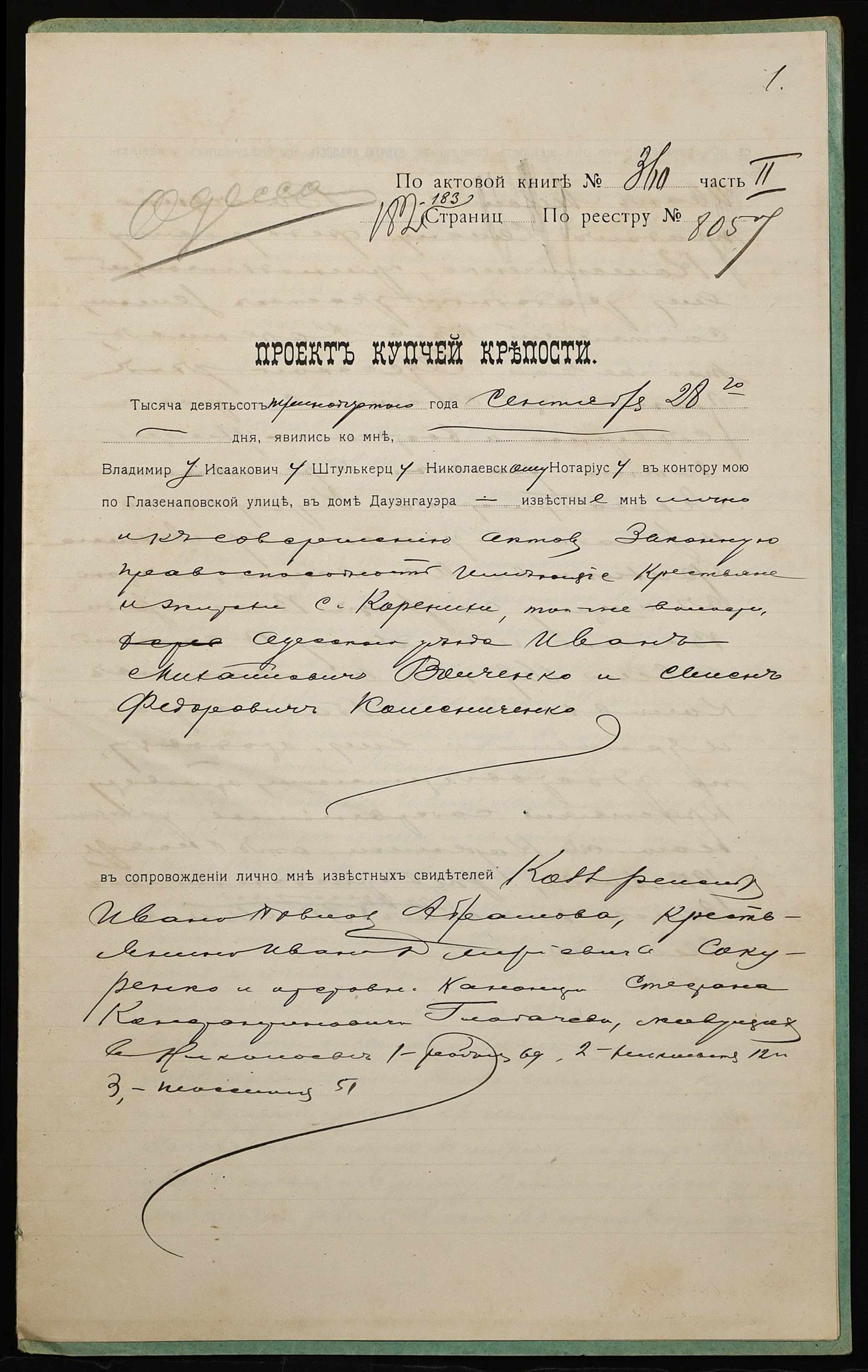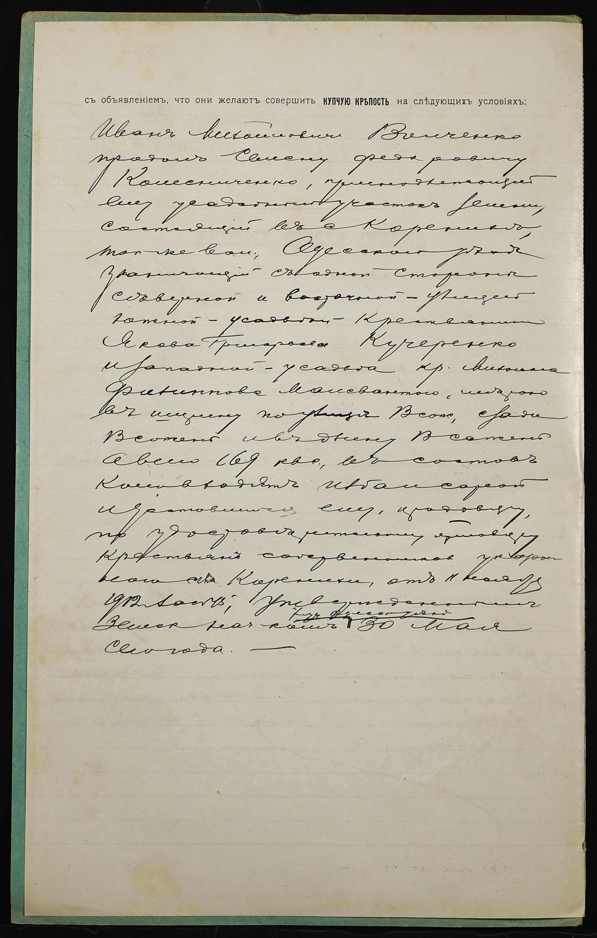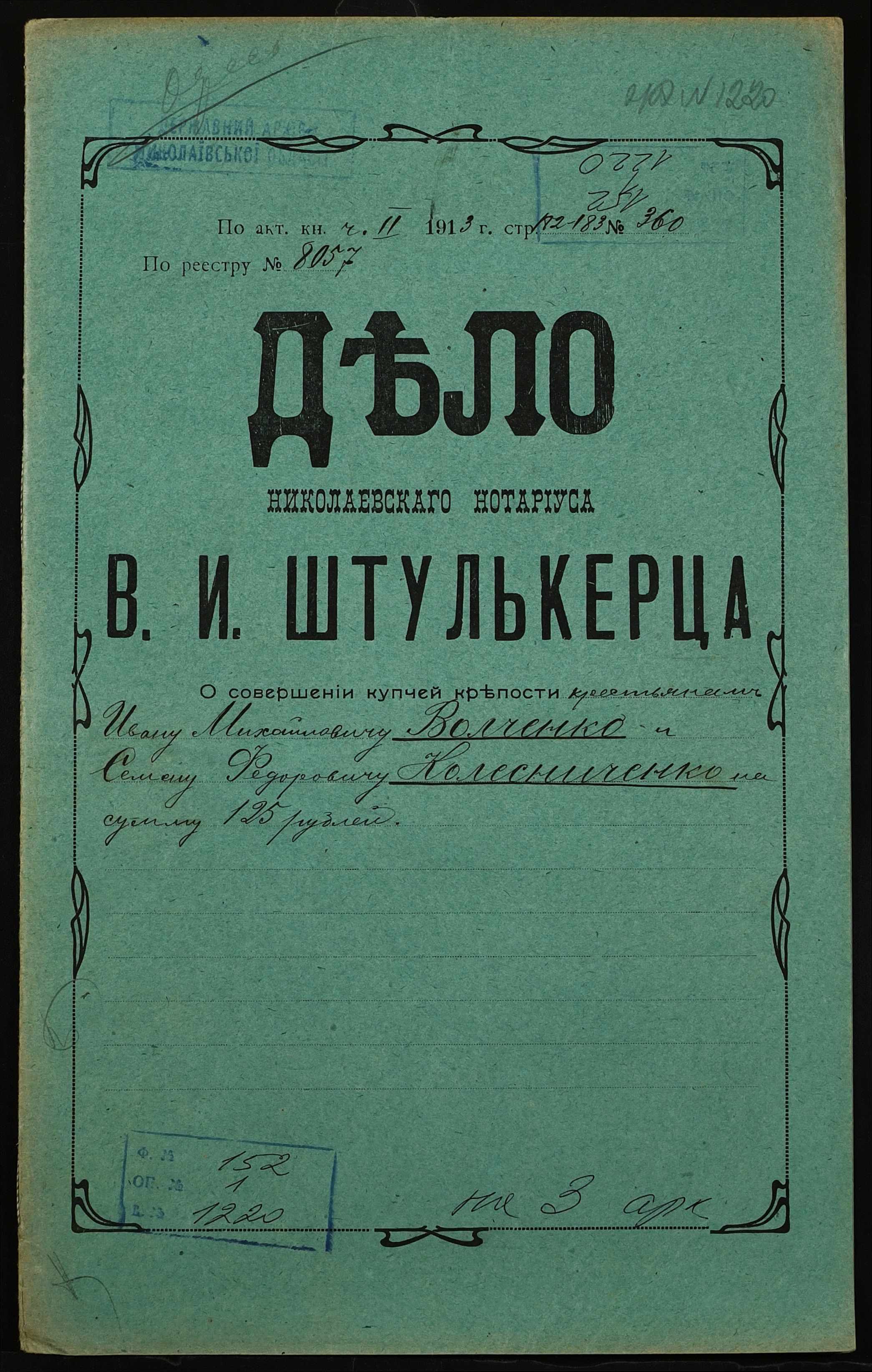• • • • Справа № 1220 “Справа про вчинення купчої про продаж землі селянином Волченком Іваном Михайловичем (Волченко Иваном Михайловичем) на користь селянина Колесниченка Семена Федоровича (Колесниченко Семена Федоровича)”