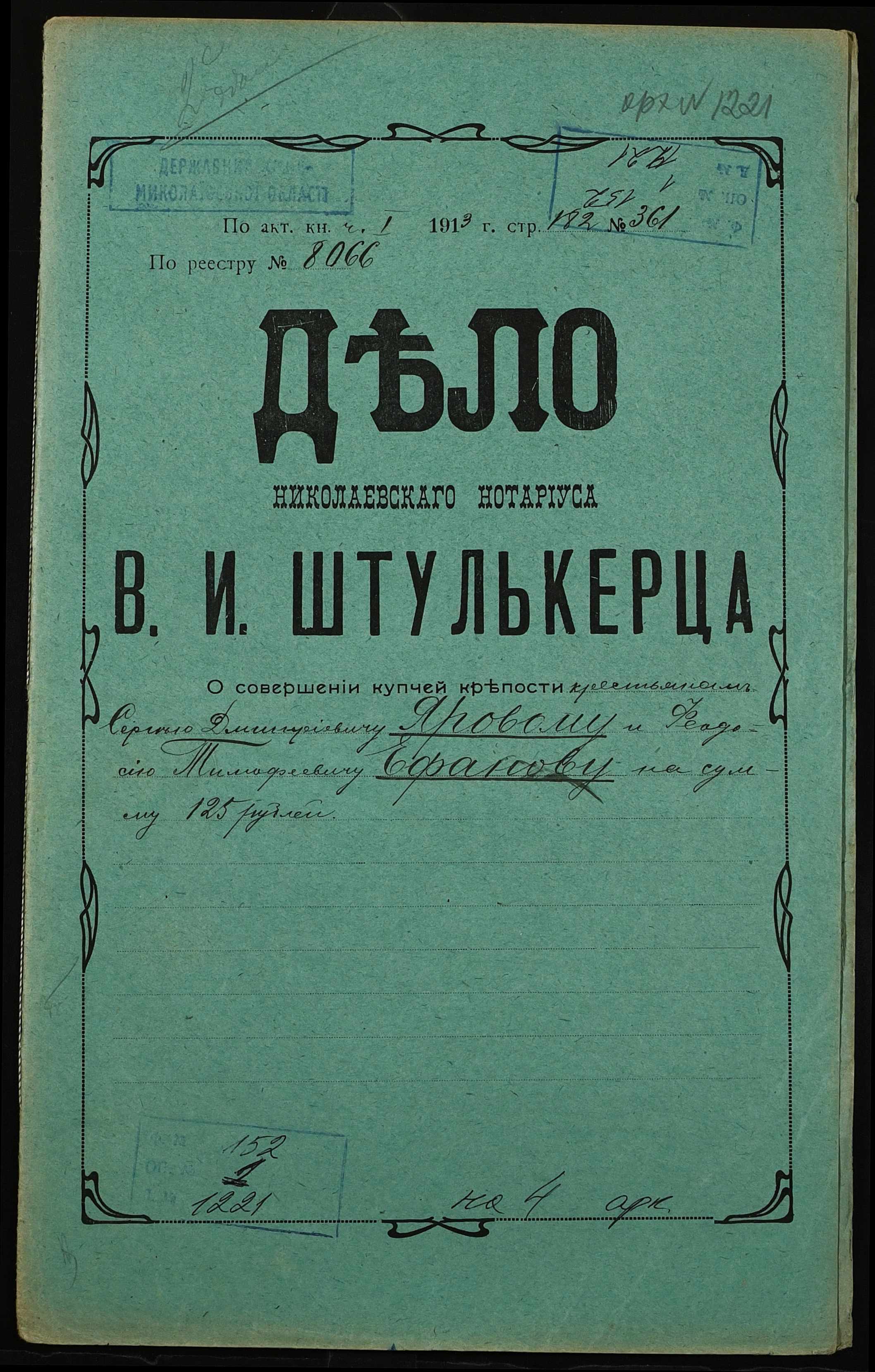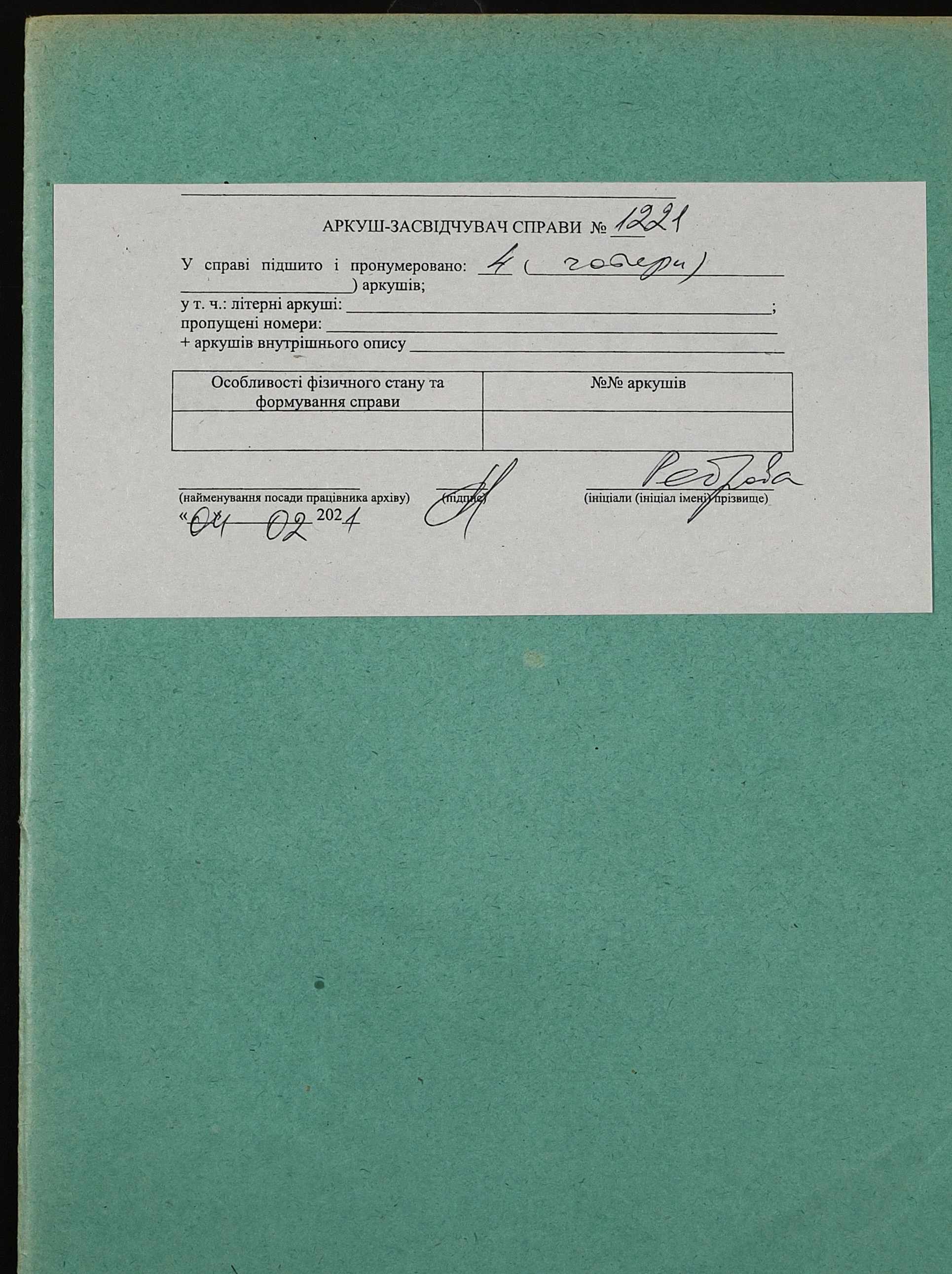 • • • • Справа № 1221 “Справа про вчинення купчої про продаж землі селянином Яровим Сергієм Дмитровичем (Яровым Сергеем Дмитриевичем) на користь селянина Єфанова Феодосія Тимофійовича (Ефанова Феодосия Тимофеевича)”