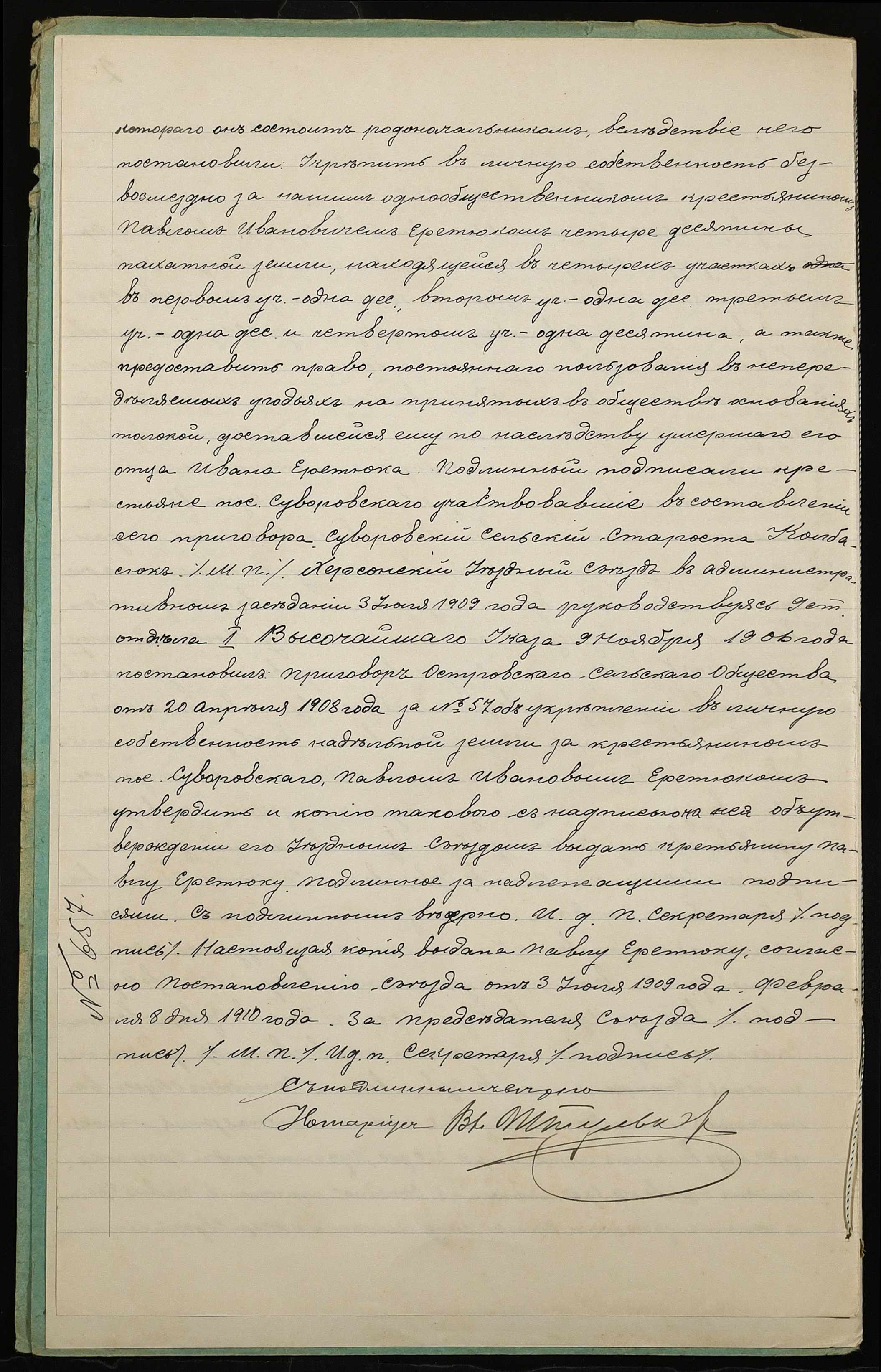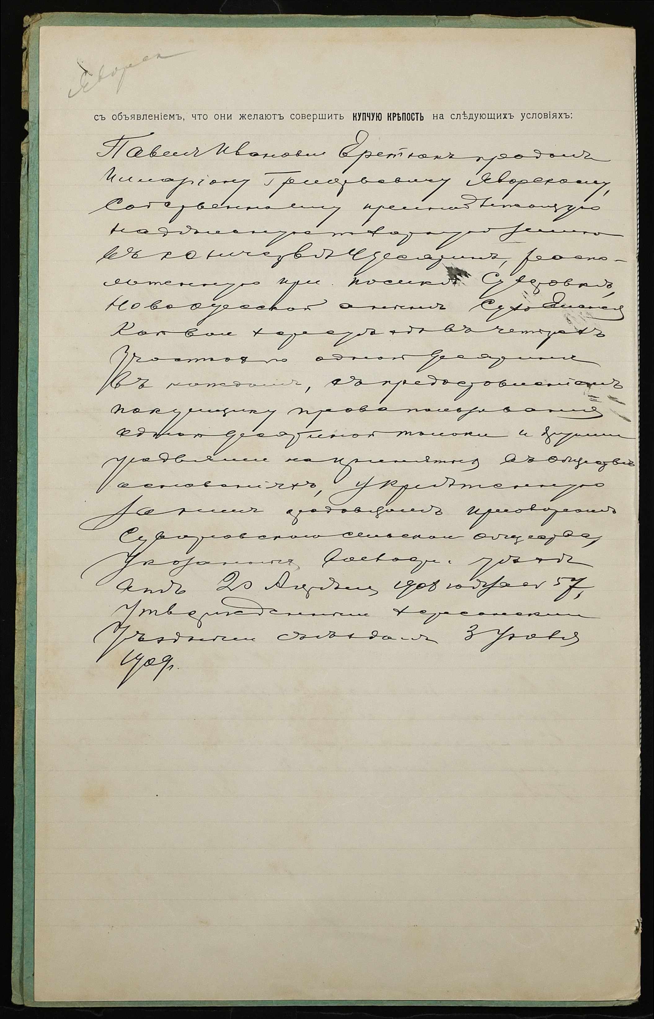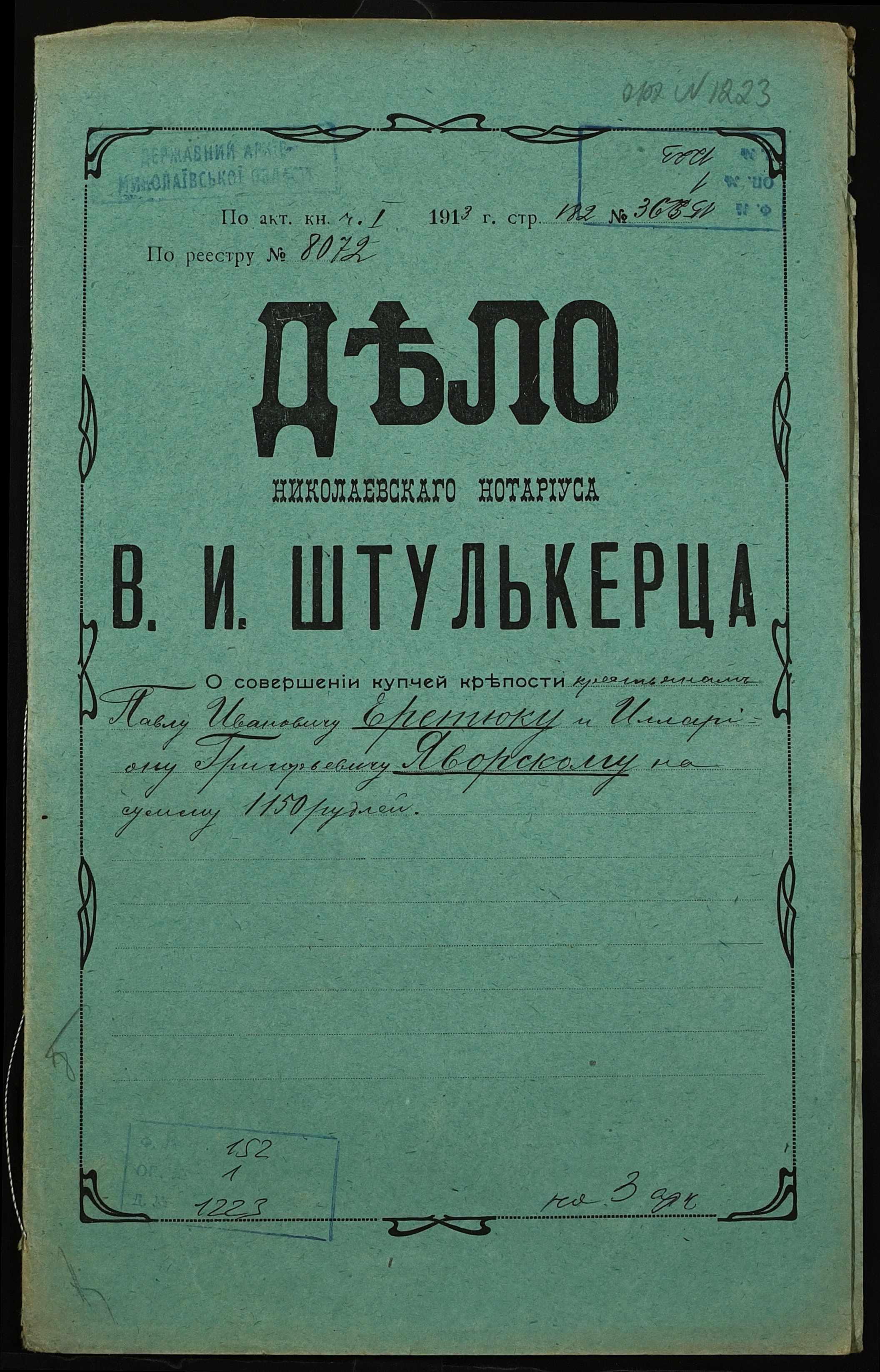 • • • • Справа № 1223 “Справа про вчинення купчої про продаж землі селянином Єретюком Павлом Івановичем (Еретюком Павлом Ивановичем) на користь селянина Яворського Іларіона Григоровича (Яворского Иллариона Григорьевича)”