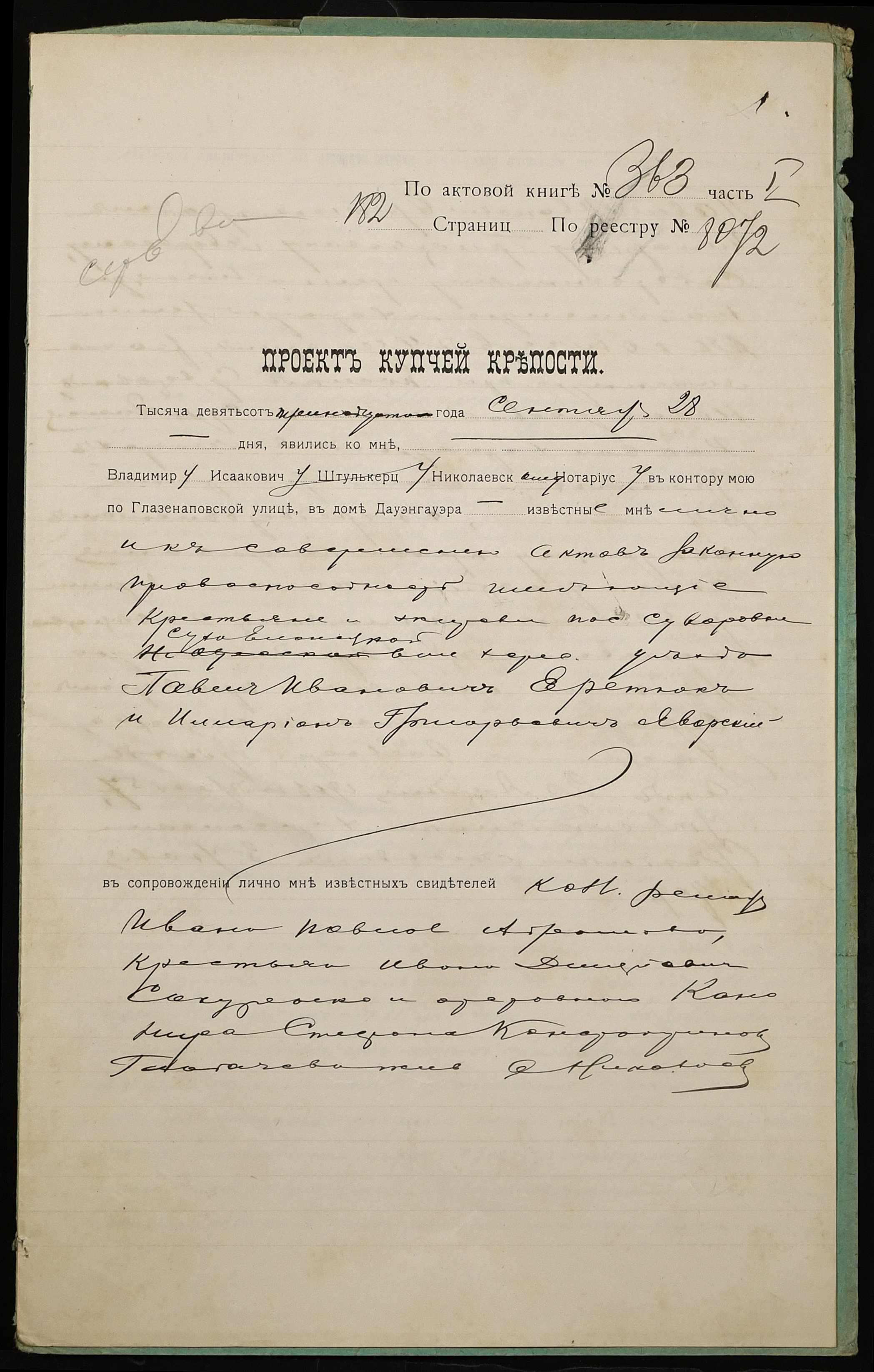 ◦ ◦ Фонд № 152 “Контора миколаївського нотаріуса Херсонського окружного суду Штулькерца Володимира Ісааковича”