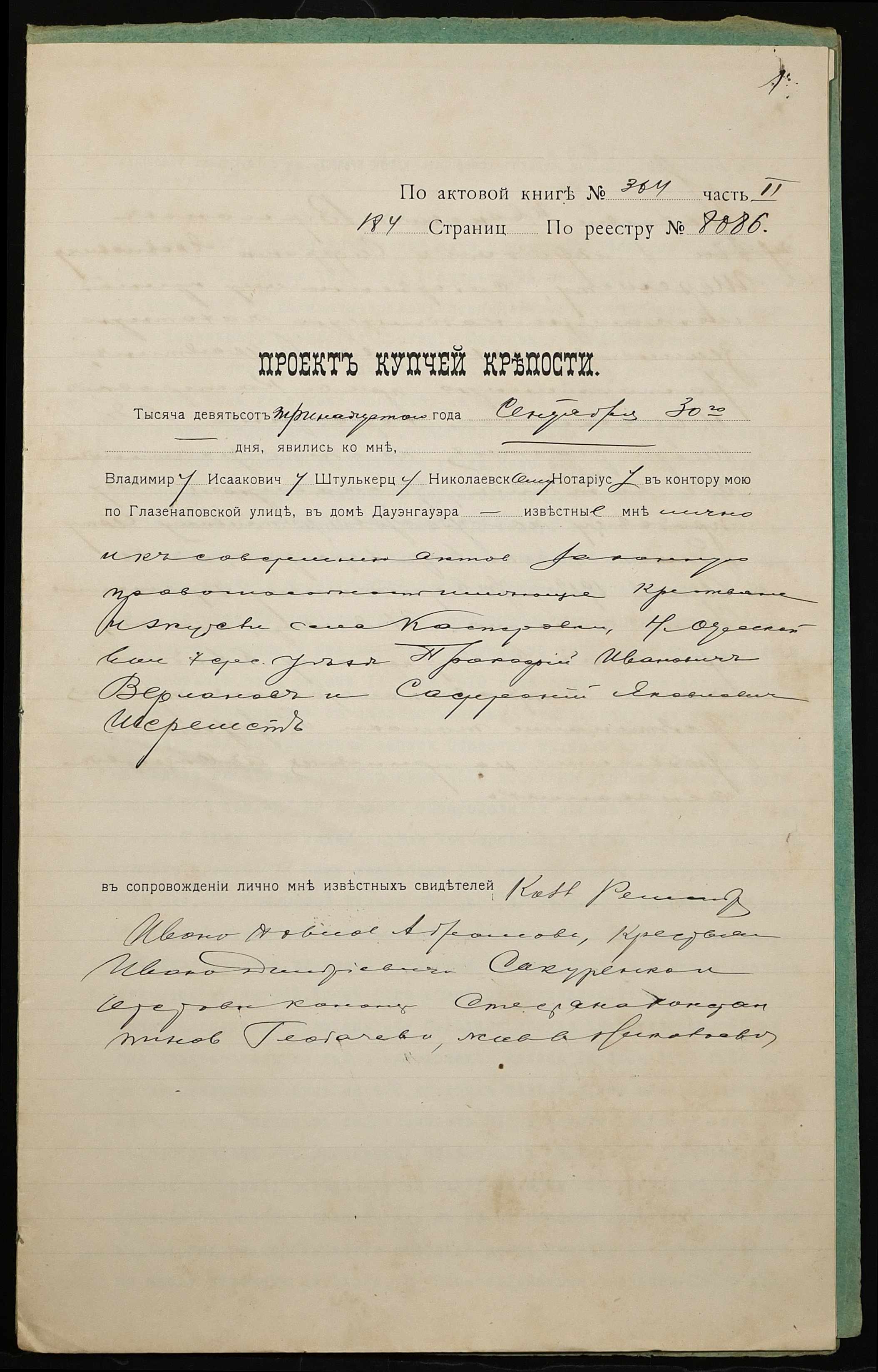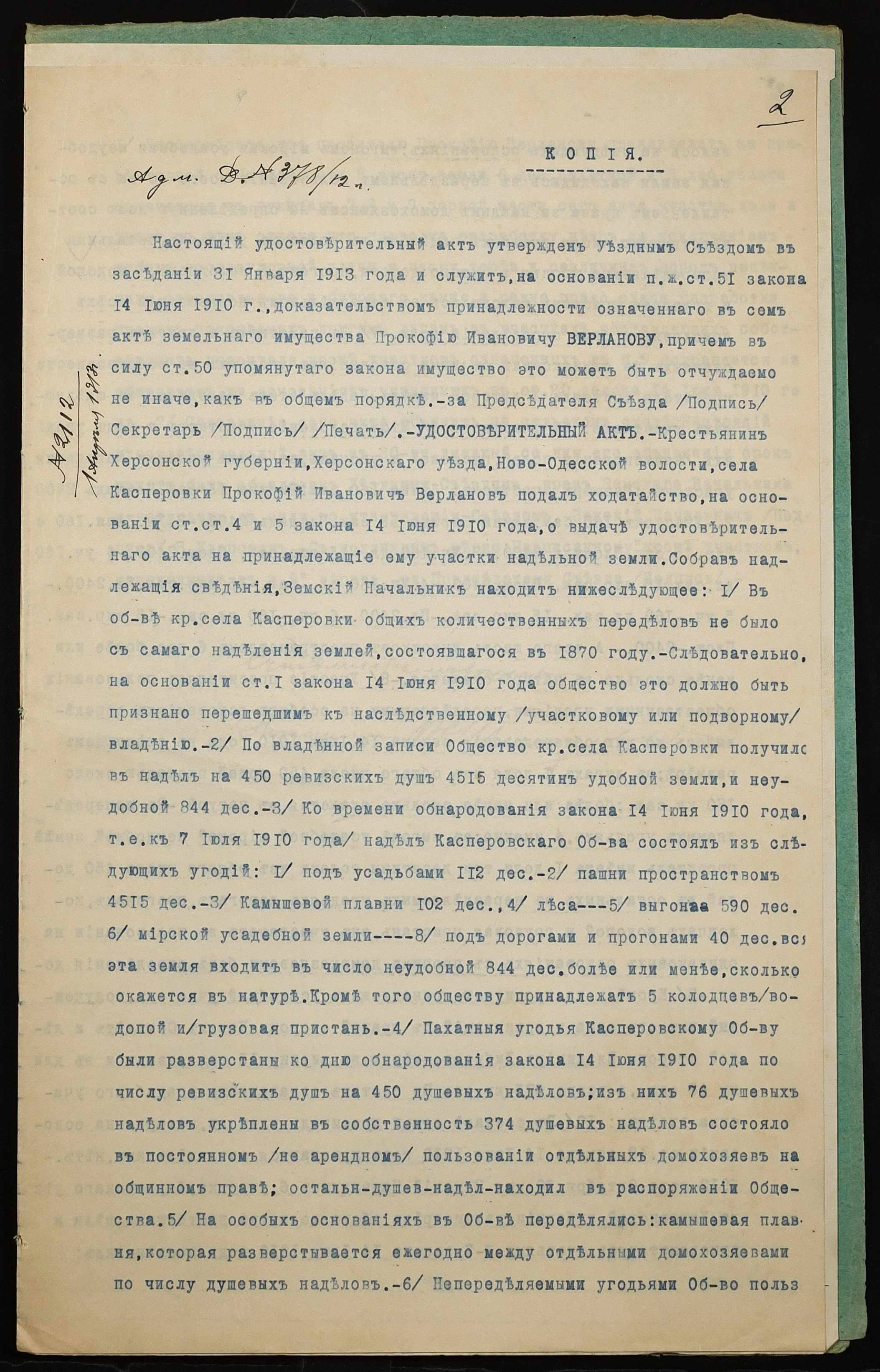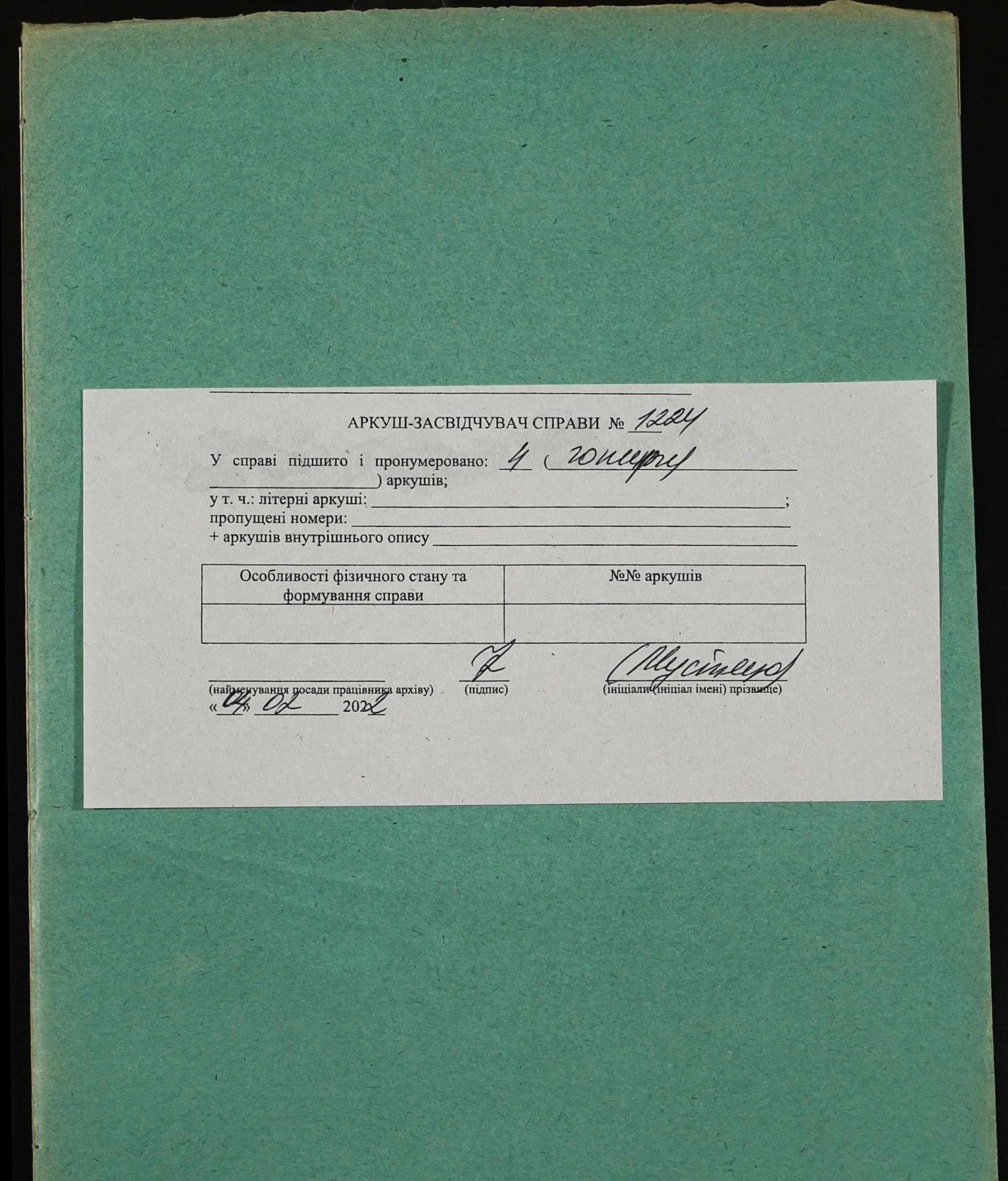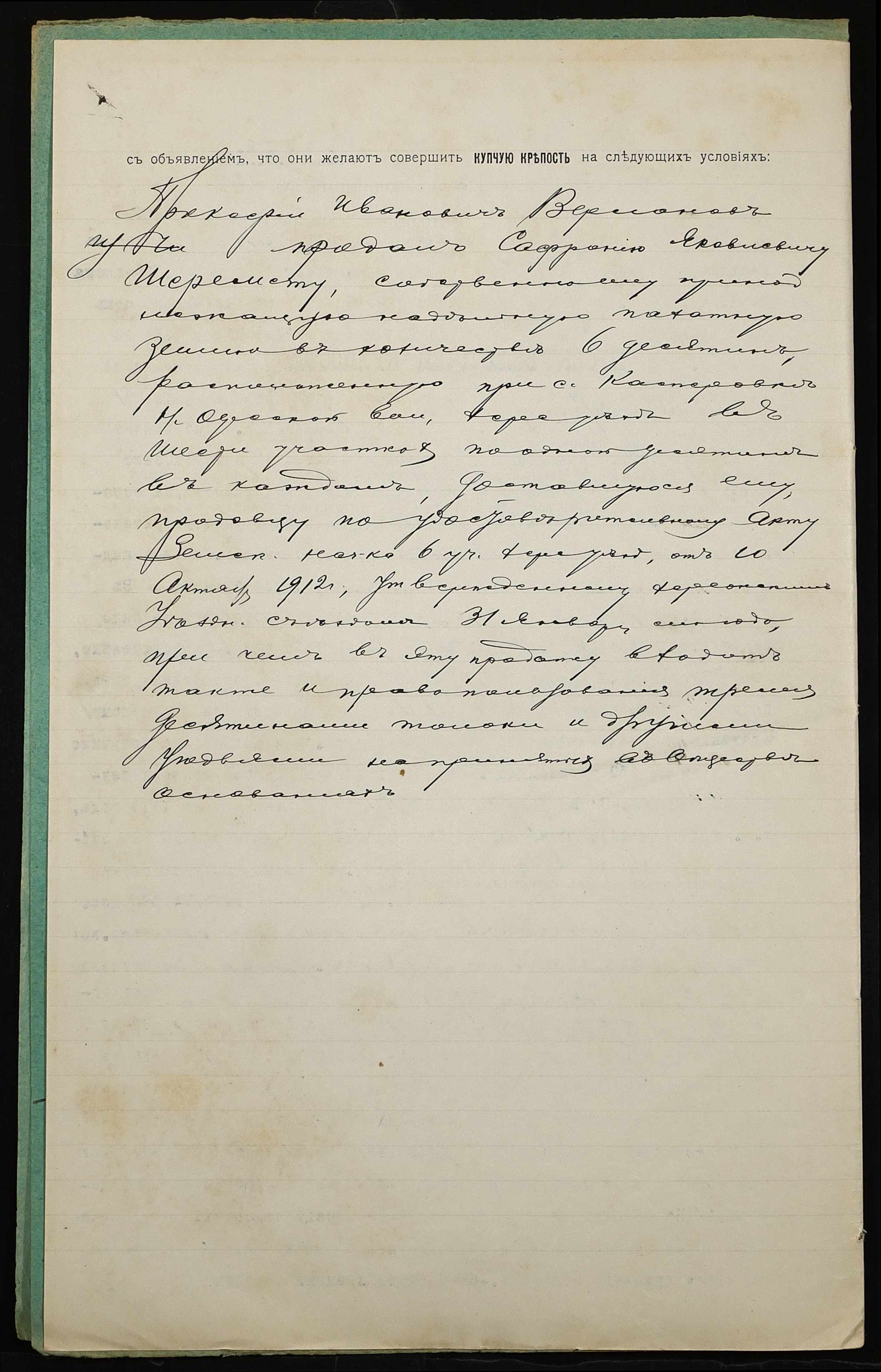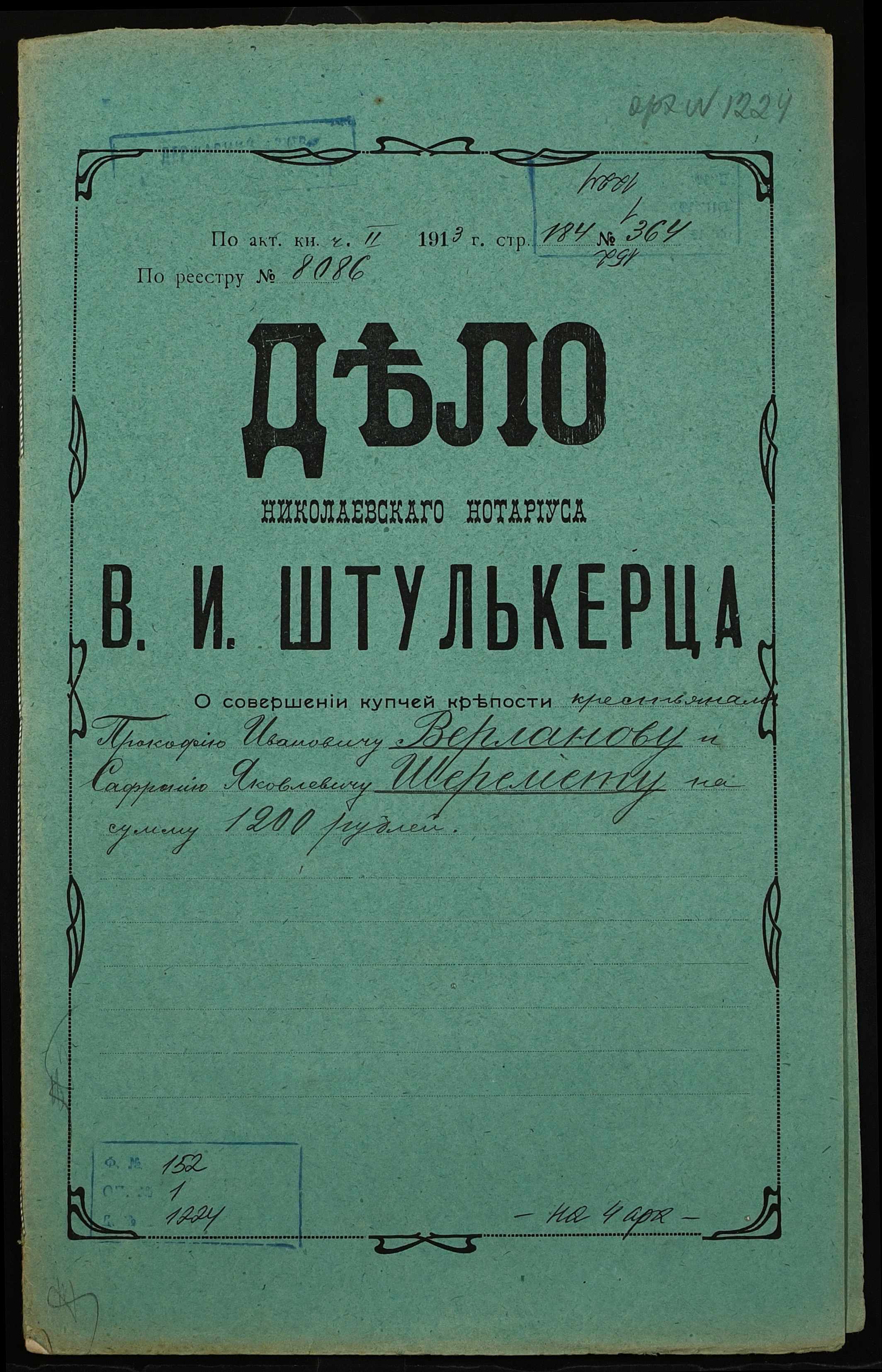 • • • • Справа № 1224 “Справа про вчинення купчої про продаж землі селянином Верлановим Прокопом Івановичем (Верлановым Прокофием Ивановичем) на користь селянина Шеремета Софронія Яковича (Шеремета Софрония Яковлевича)”