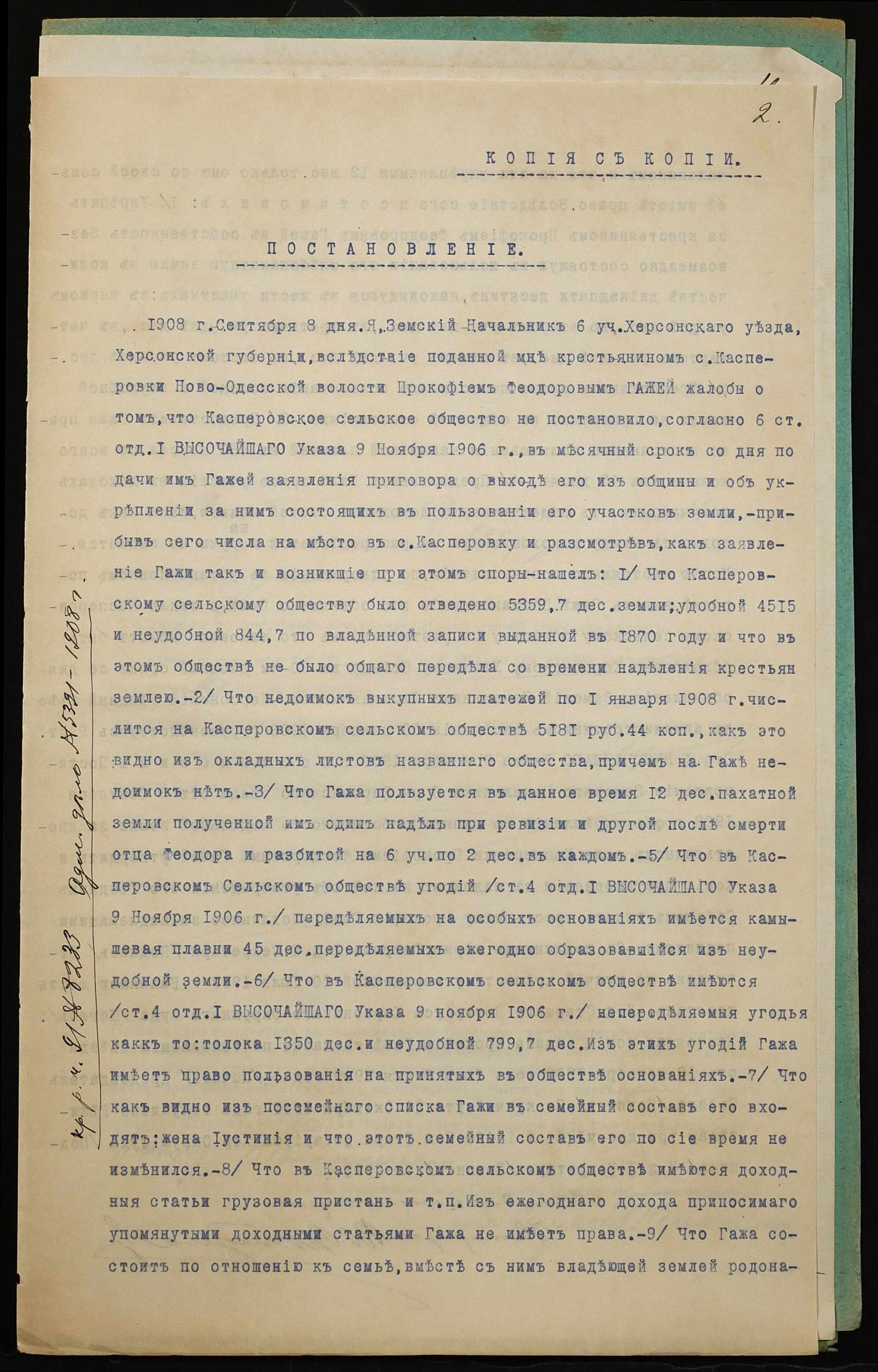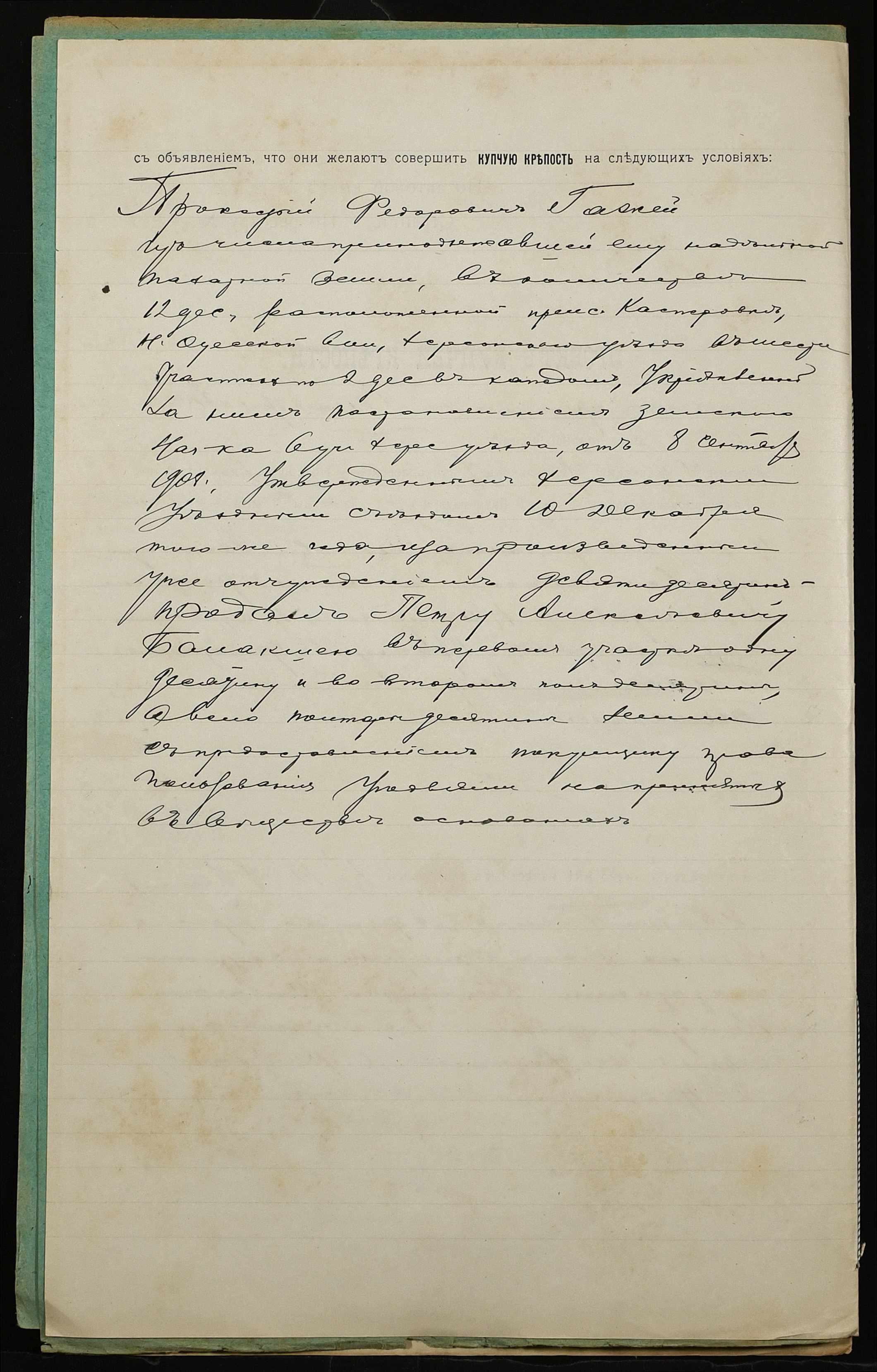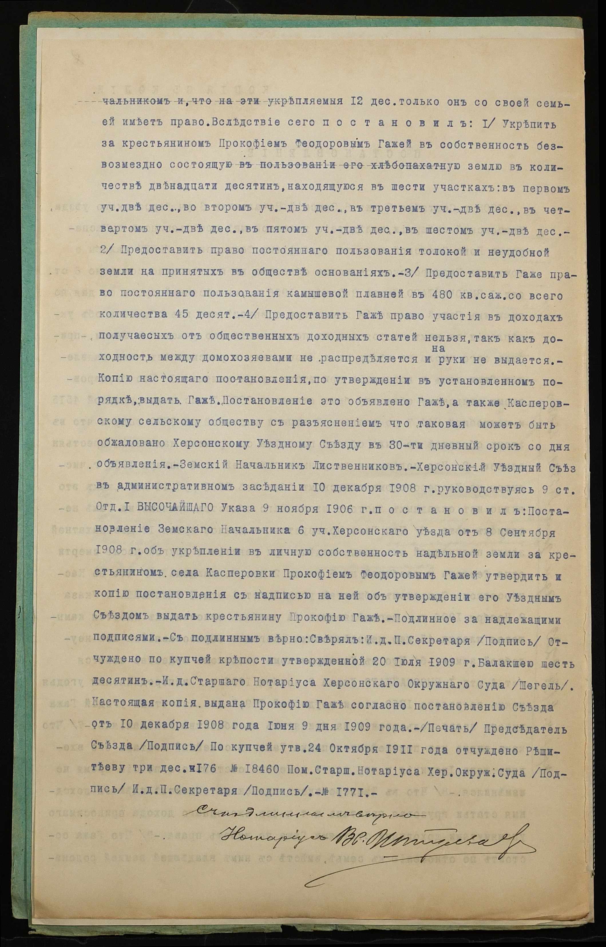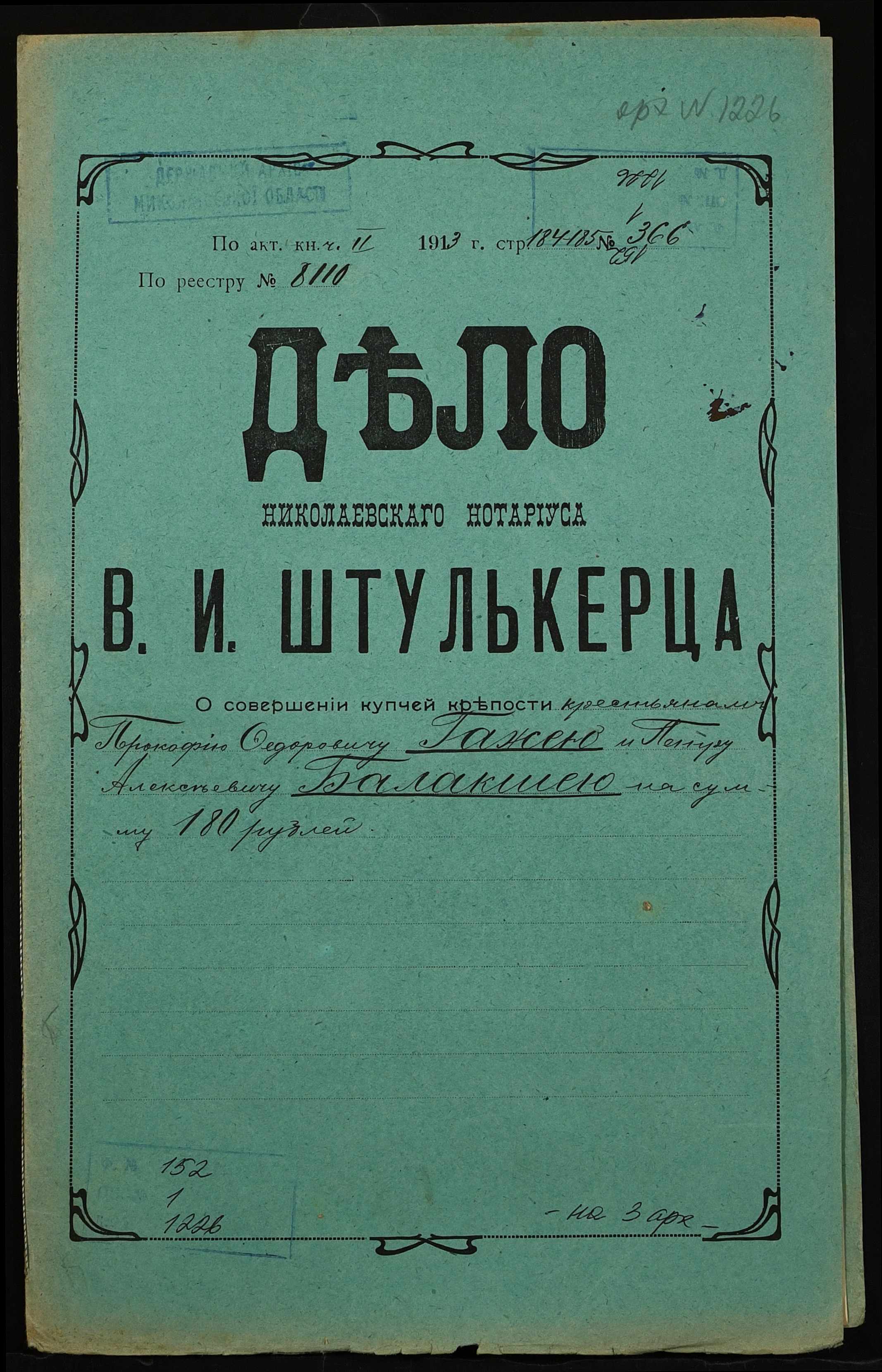 • • • • Справа № 1226 “Справа про вчинення купчої про продаж землі селянином Гажею Прокопом Федоровичем (Гажой Прокофием Федоровичем) на користь селянина Балакші Петра Олексійовича (Балакши Петра Алексеевича)”
