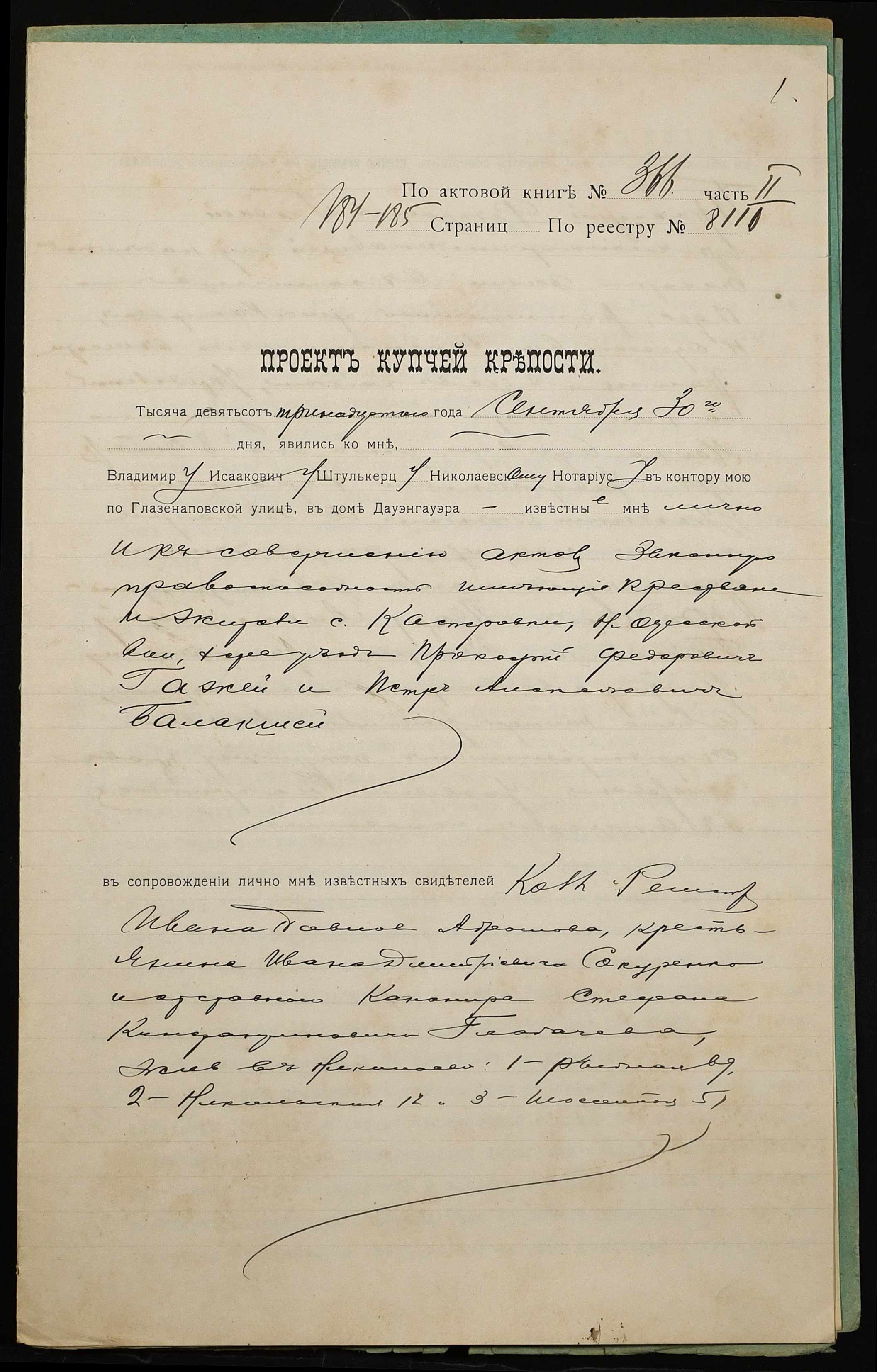 ◦ ◦ Фонд № 152 “Контора миколаївського нотаріуса Херсонського окружного суду Штулькерца Володимира Ісааковича”