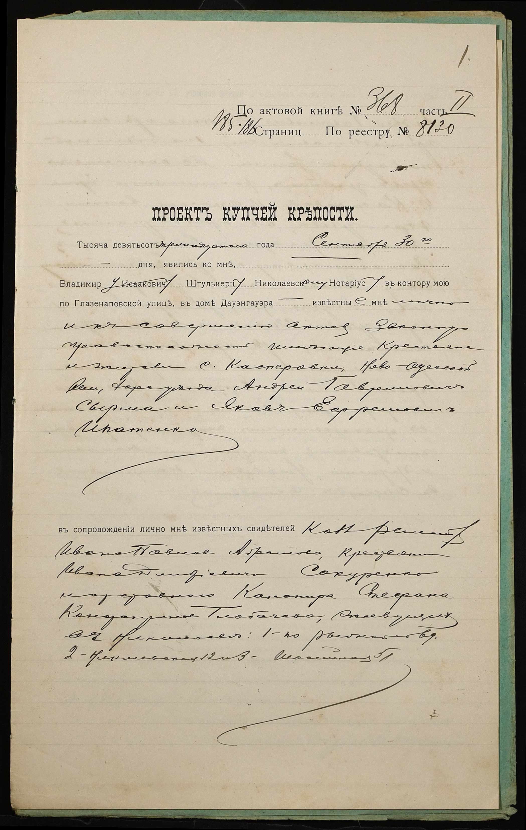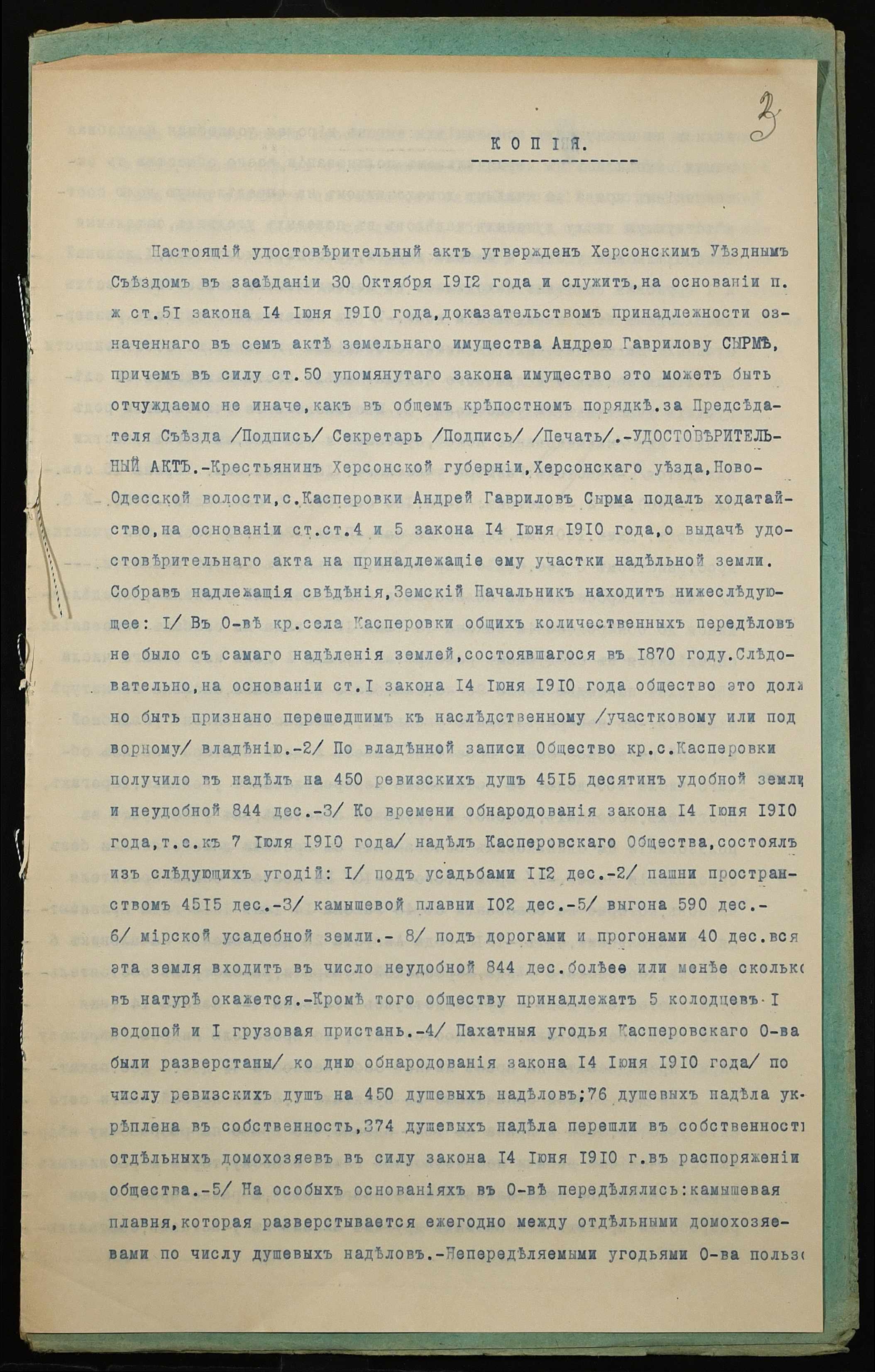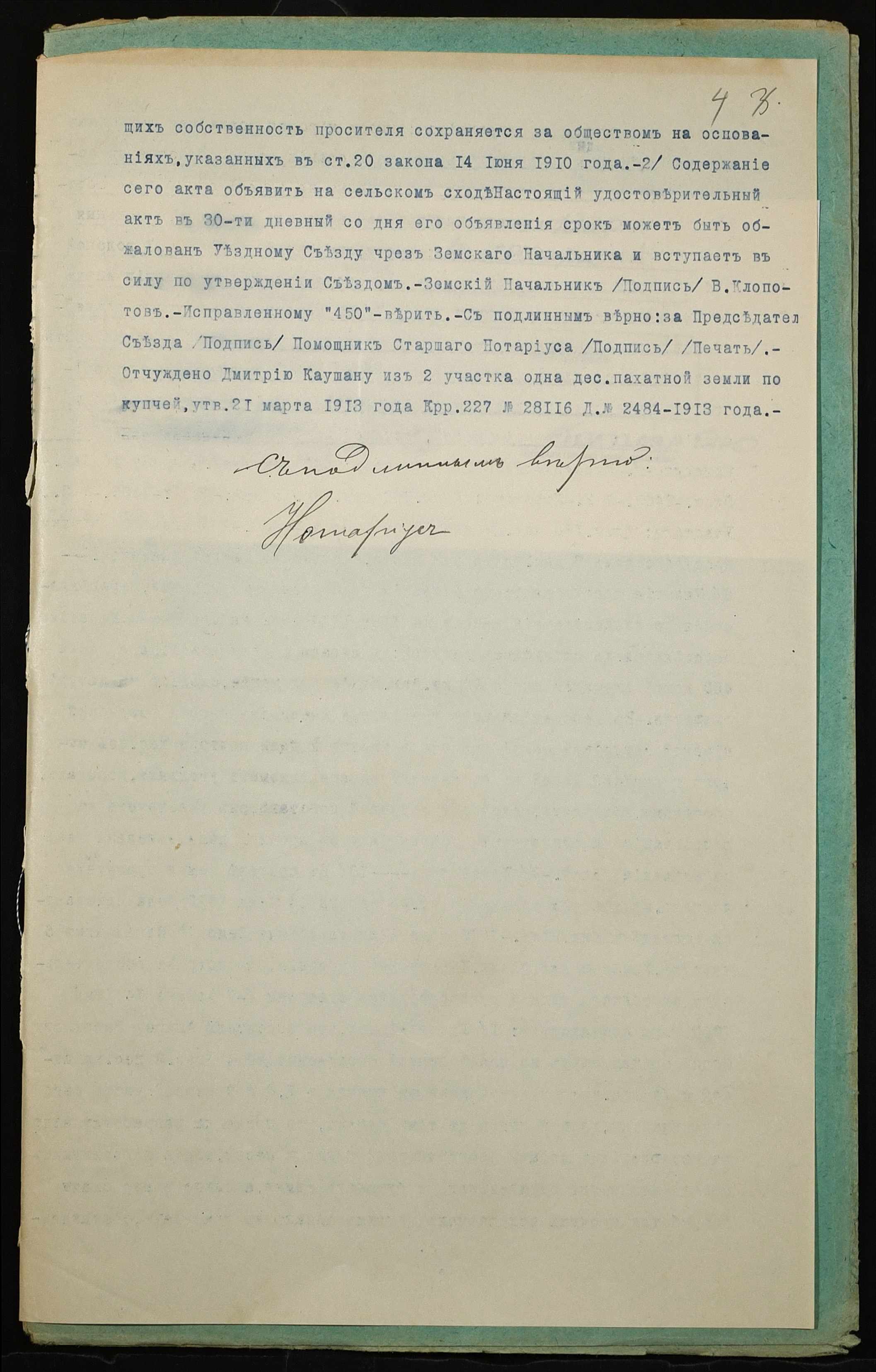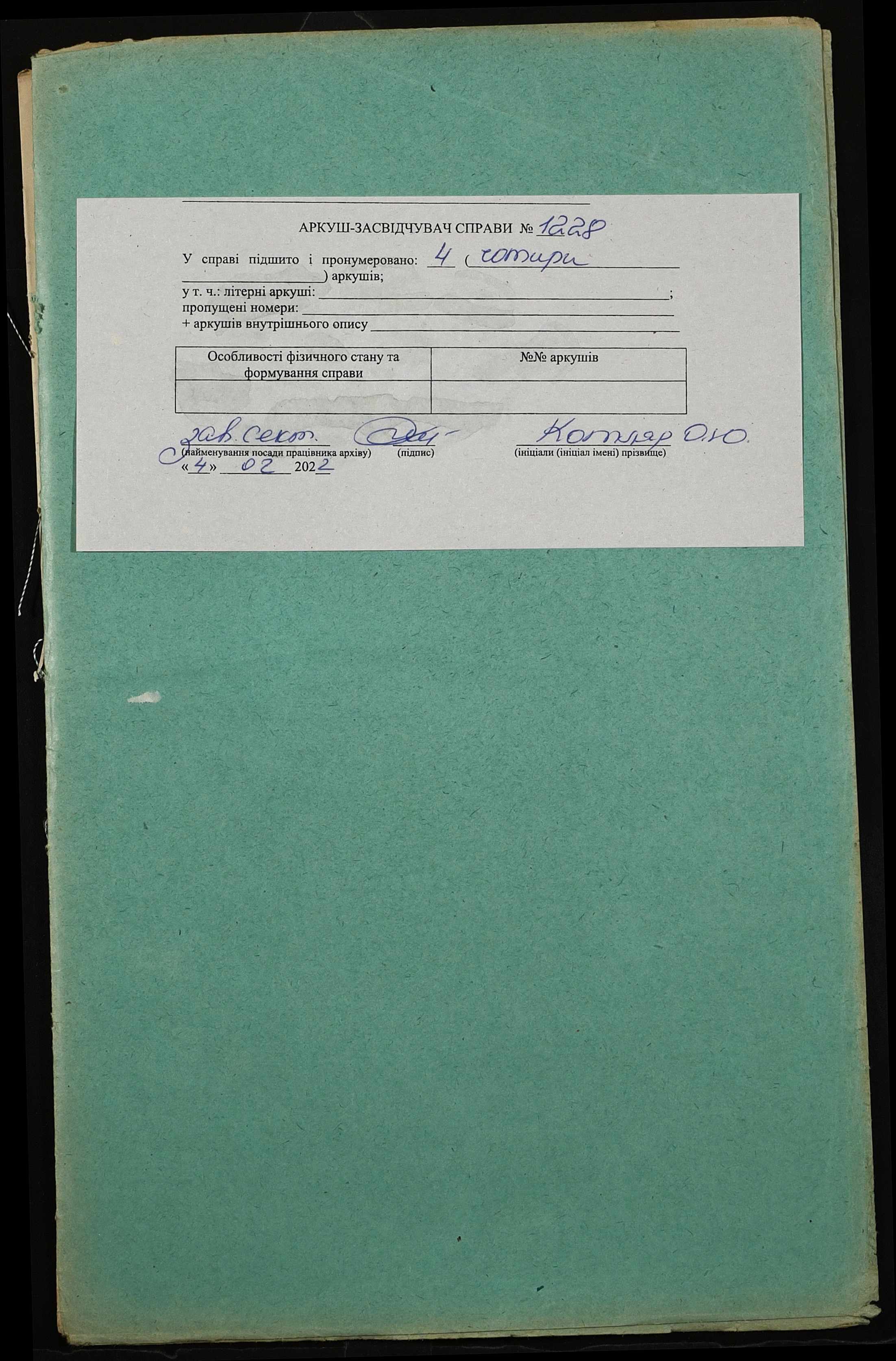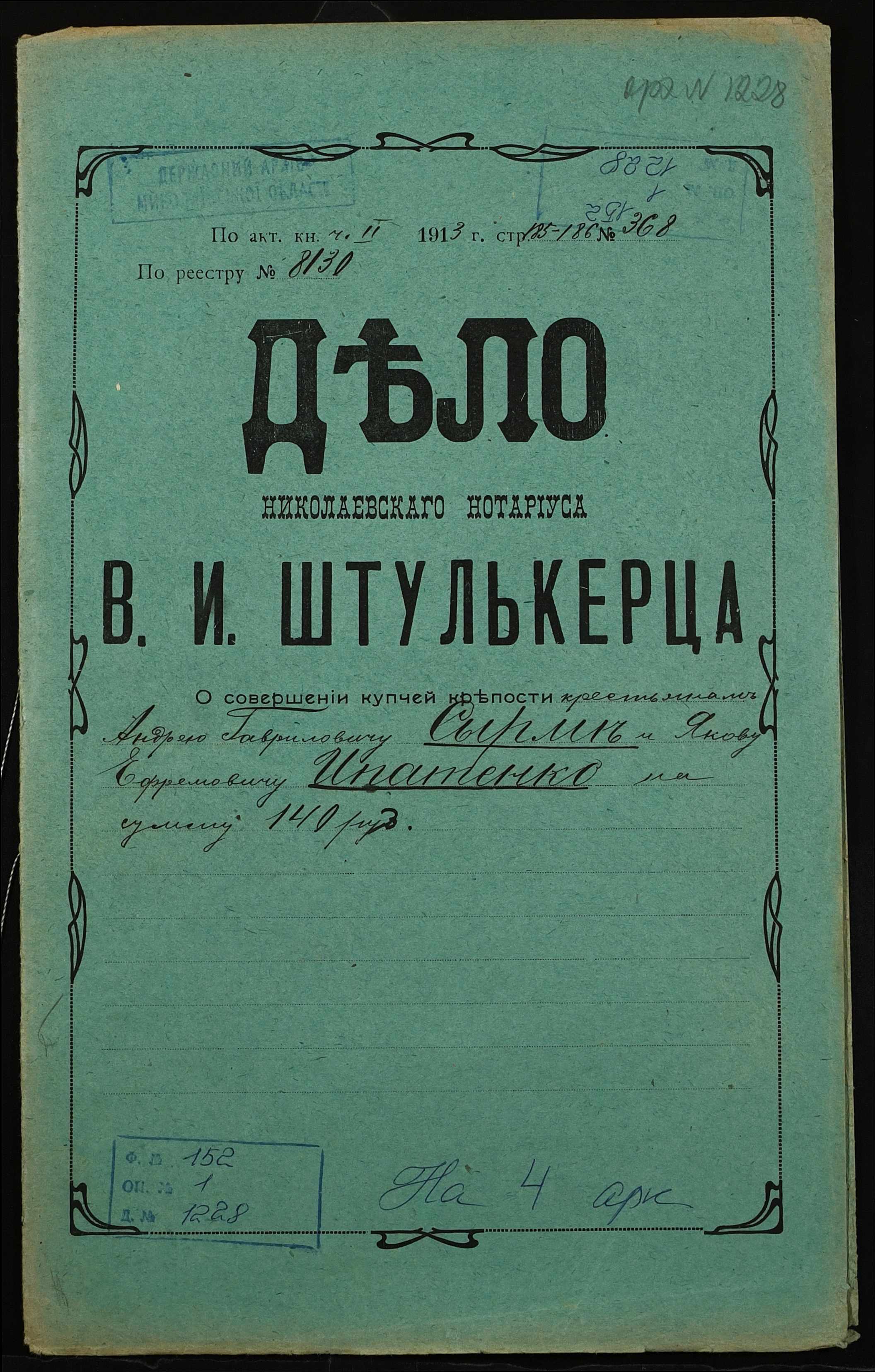 • • • • Справа № 1228 “Справа про вчинення купчої про продаж землі селянином Сирмою Андрієм Гавриловичем (Сырмой Андреем Гаврииловичем) на користь селянина Іпатенка Якова Охрімовича (Ипатенко Якова Ефремовича)”