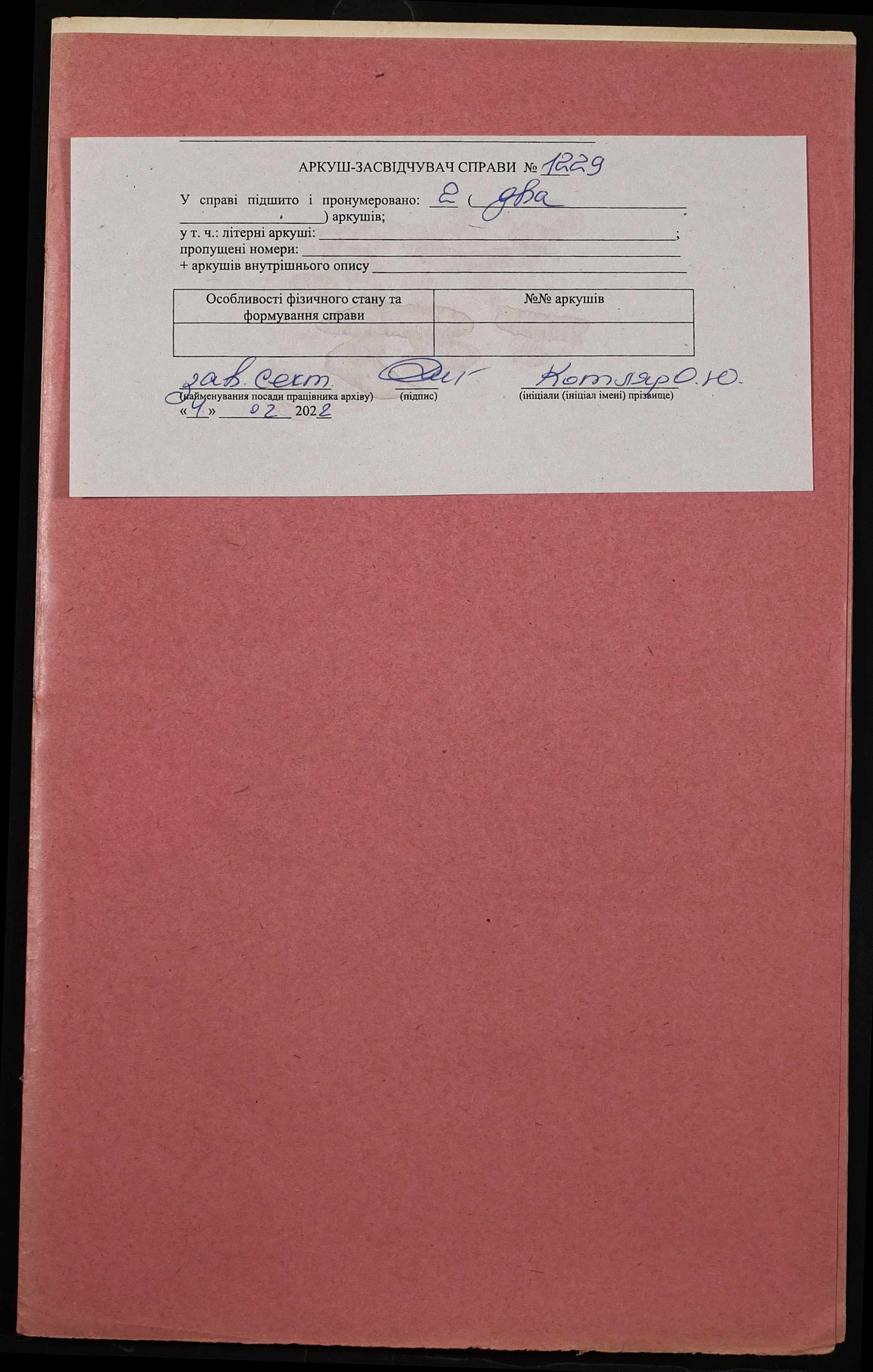 Фонд 152 / Опис 1 / Справа 1229
