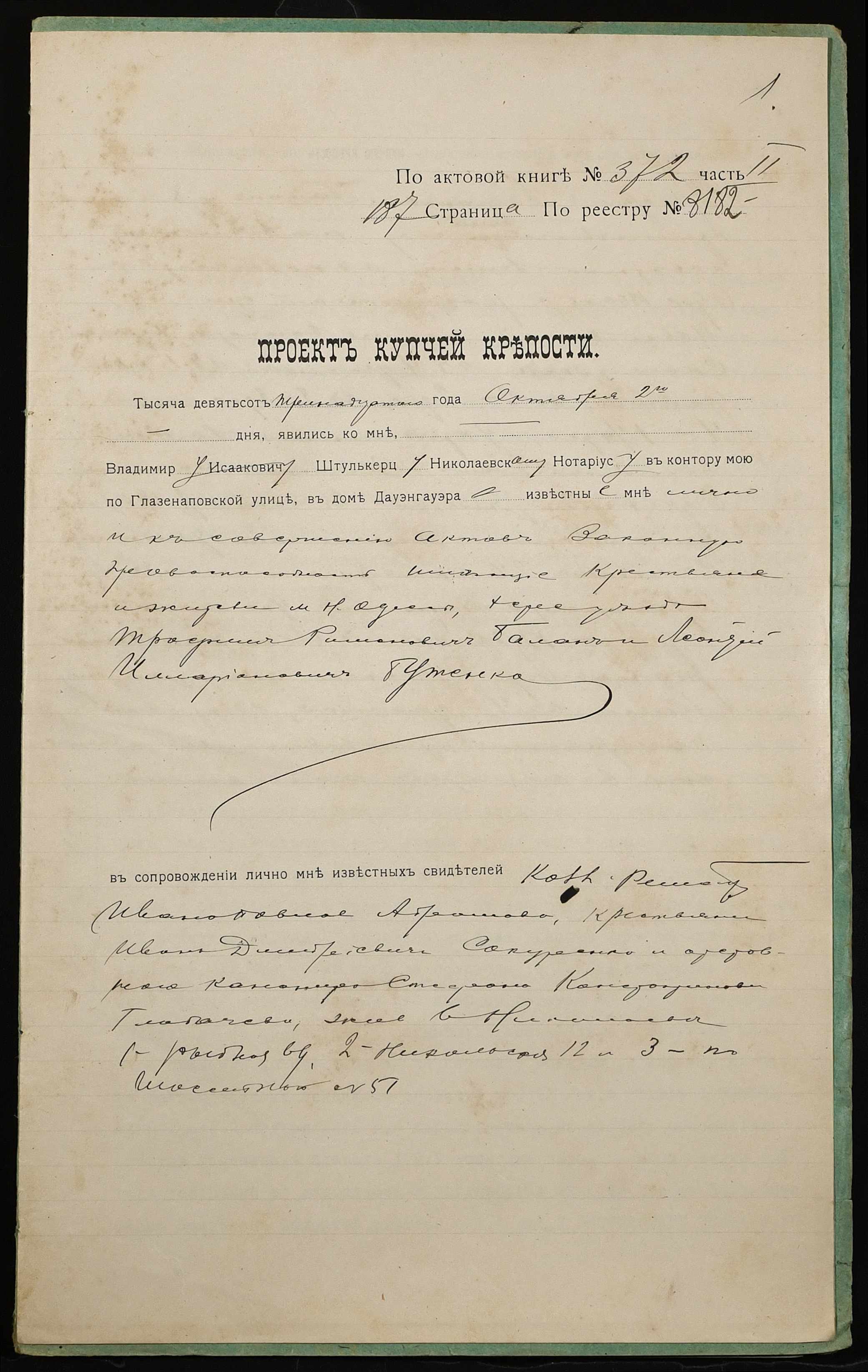 ◦ ◦ Фонд № 152 “Контора миколаївського нотаріуса Херсонського окружного суду Штулькерца Володимира Ісааковича”