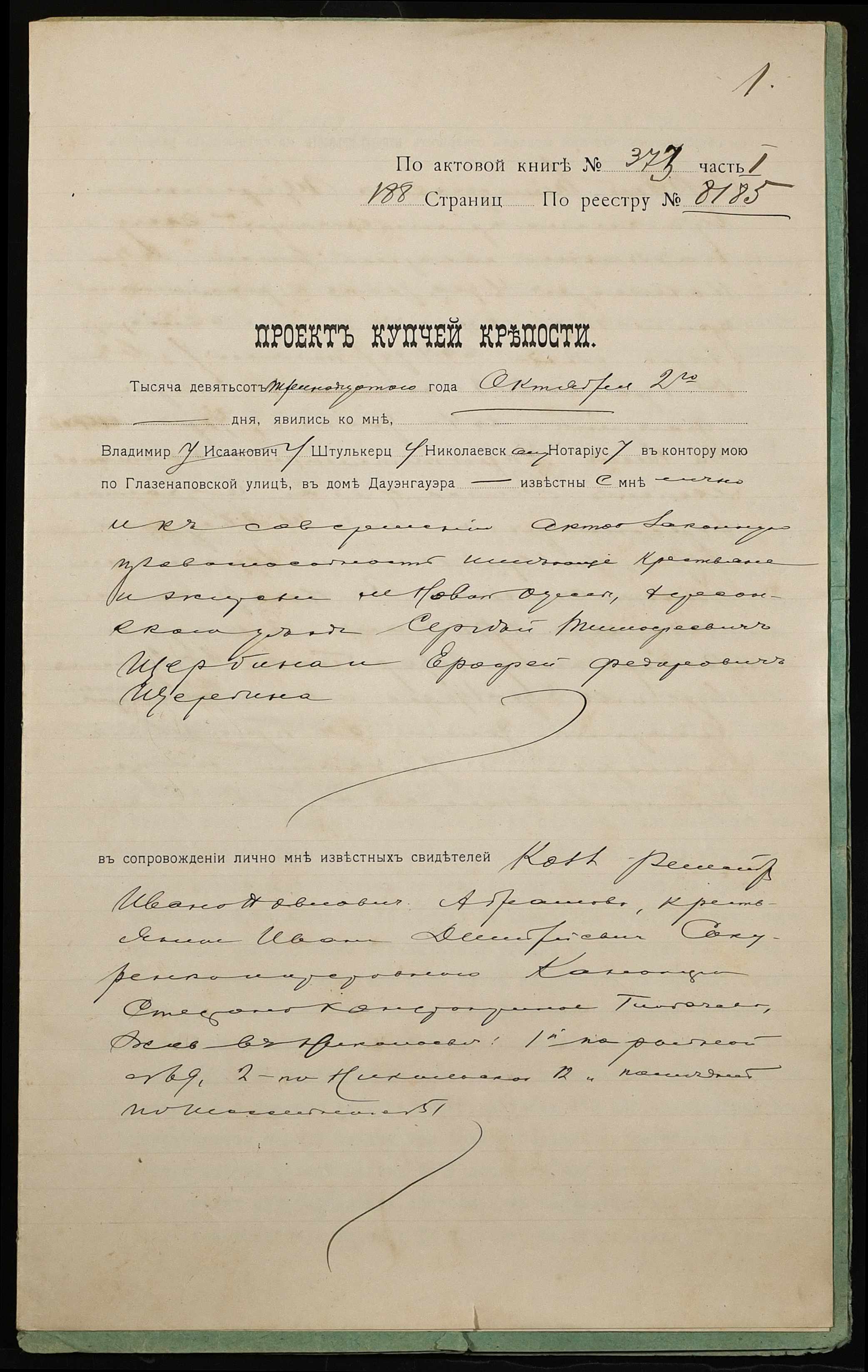 ◦ ◦ Фонд № 152 “Контора миколаївського нотаріуса Херсонського окружного суду Штулькерца Володимира Ісааковича”