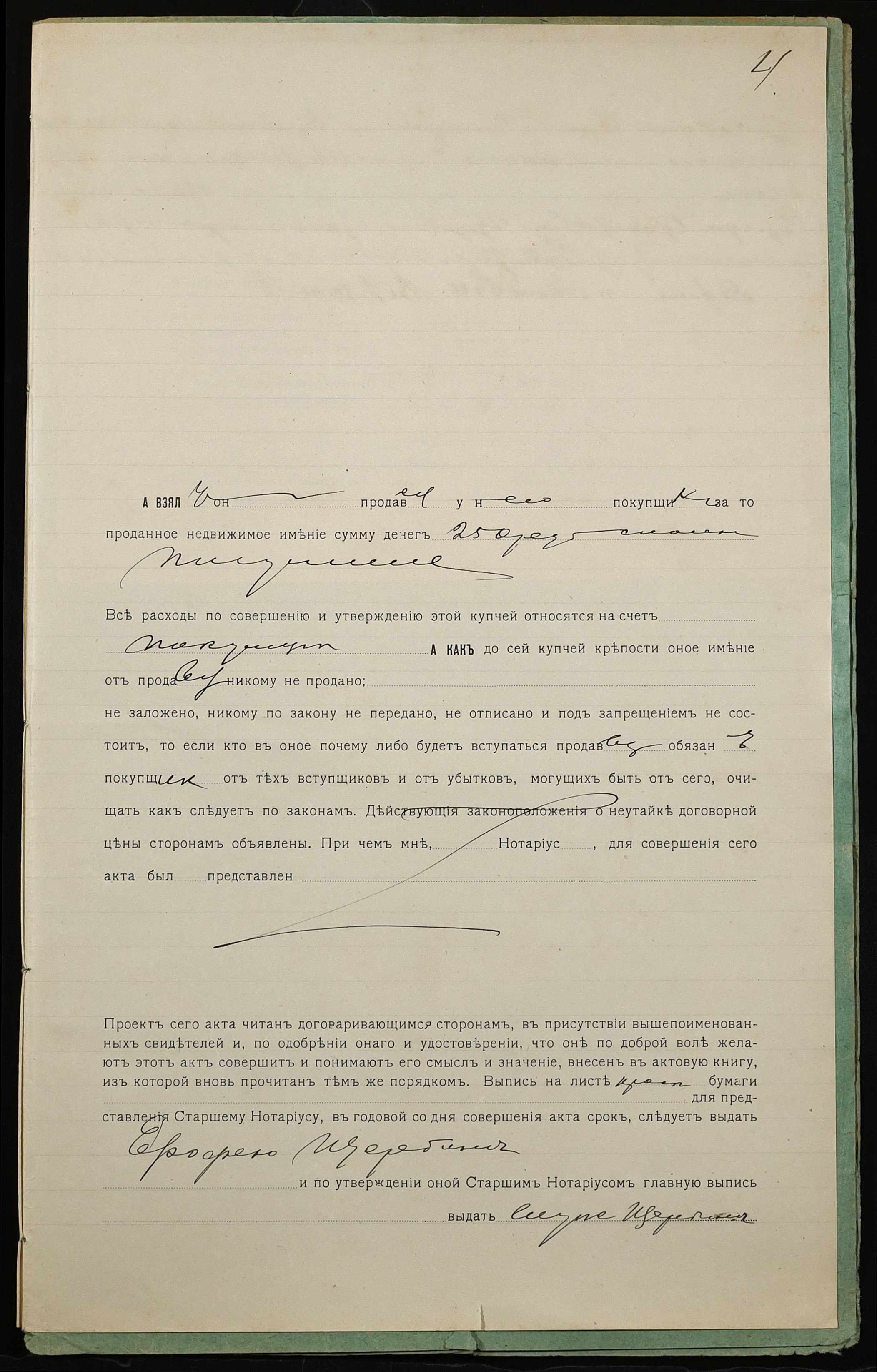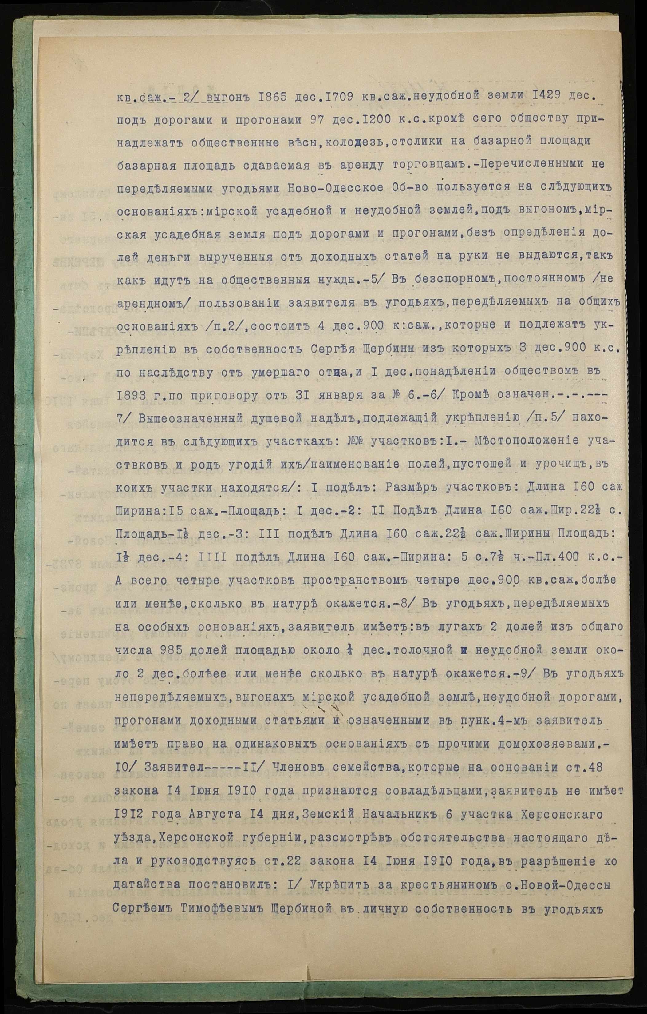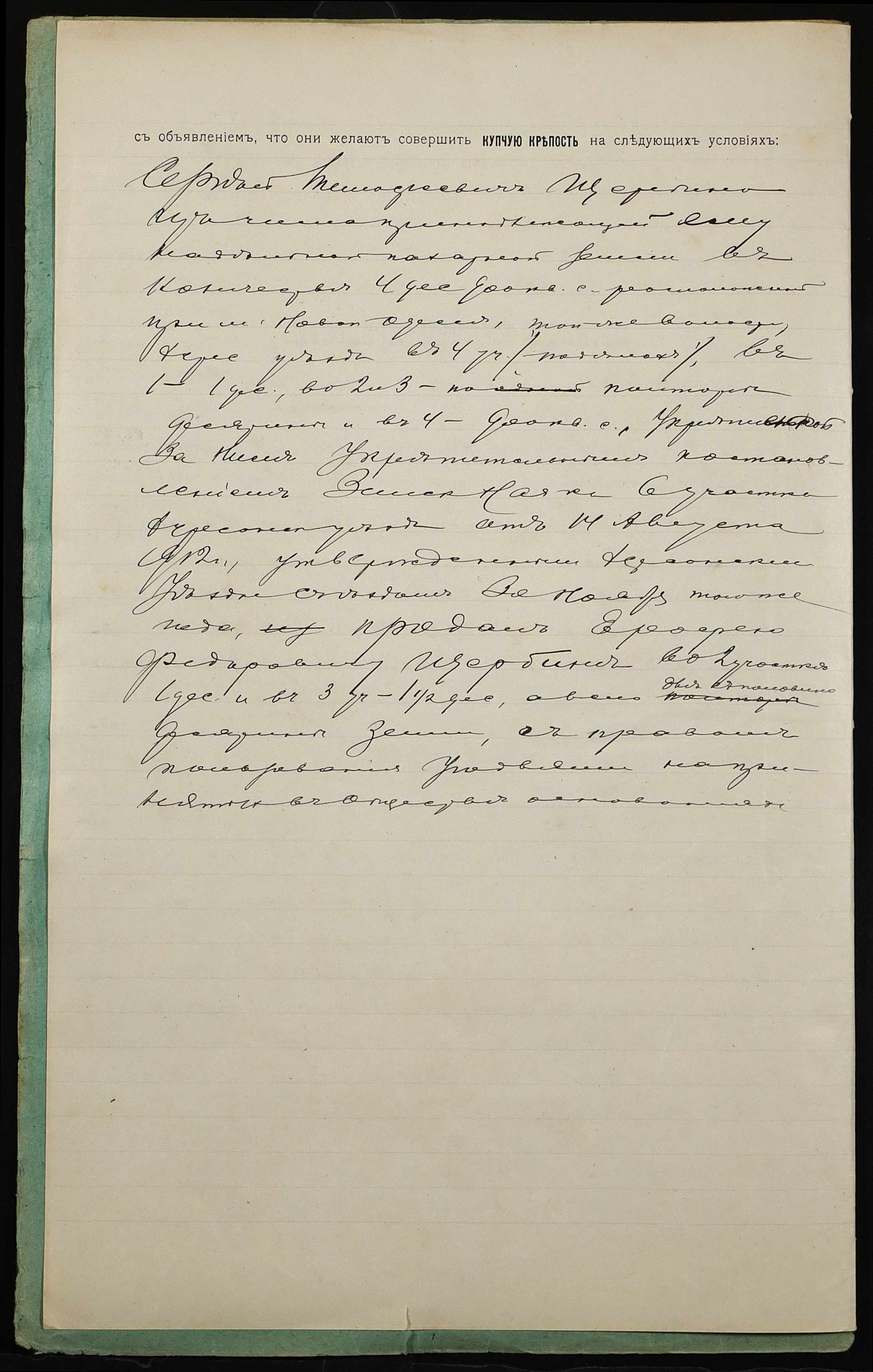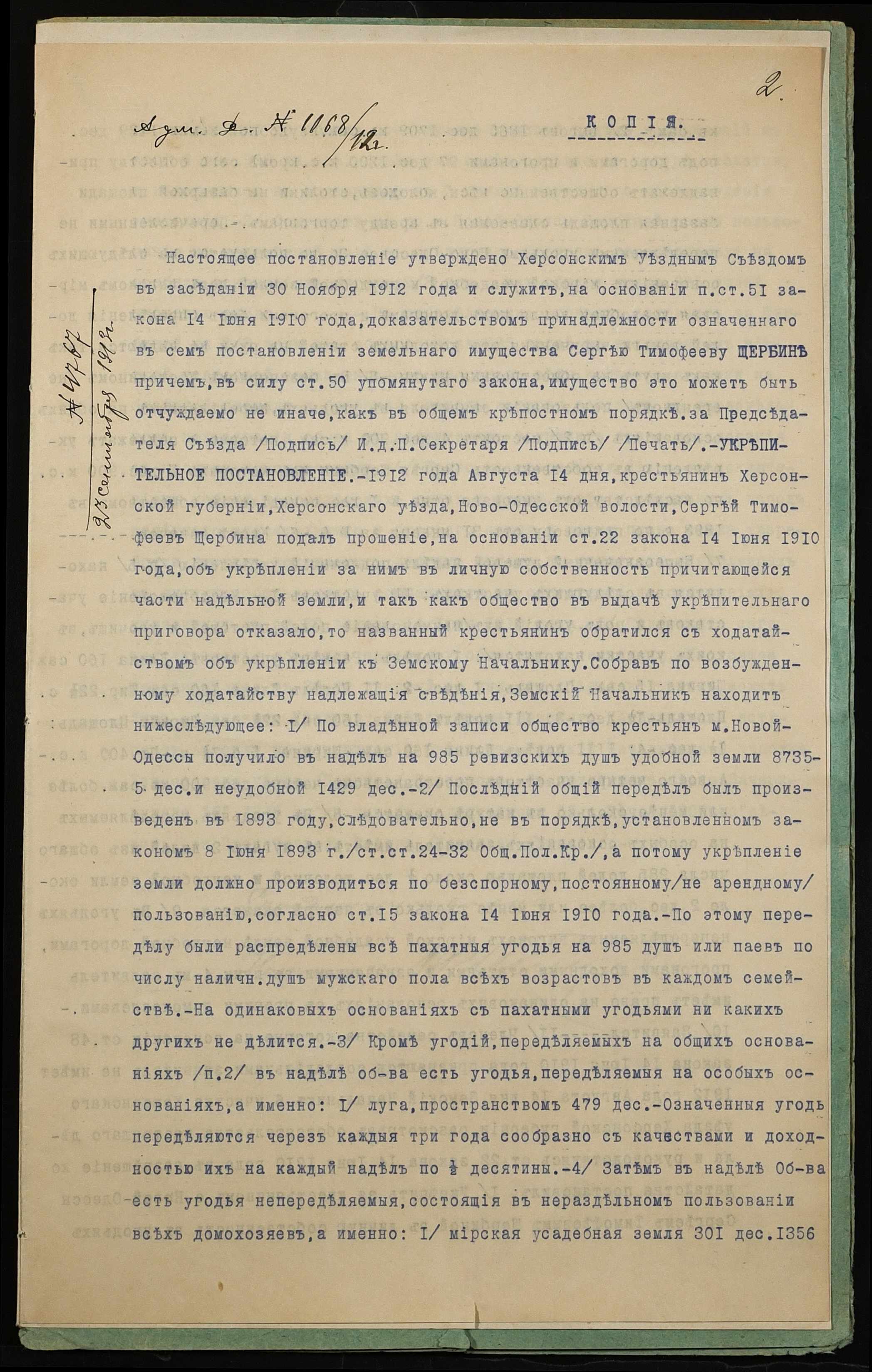 • • • • Справа № 1236 “Справа про вчинення купчої про продаж землі селянином Щербиною Сергієм Тимофійовичем (Щербиной Сергеем Тимофеевичем) на користь селянина Щербини Єрофія Федоровича (Щербины Ерофея Федоровича)”