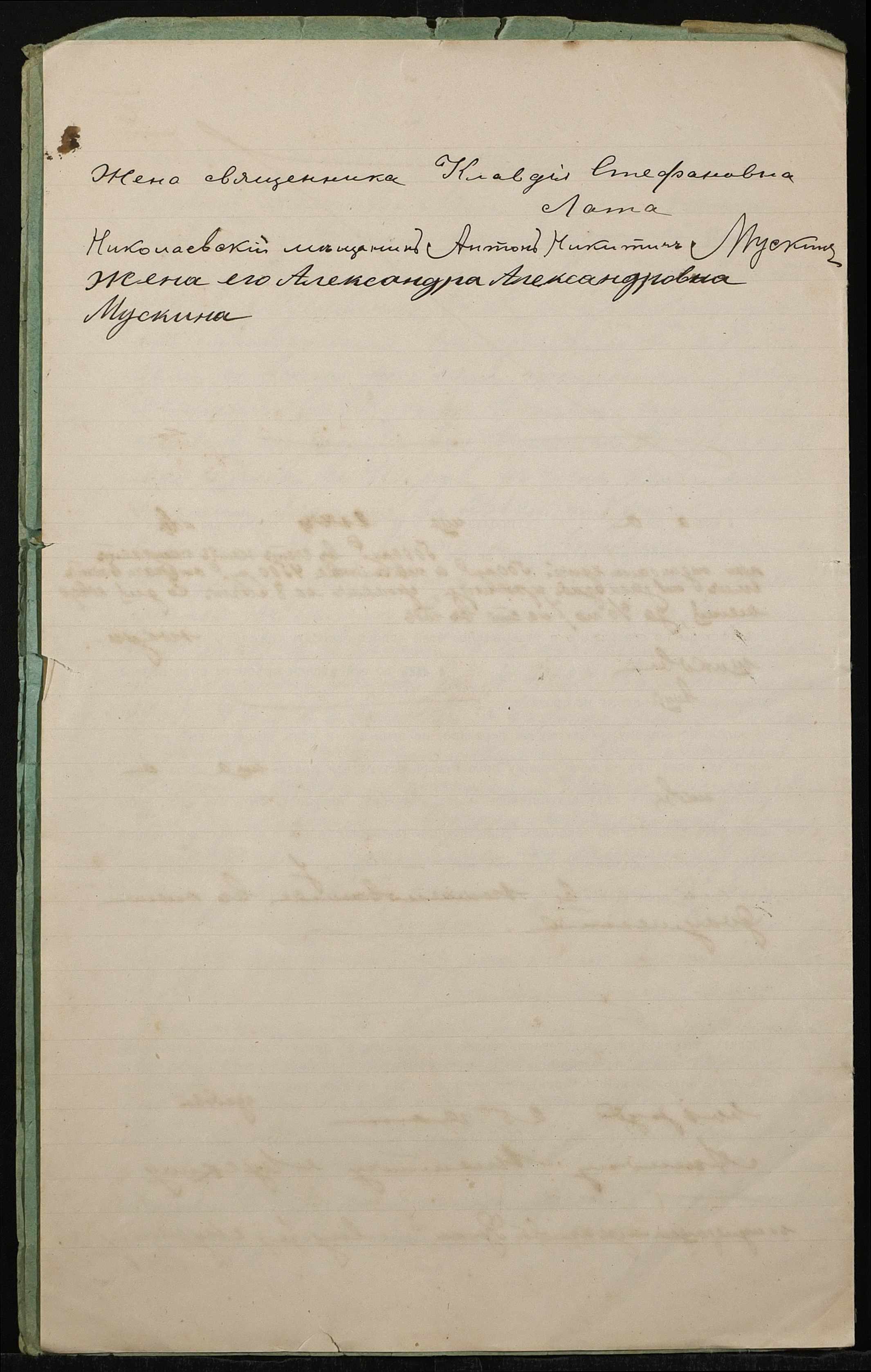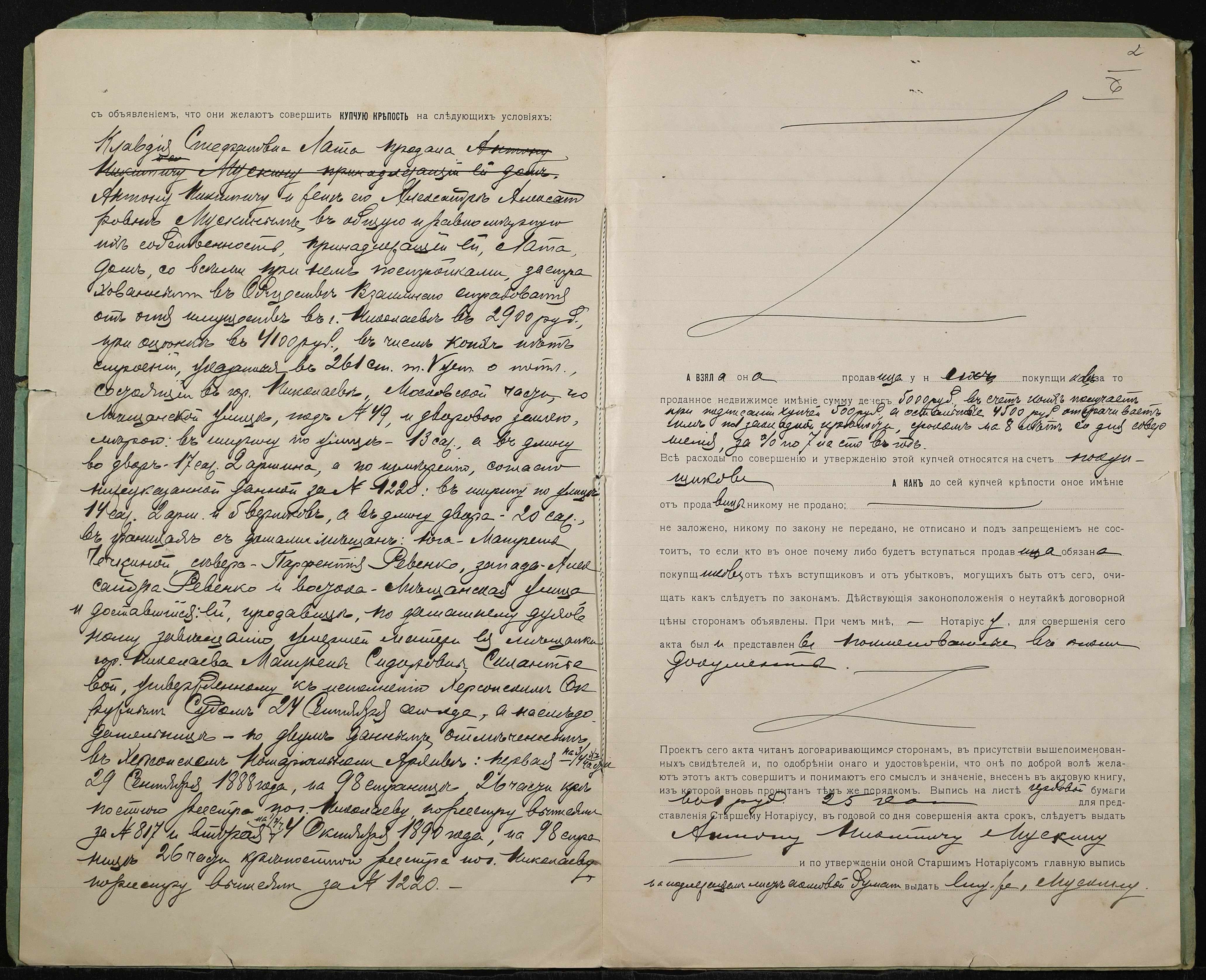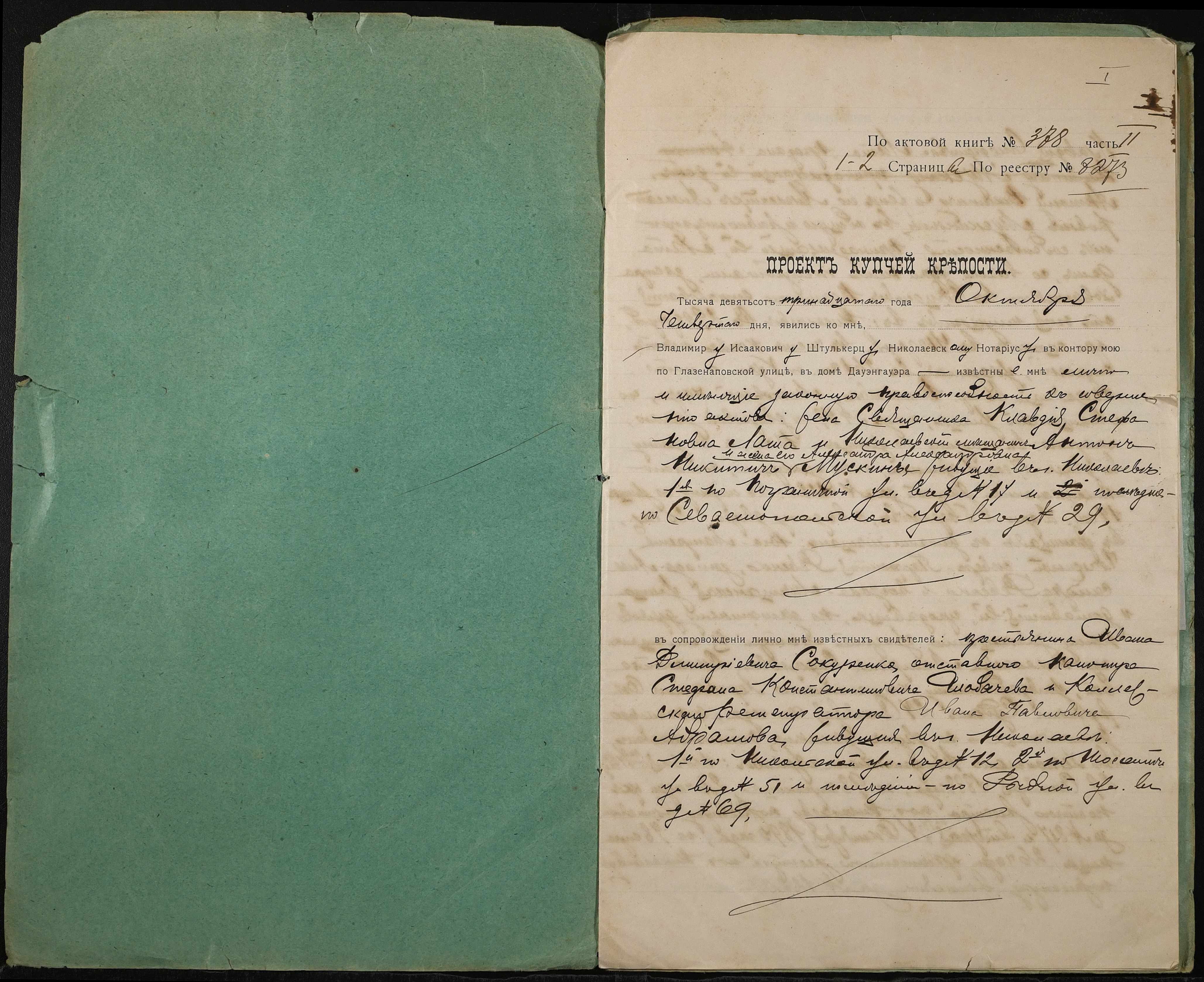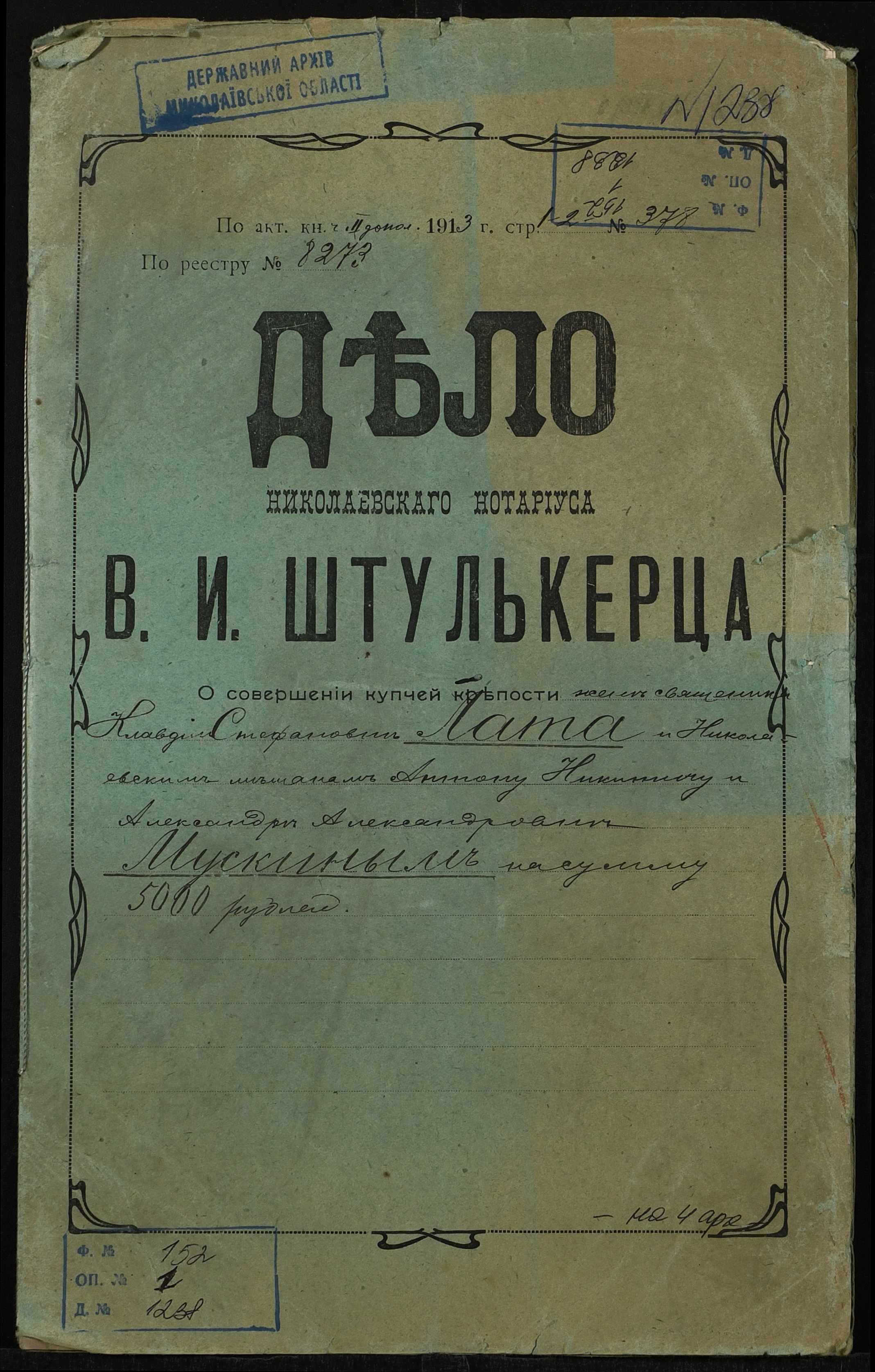 • • • • Справа № 1238 “Справа про вчинення купчої про продаж будинку дружиною священника Латою Клавдією Стефанівною (Латой Клавдией Стефановной) на користь миколаївських міщан Мускіна Антона Микитовича (Мускина Антона Никитовича) і Мускіна Олександра Олександровича (Мускина Александра Александровича)”