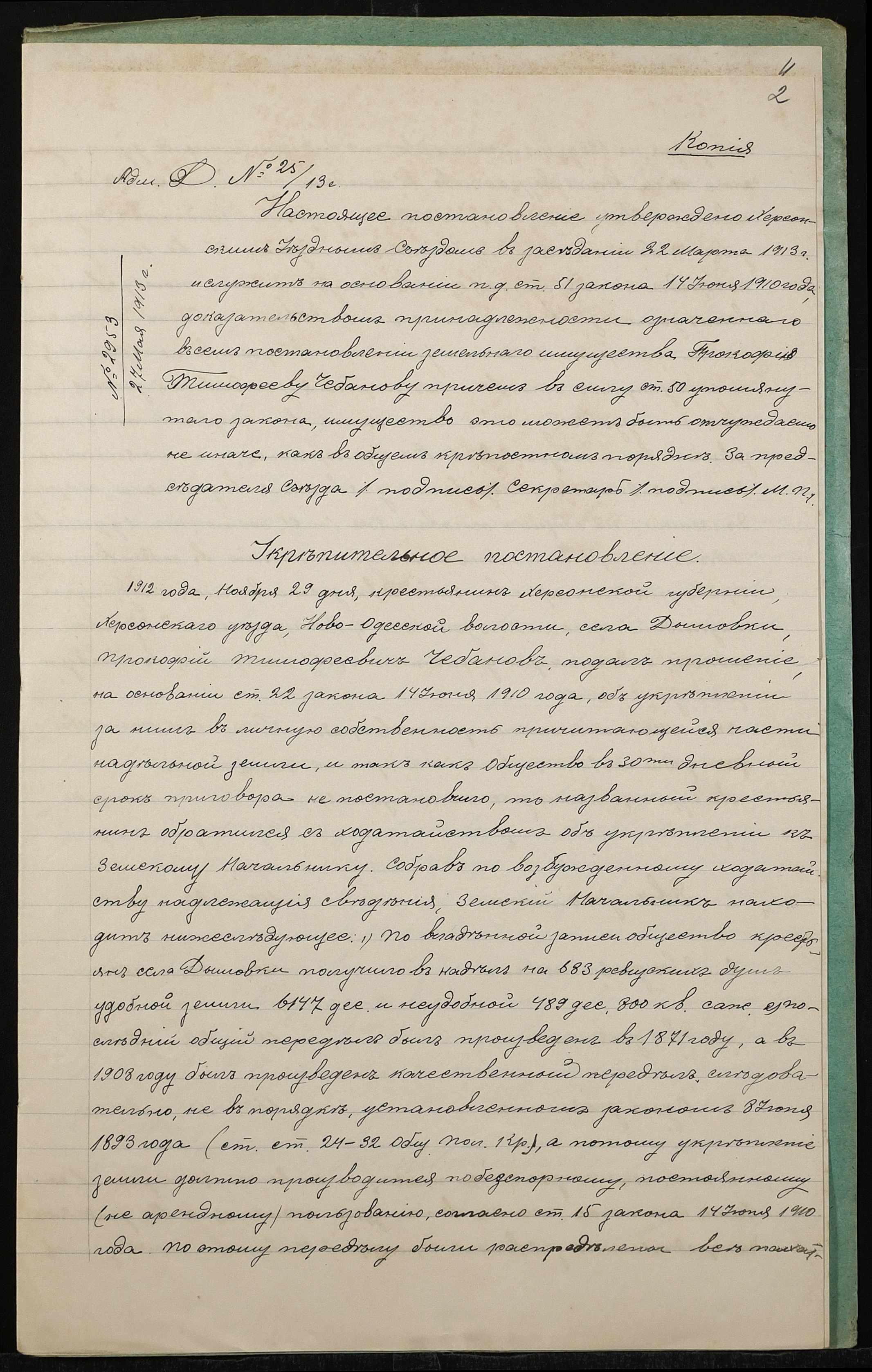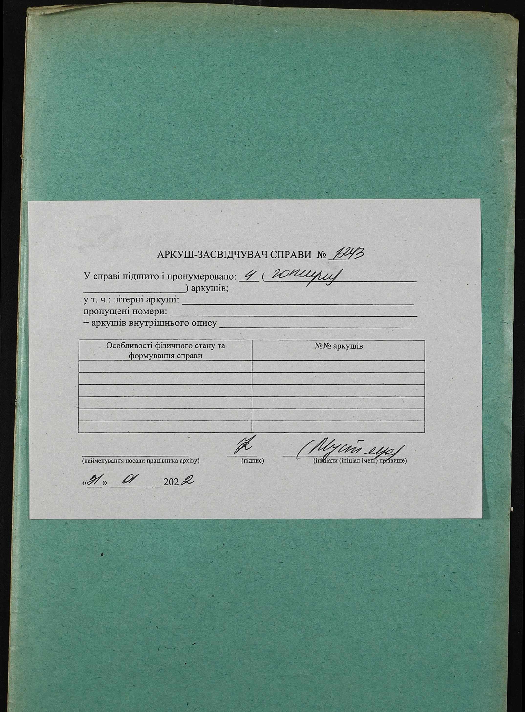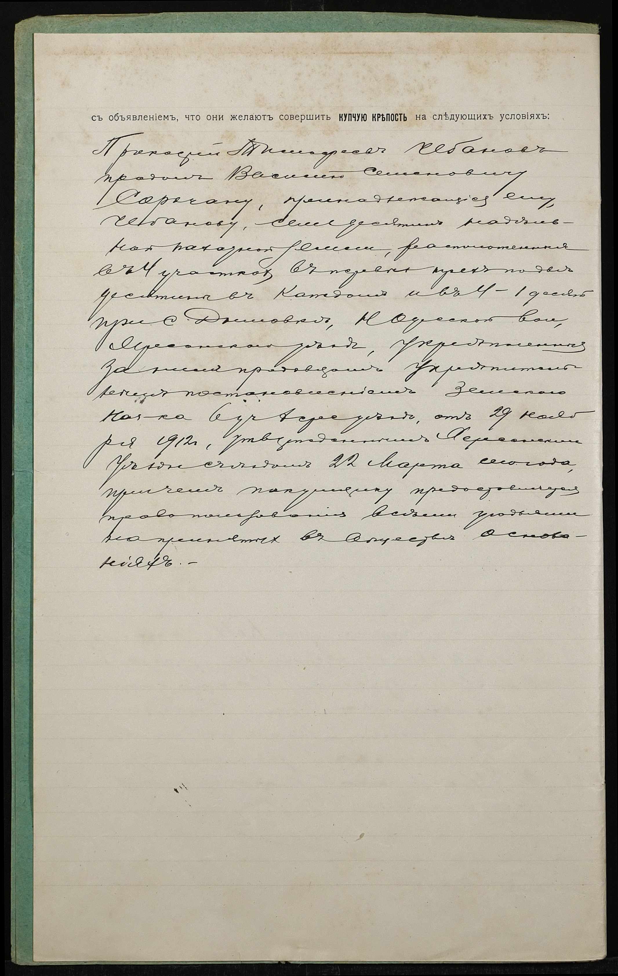 • • • • Справа № 1243 “Справа про вчинення купчої про продаж землі селянином Чебановим Прокопом Тимофійовичем (Чебановым Прокофием Тимофеевичем) на користь селянина Сорочана Василя Семеновича (Сорочана Василия Семеновича)”