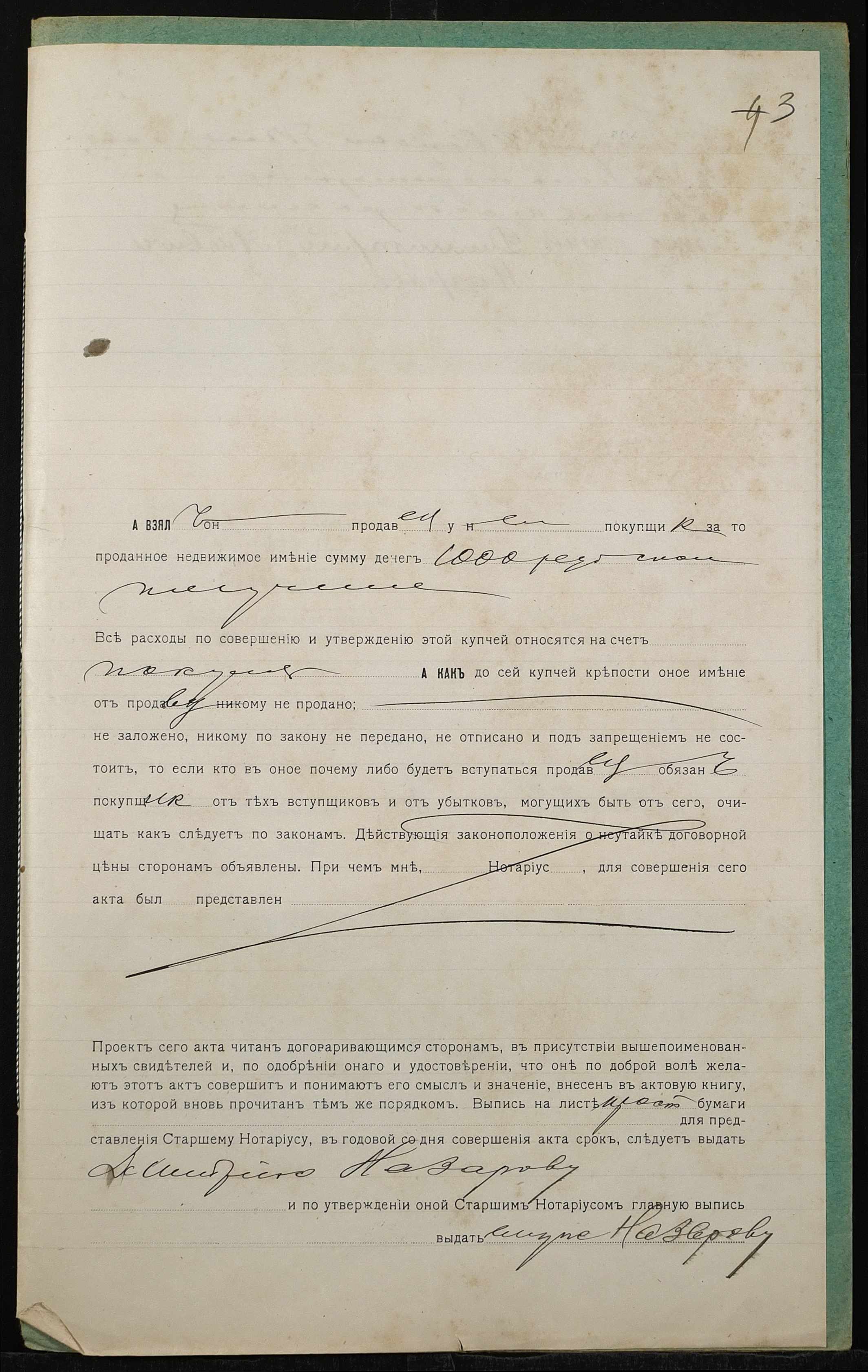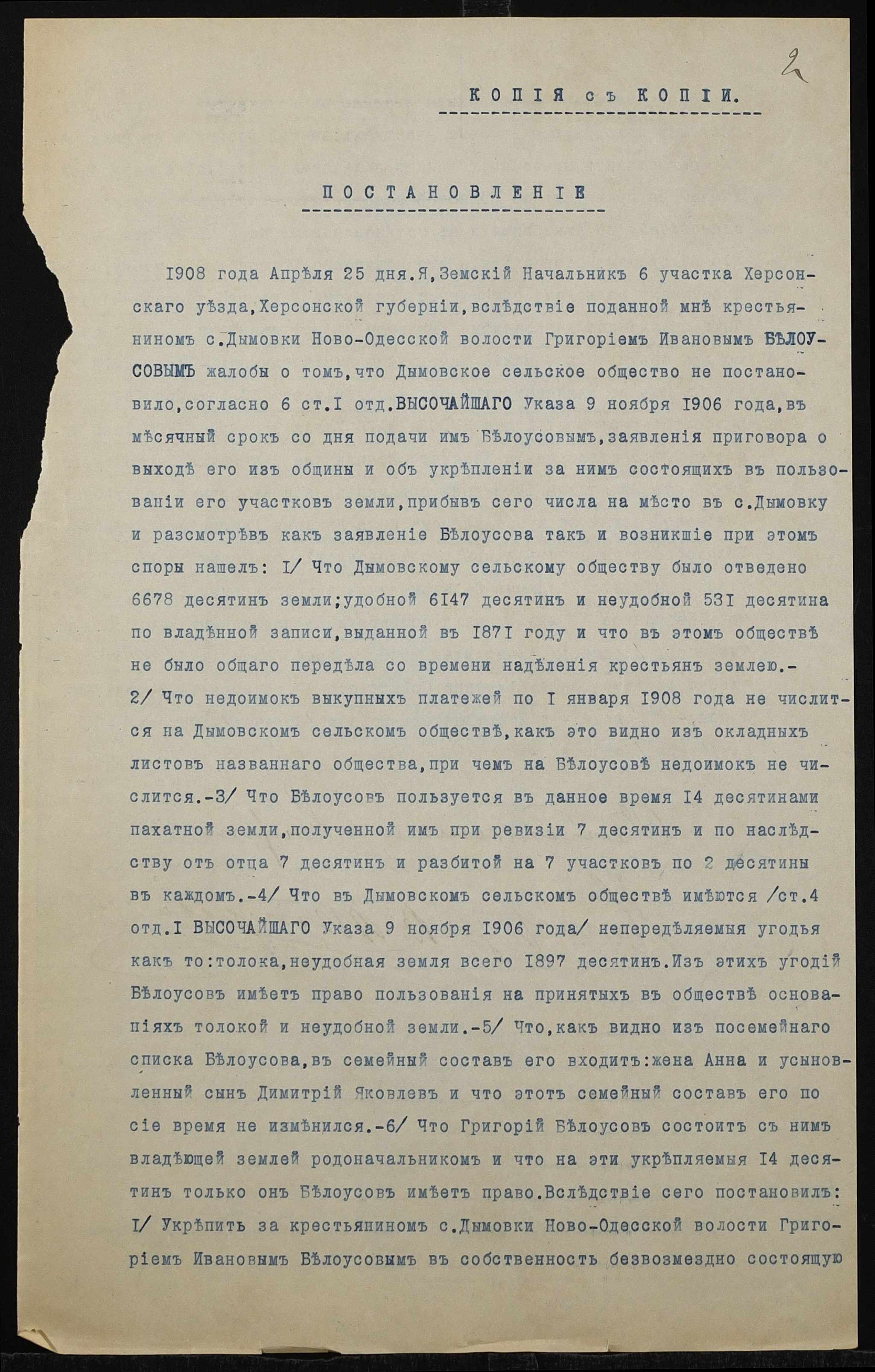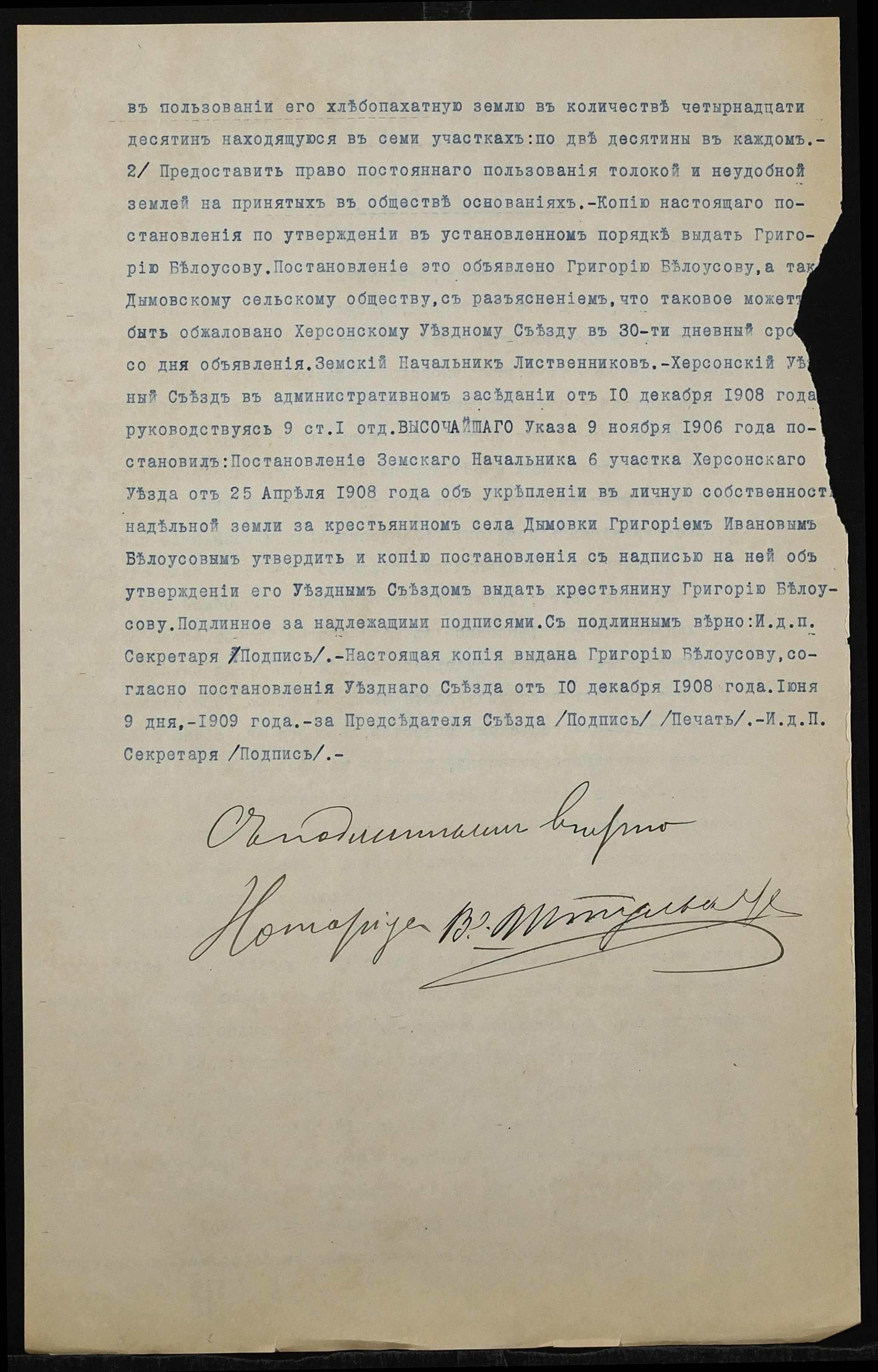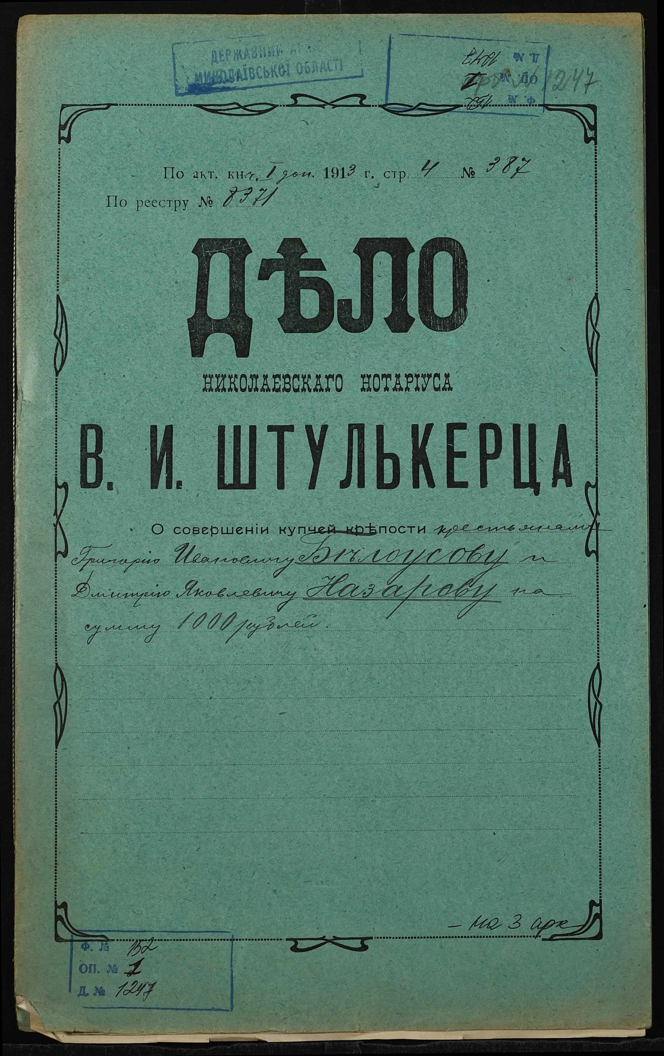 • • • • Справа № 1247 “Справа про вчинення купчої про продаж землі селянином Бєлоусовим Григорієм Івановичем (Белоусовым Григорием Ивановичем) на користь селянина Назарова Дмитра Яковича (Назарова Дмитрия Яковлевича)”