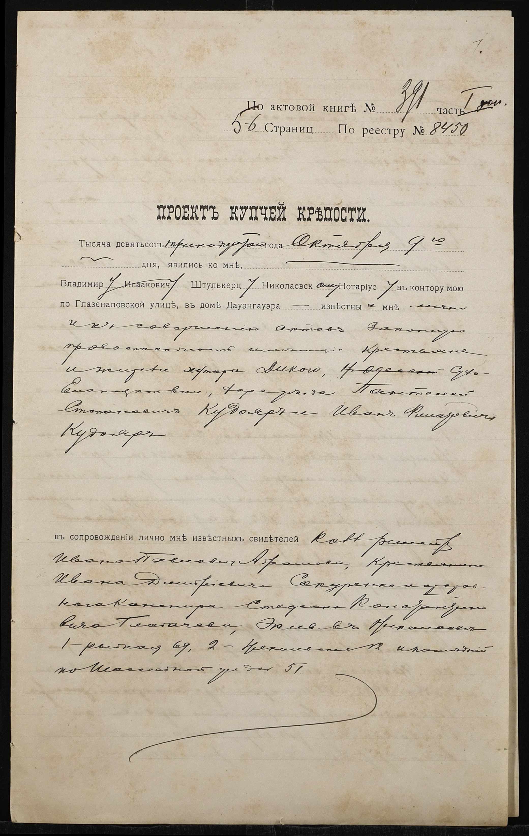 ◦ ◦ Фонд № 152 “Контора миколаївського нотаріуса Херсонського окружного суду Штулькерца Володимира Ісааковича”