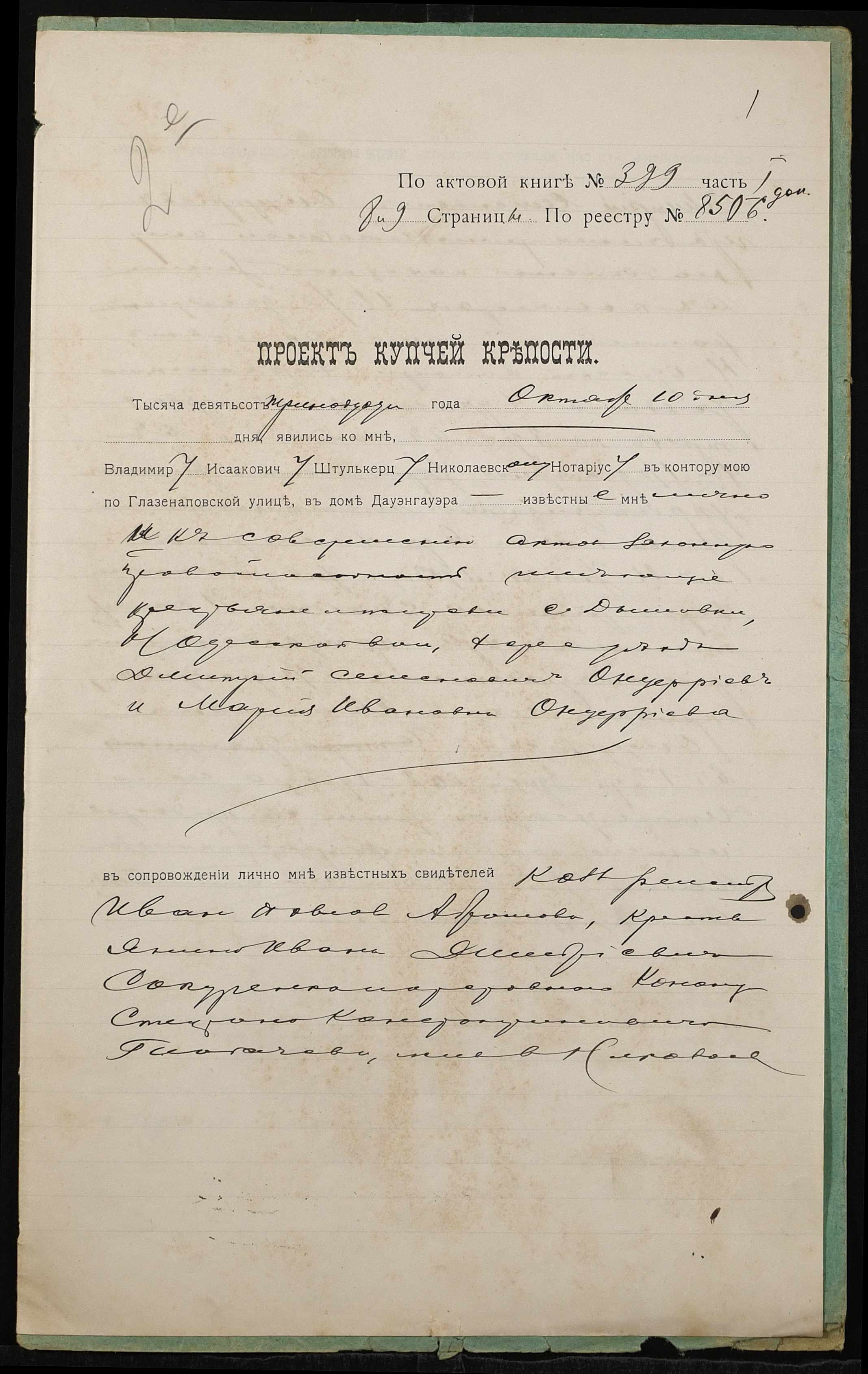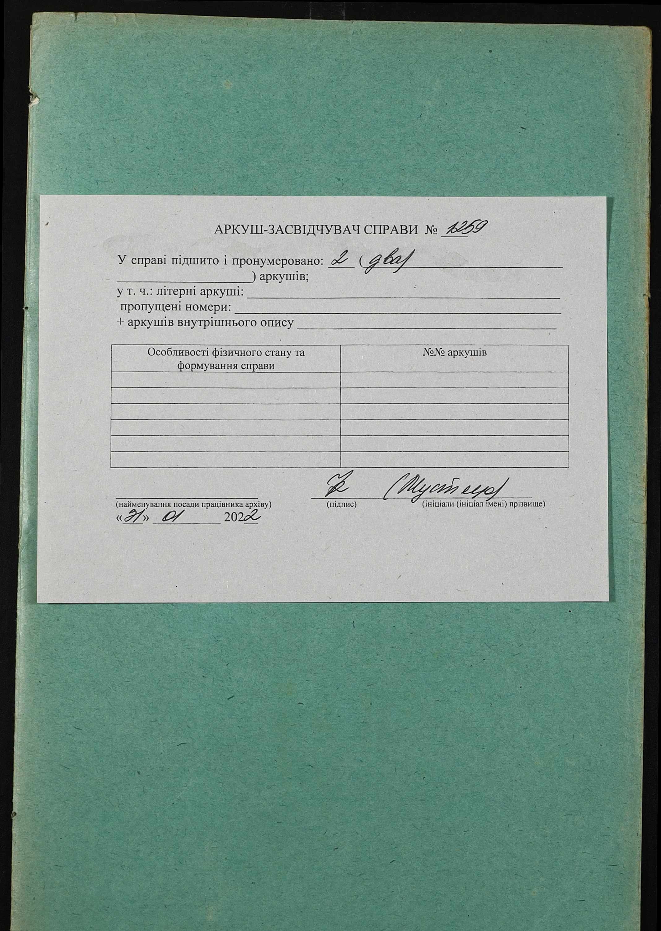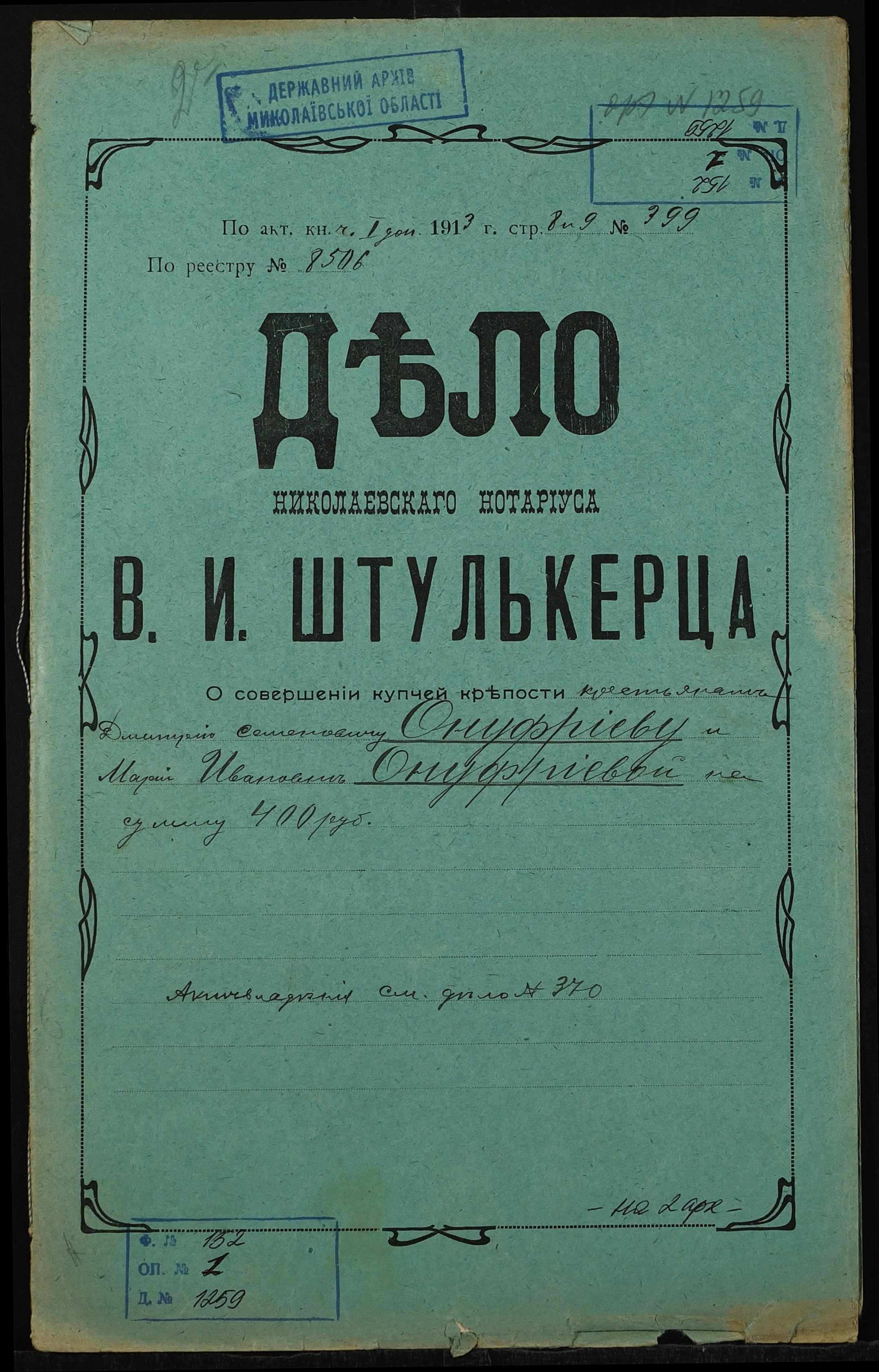 • • • • Справа № 1259 “Справа про вчинення купчої про продаж землі селянином Онуфрієвим Дмитром Семеновичем (Онуфриевым Дмитрием Семеновичем) на користь селянки Онуфрієвої Марії Іванівни (Онуфриевой Марии Ивановны)”