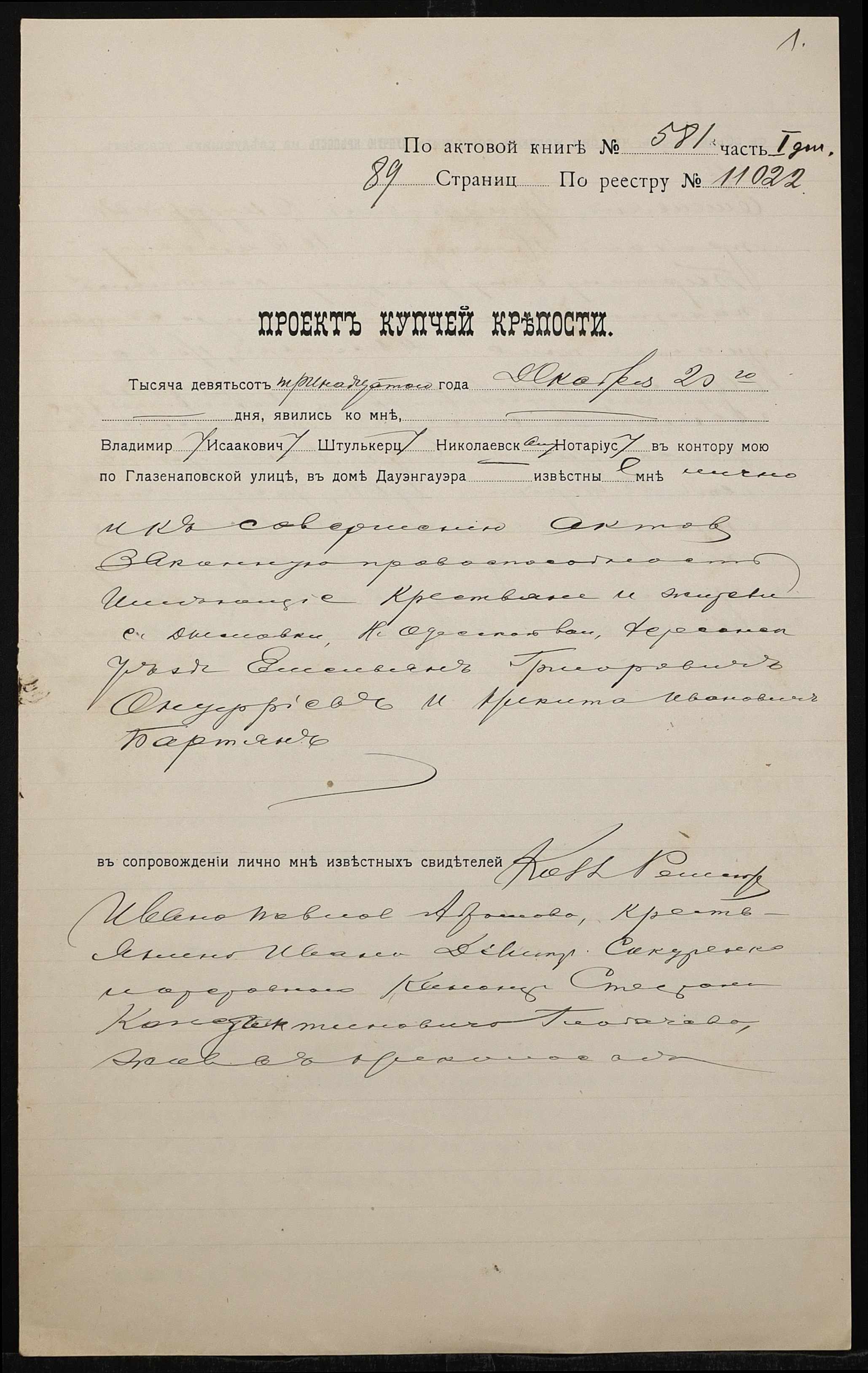 ◦ ◦ Фонд № 152 “Контора миколаївського нотаріуса Херсонського окружного суду Штулькерца Володимира Ісааковича”