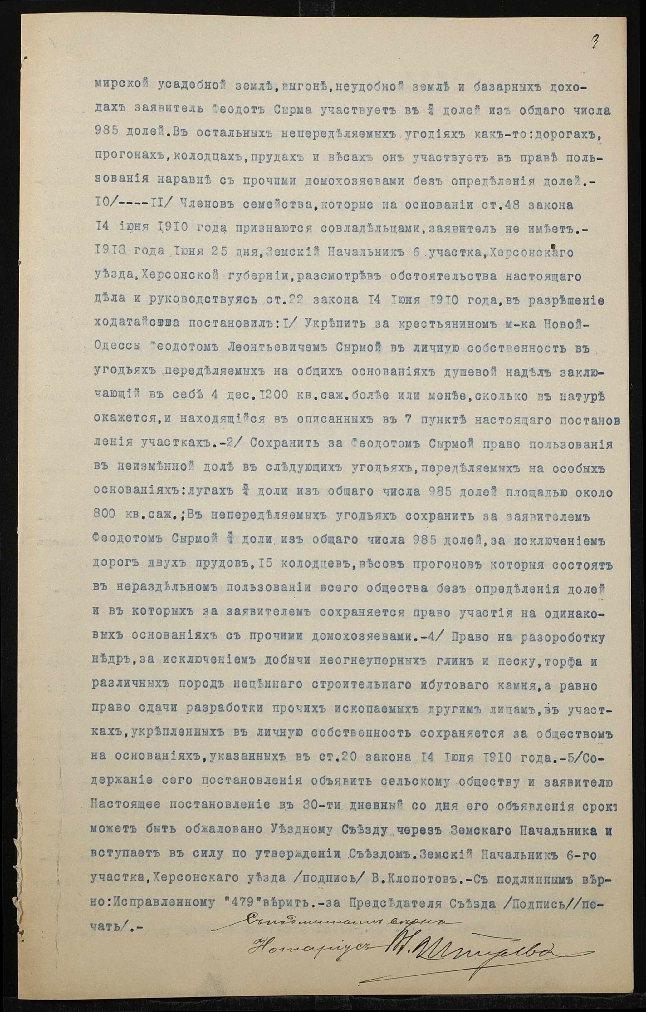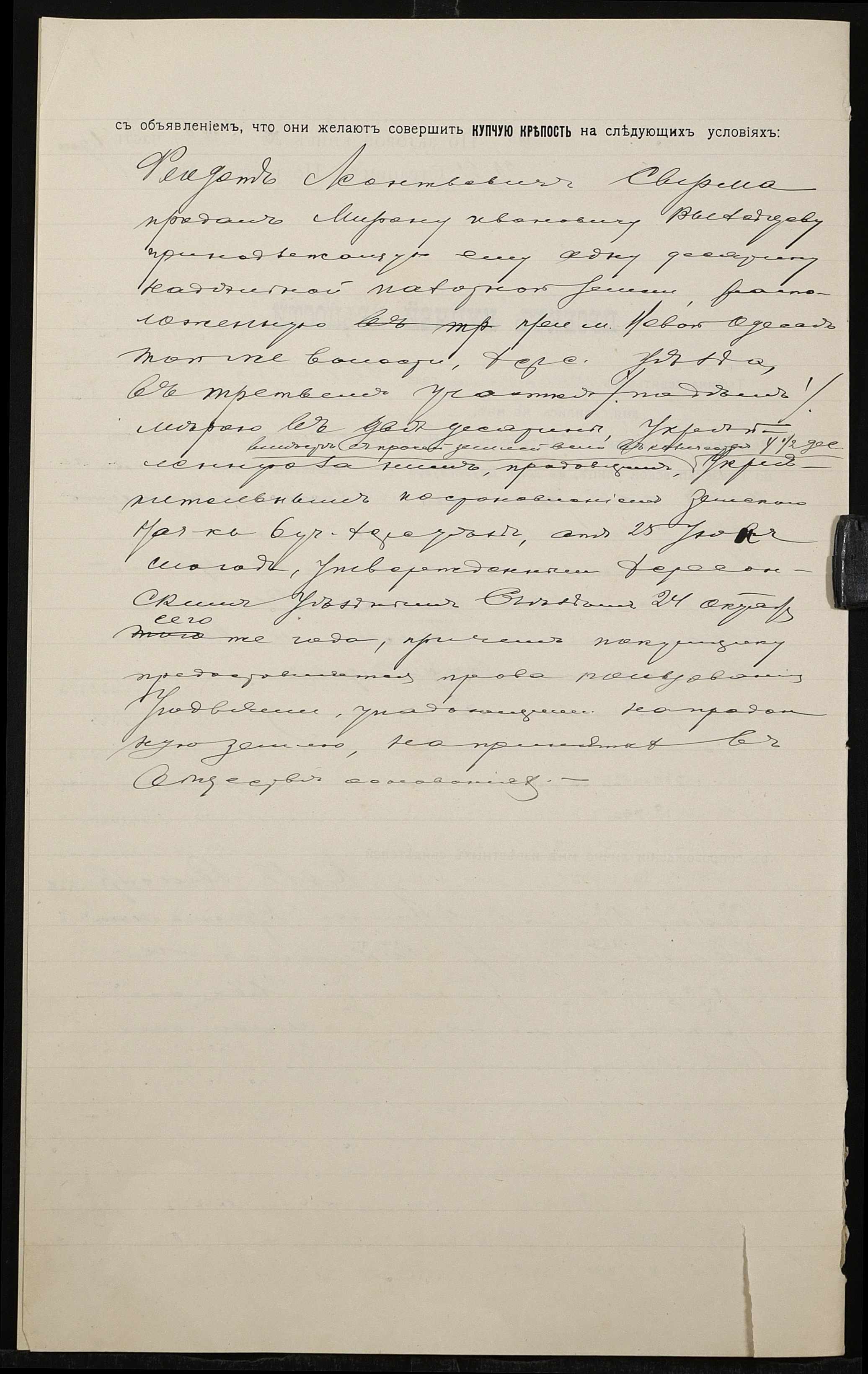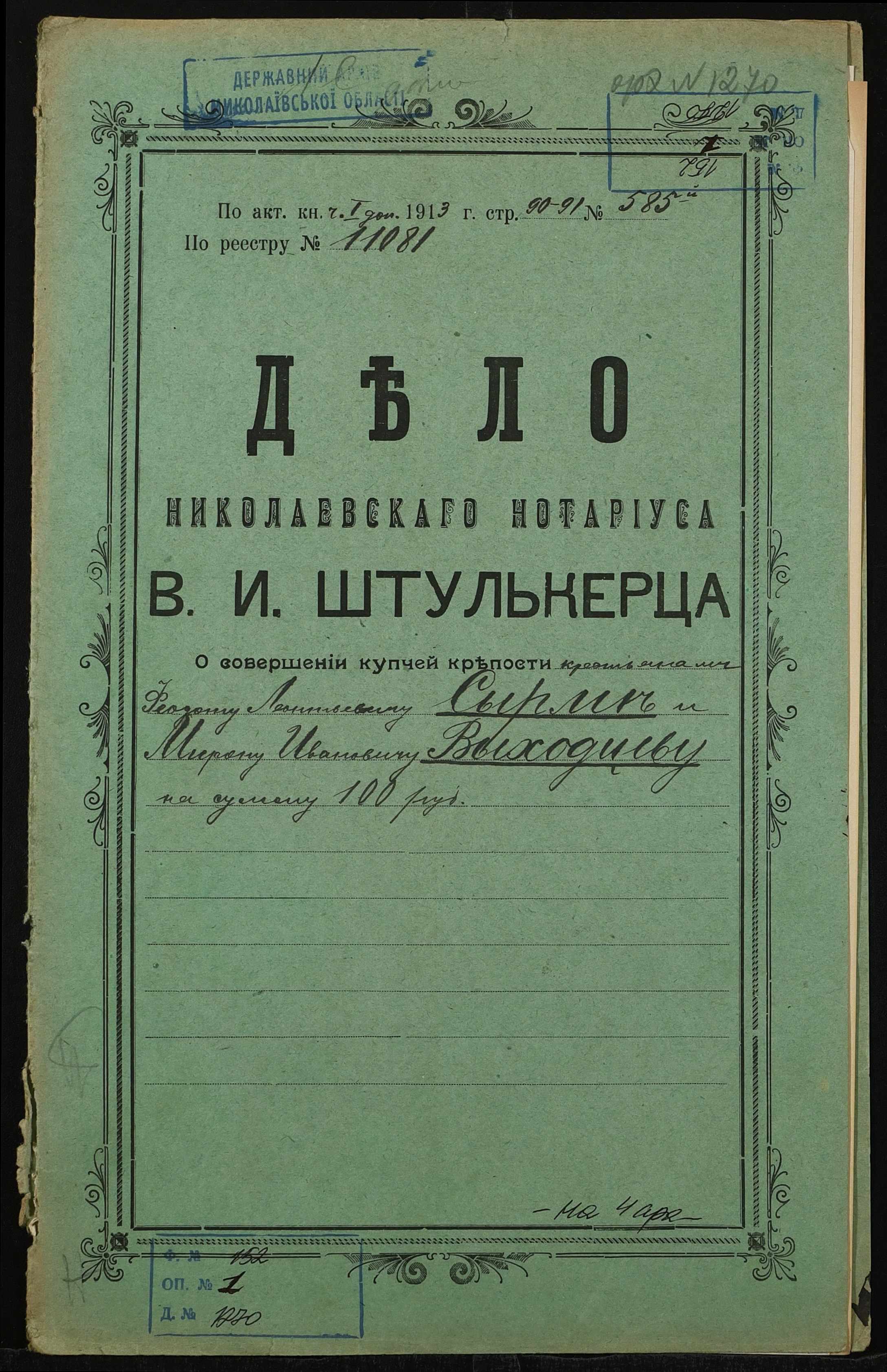• • • • Справа № 1270 “Справа про вчинення купчої про продаж землі селянином Сирмою Федотом Леонтійовичем (Сырмой Федотом Леонтьевичем) на користь селянина Виходцева Мирона Івановича (Выходцева Мирона Ивановича)”