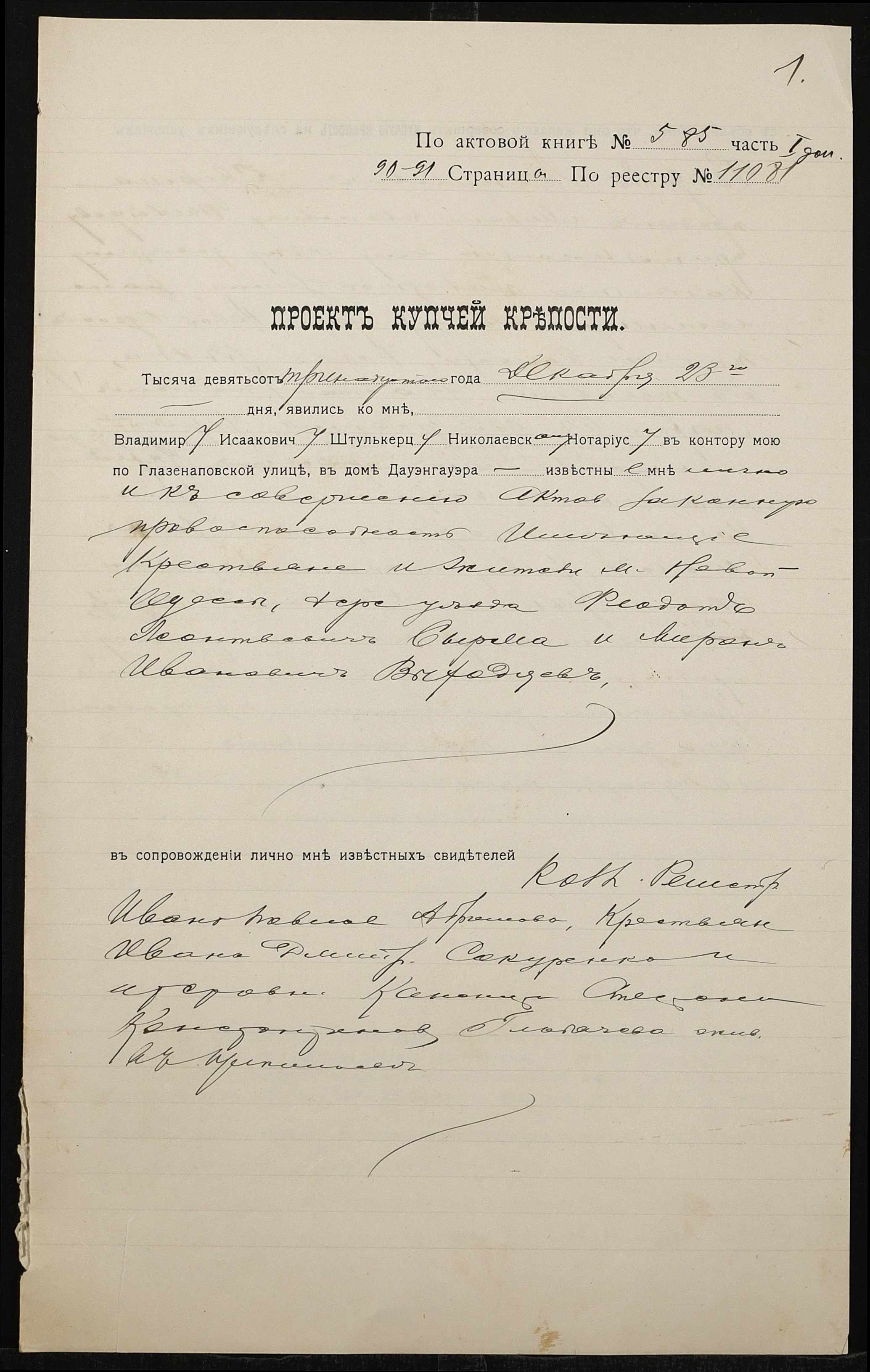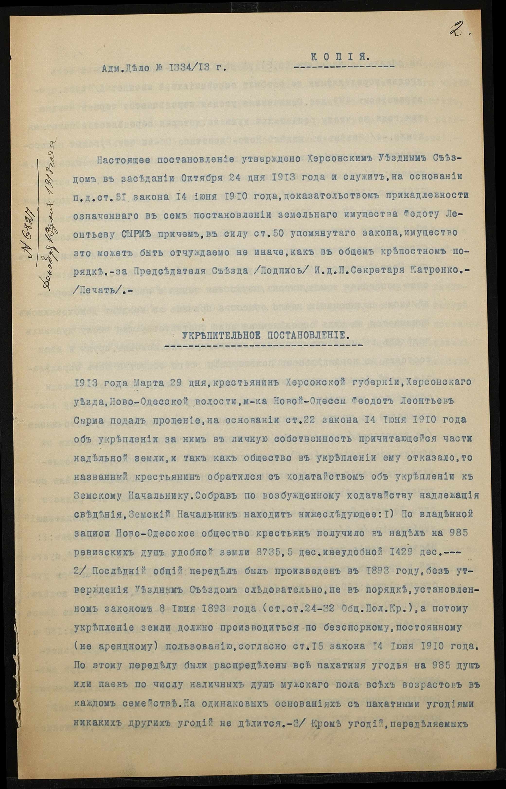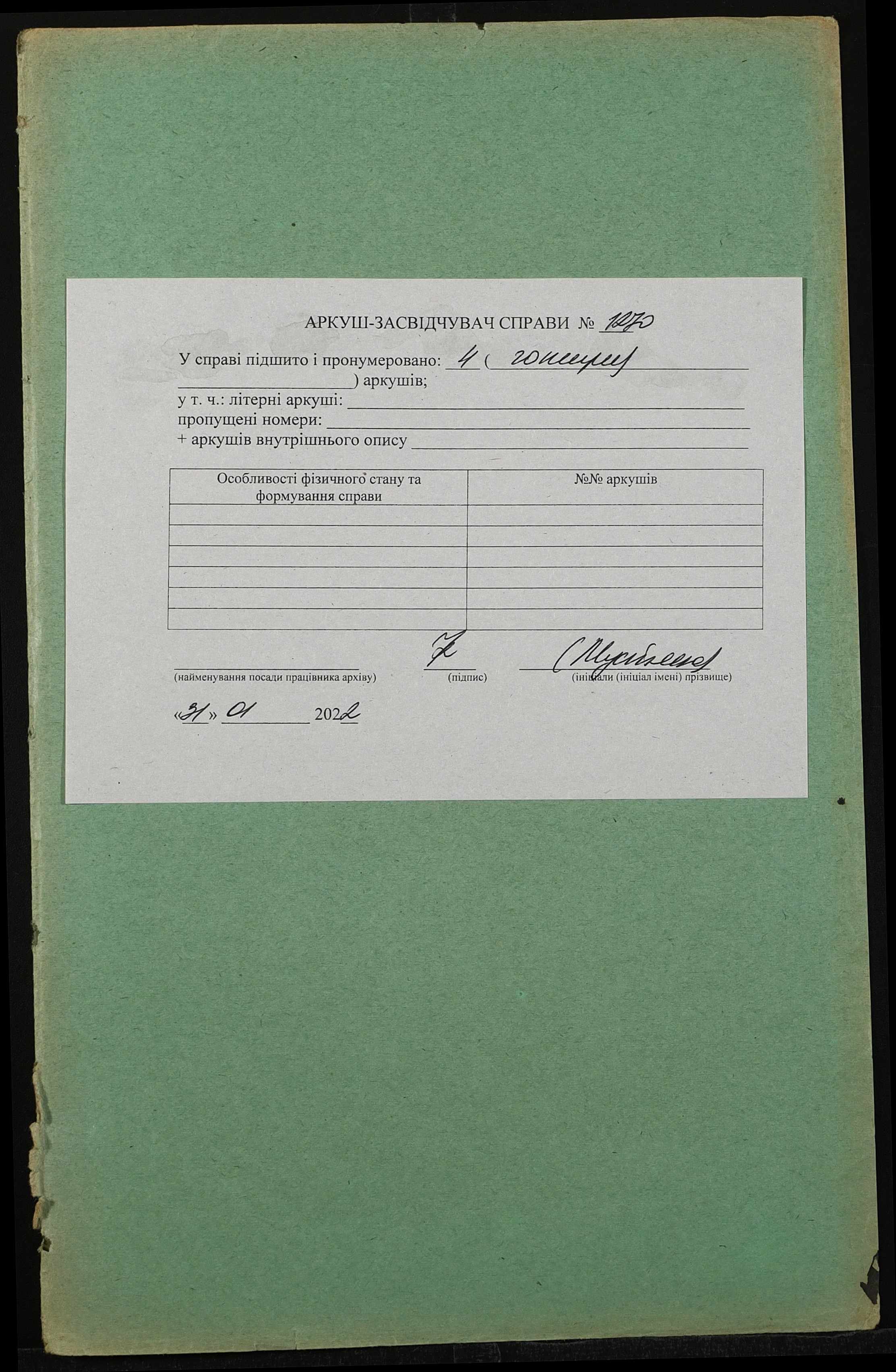 • • • • Справа № 1270 “Справа про вчинення купчої про продаж землі селянином Сирмою Федотом Леонтійовичем (Сырмой Федотом Леонтьевичем) на користь селянина Виходцева Мирона Івановича (Выходцева Мирона Ивановича)”