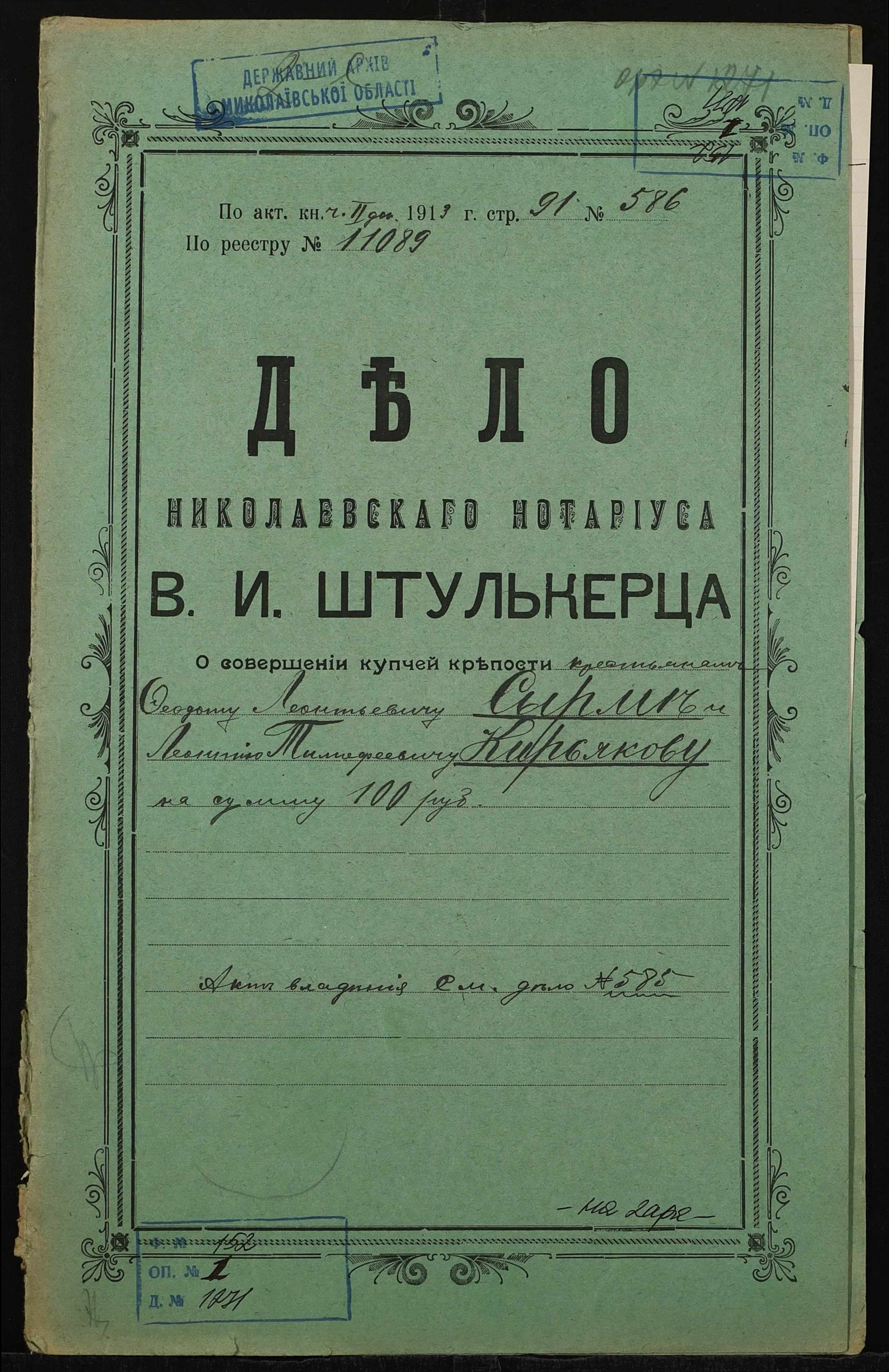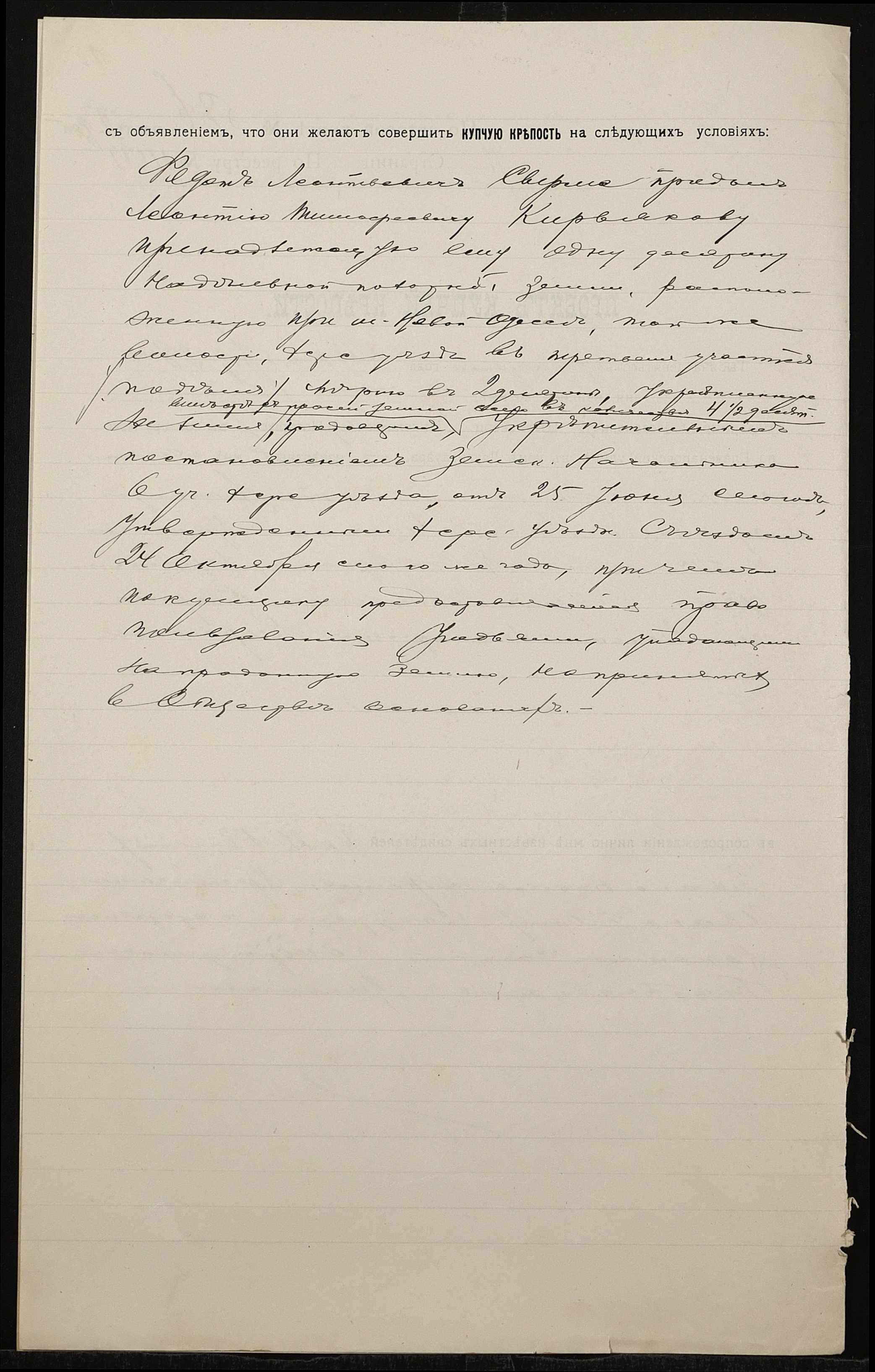 • • • • Справа № 1271 “Справа про вчинення купчої про продаж землі селянином Сирмою Федотом Леонтійовичем (Сырмой Федотом Леонтьевичем) на користь селянина Кир’якова Леонтія Тимофійовича (Кирьякова Леонтия Тимофеевича)”