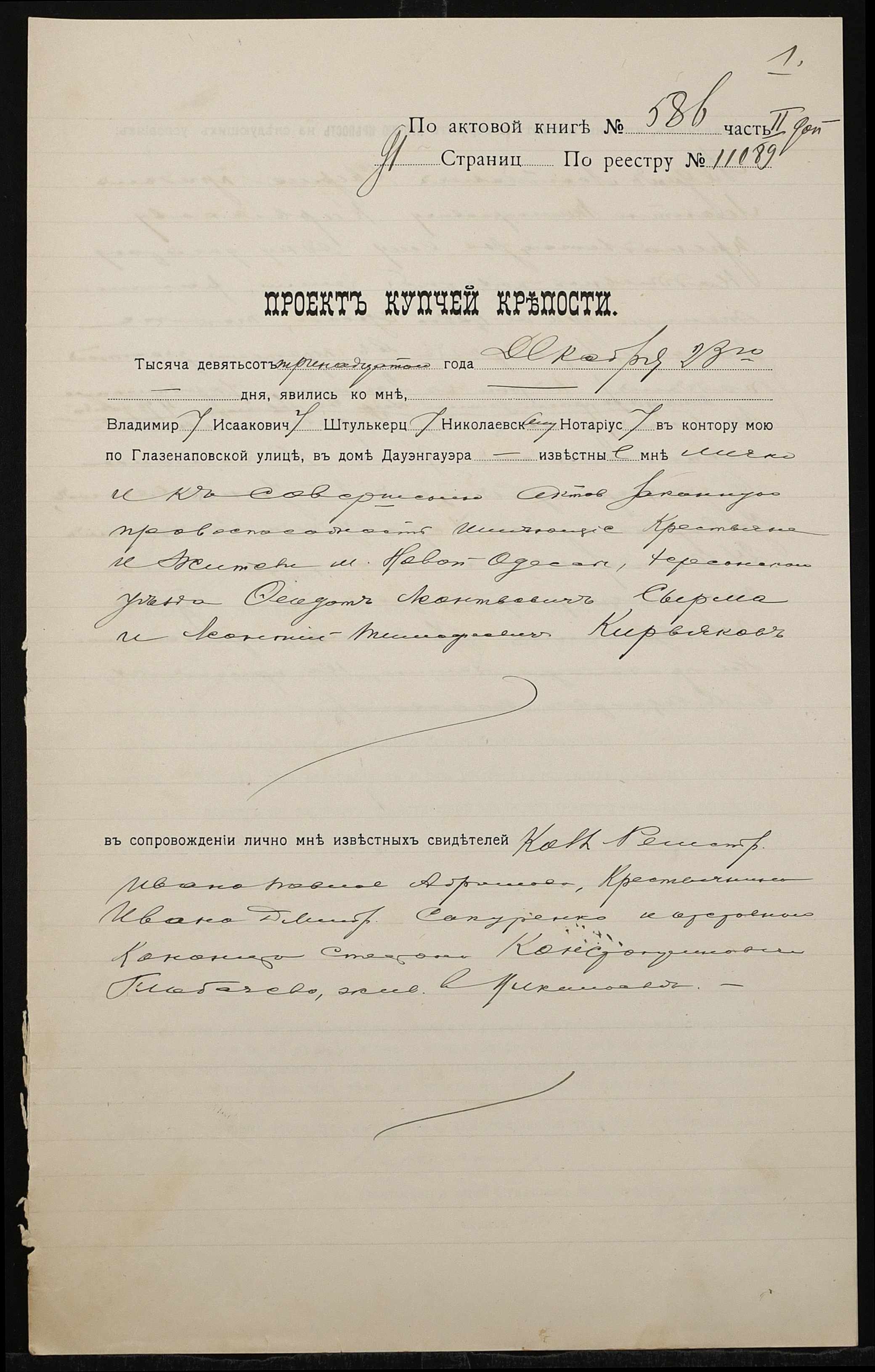 ◦ ◦ Фонд № 152 “Контора миколаївського нотаріуса Херсонського окружного суду Штулькерца Володимира Ісааковича”
