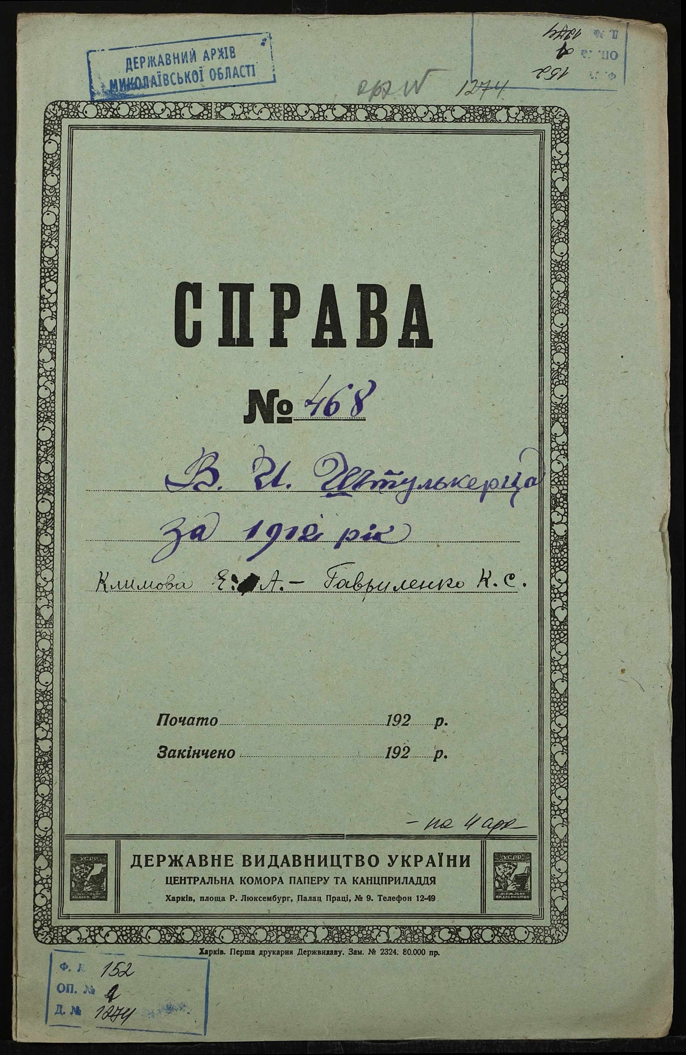 ◦ ◦ Фонд № 152 “Контора миколаївського нотаріуса Херсонського окружного суду Штулькерца Володимира Ісааковича”