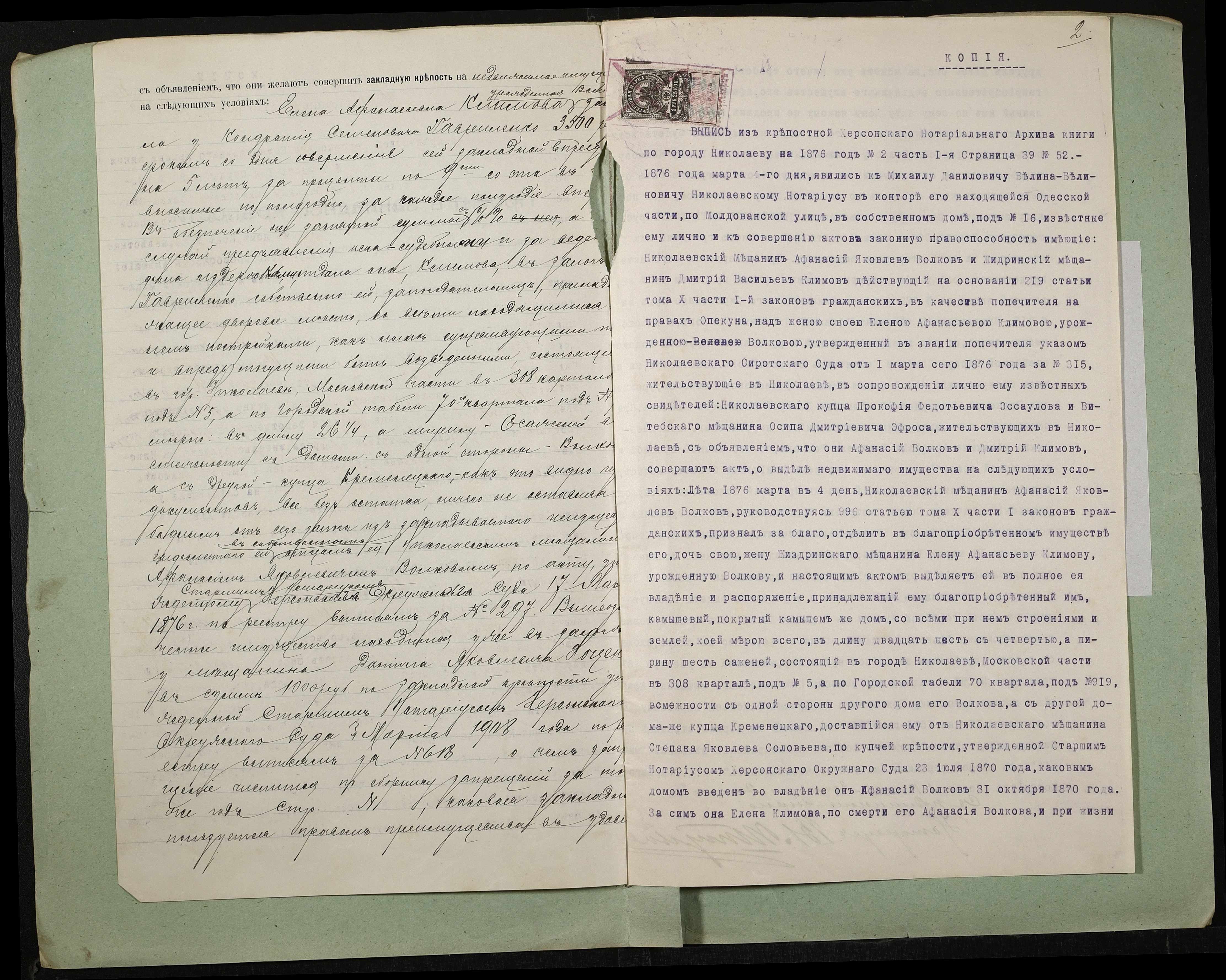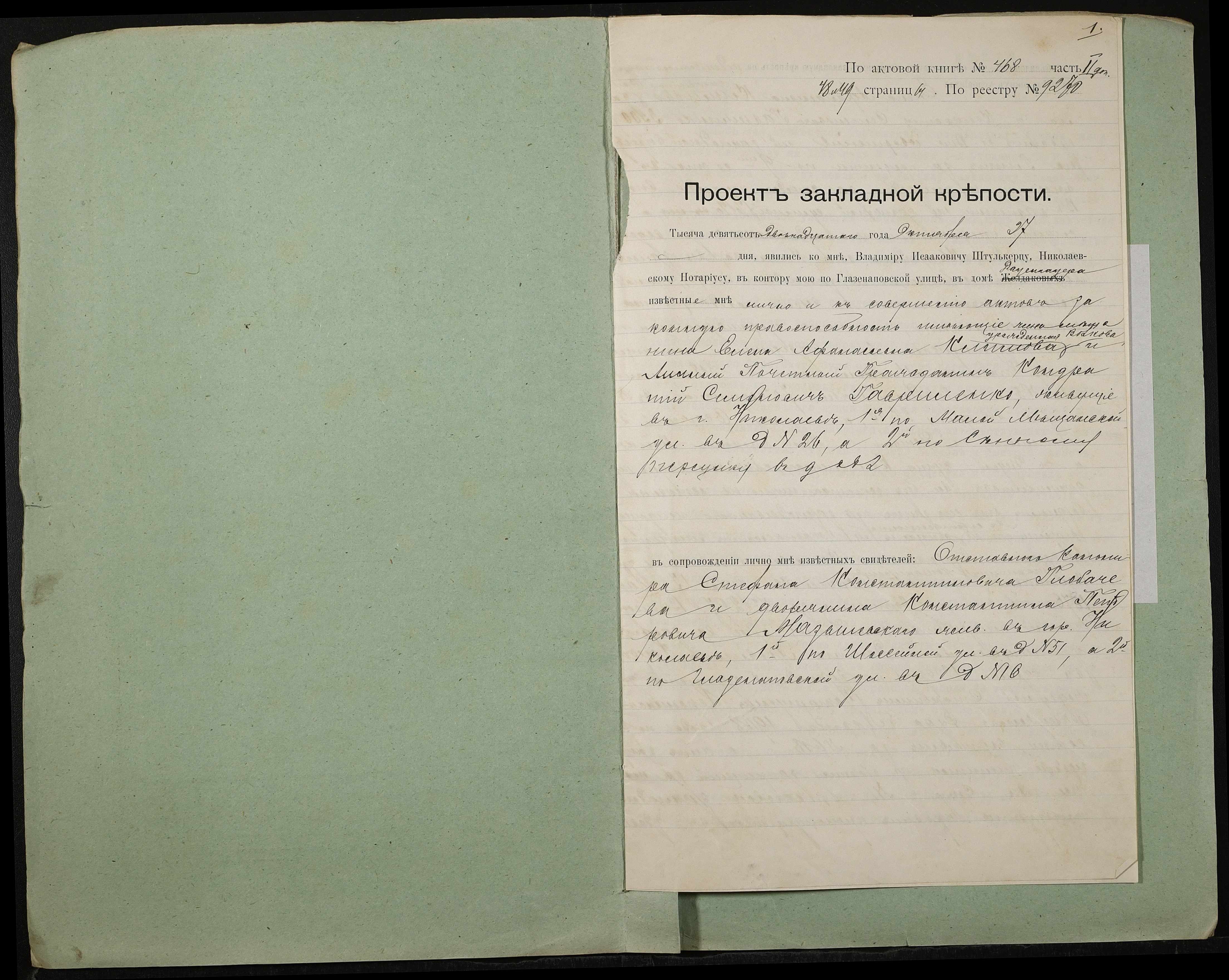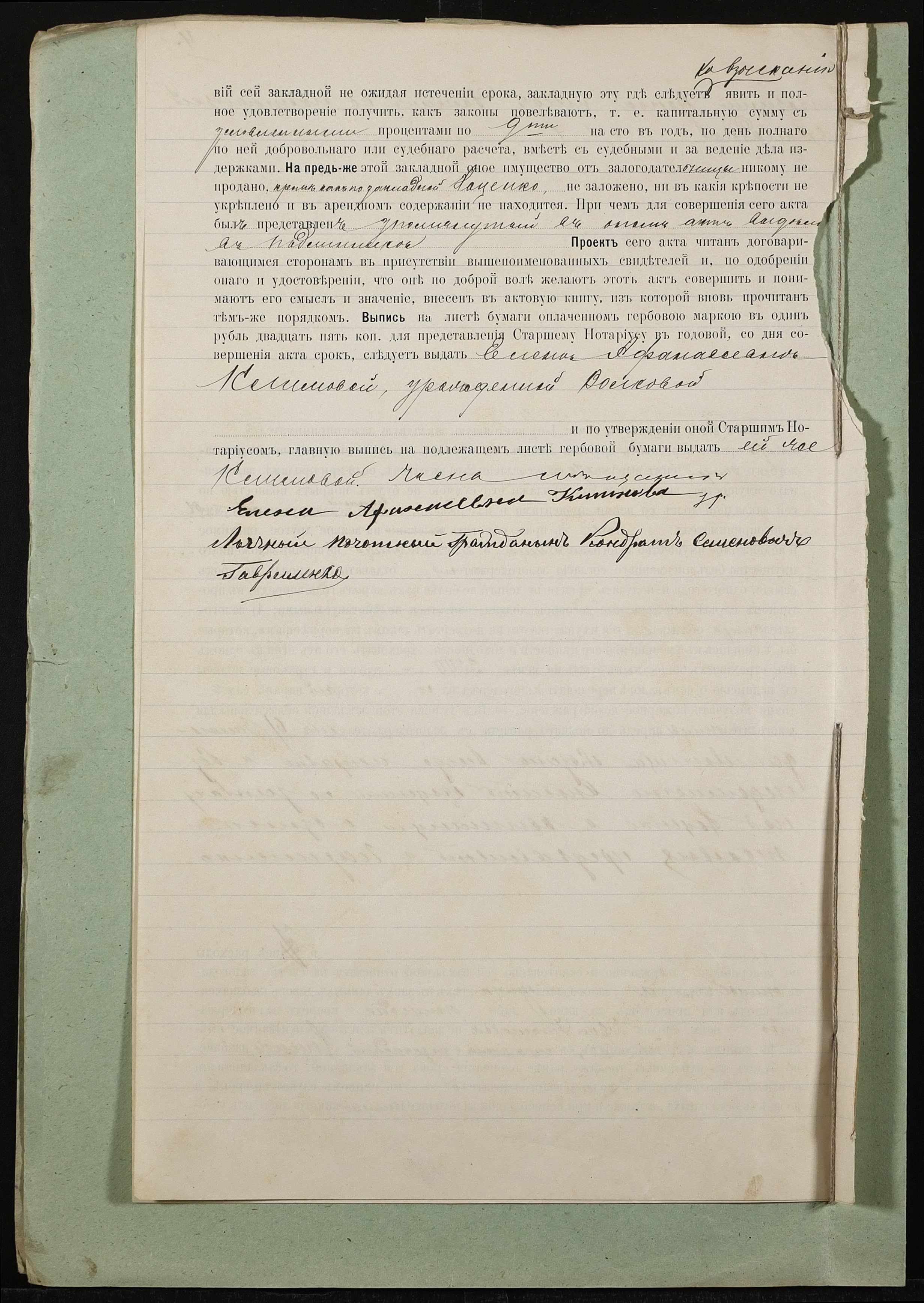 • • • • Справа № 1274 “Справа про вчинення заставної на нерухоме майно, закладене дружиною міщанина Климовою Оленою Опанасівною (Климовой Еленой Афанасьевной) – особистому почесному громадянину Гавриленку Кіндрату Семеновичу (Гавриленко Кондрату Семеновичу)”
