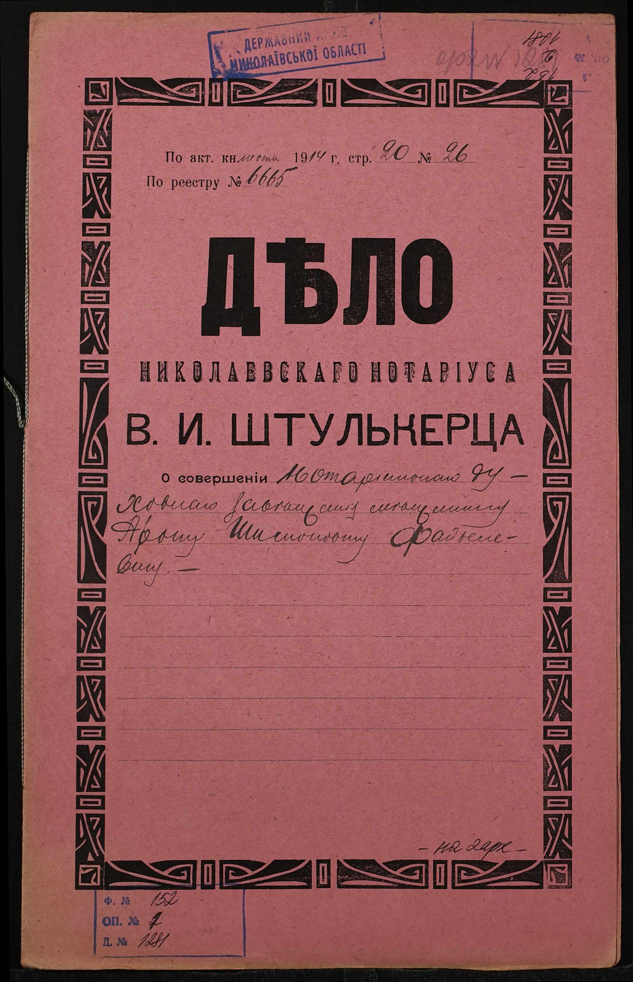 ◦ ◦ Фонд № 152 “Контора миколаївського нотаріуса Херсонського окружного суду Штулькерца Володимира Ісааковича”