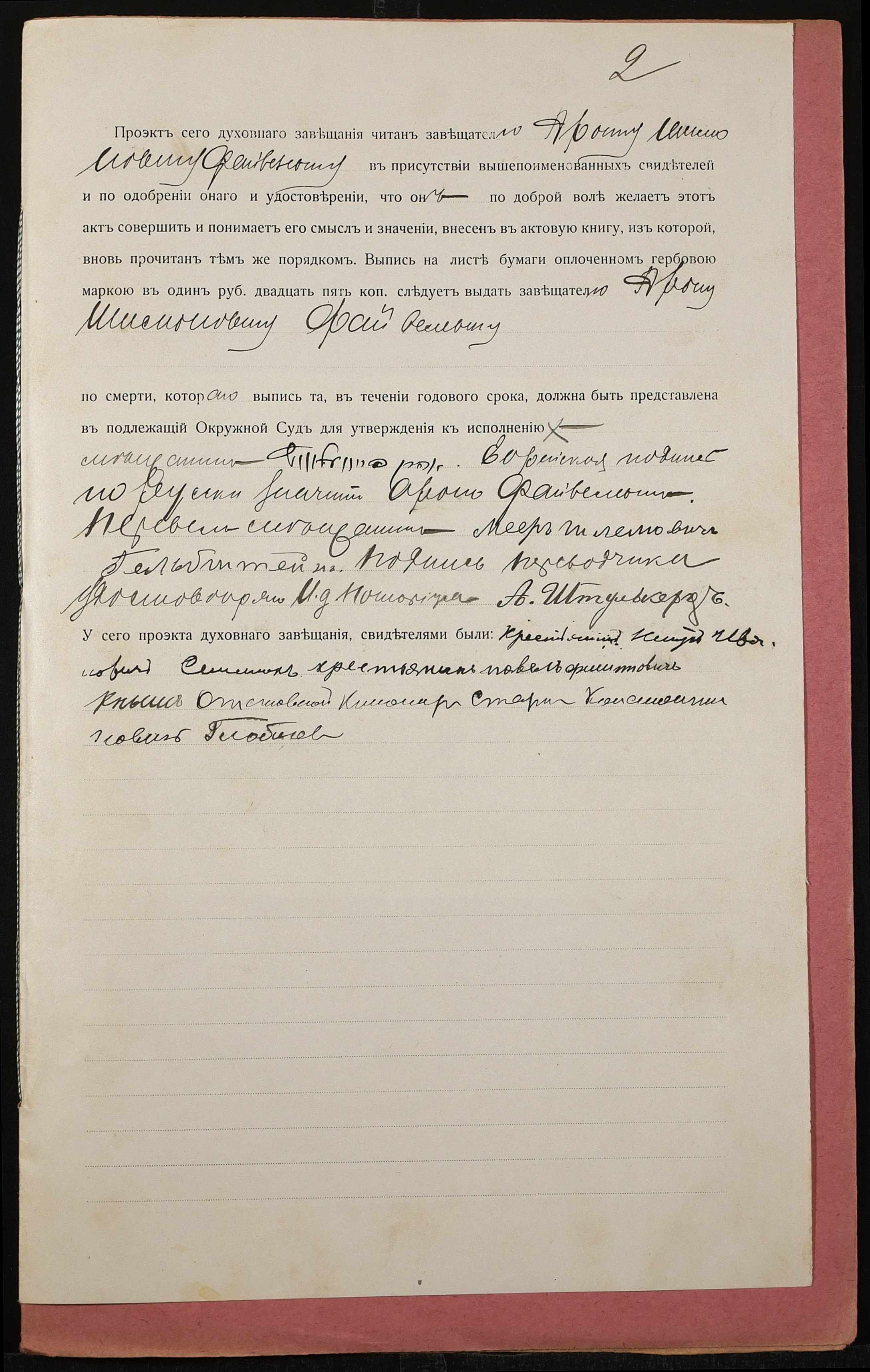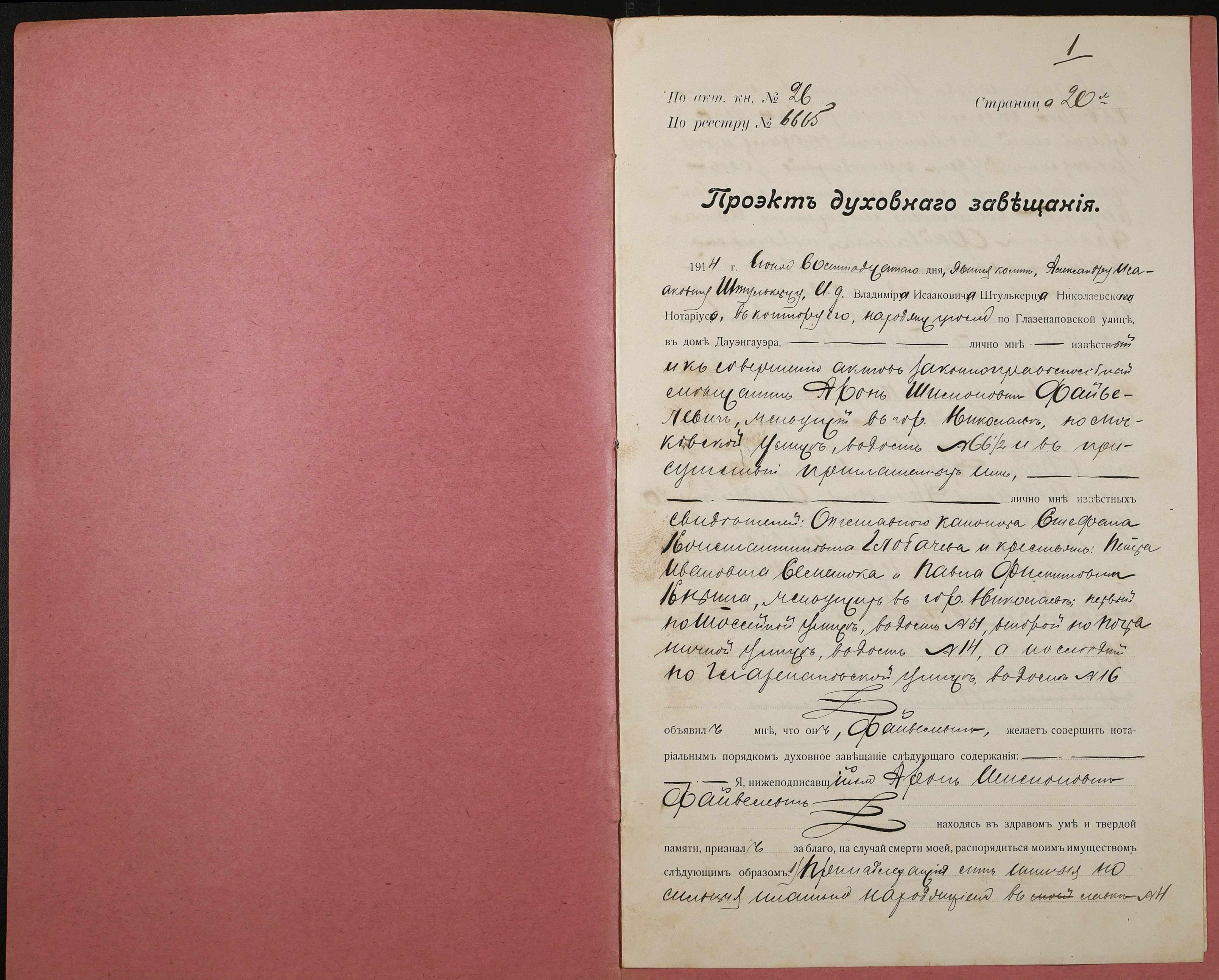 • • • • Справа № 1281 “Проєкт духівниці дворянина Файвелевича Арона Шимоновича (Файвелевича Арона Шимоновича)”