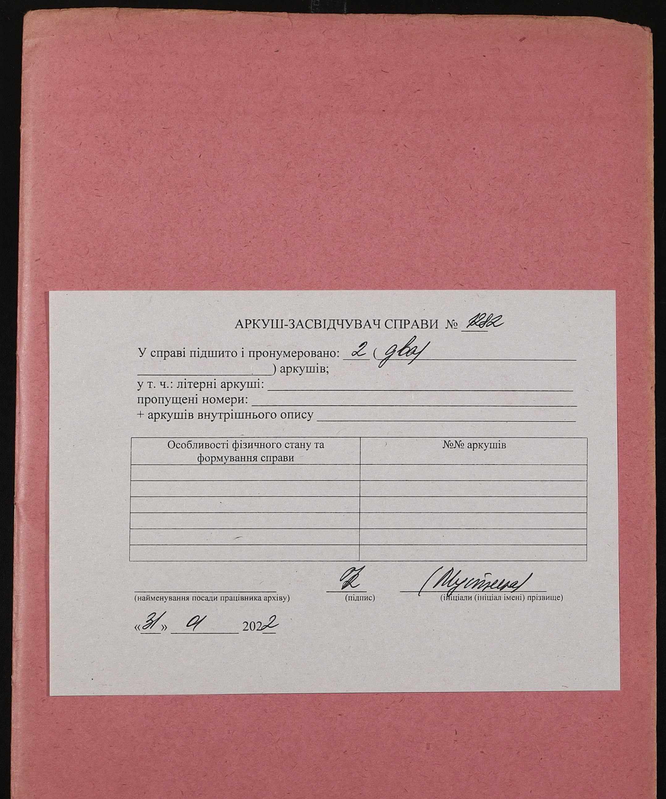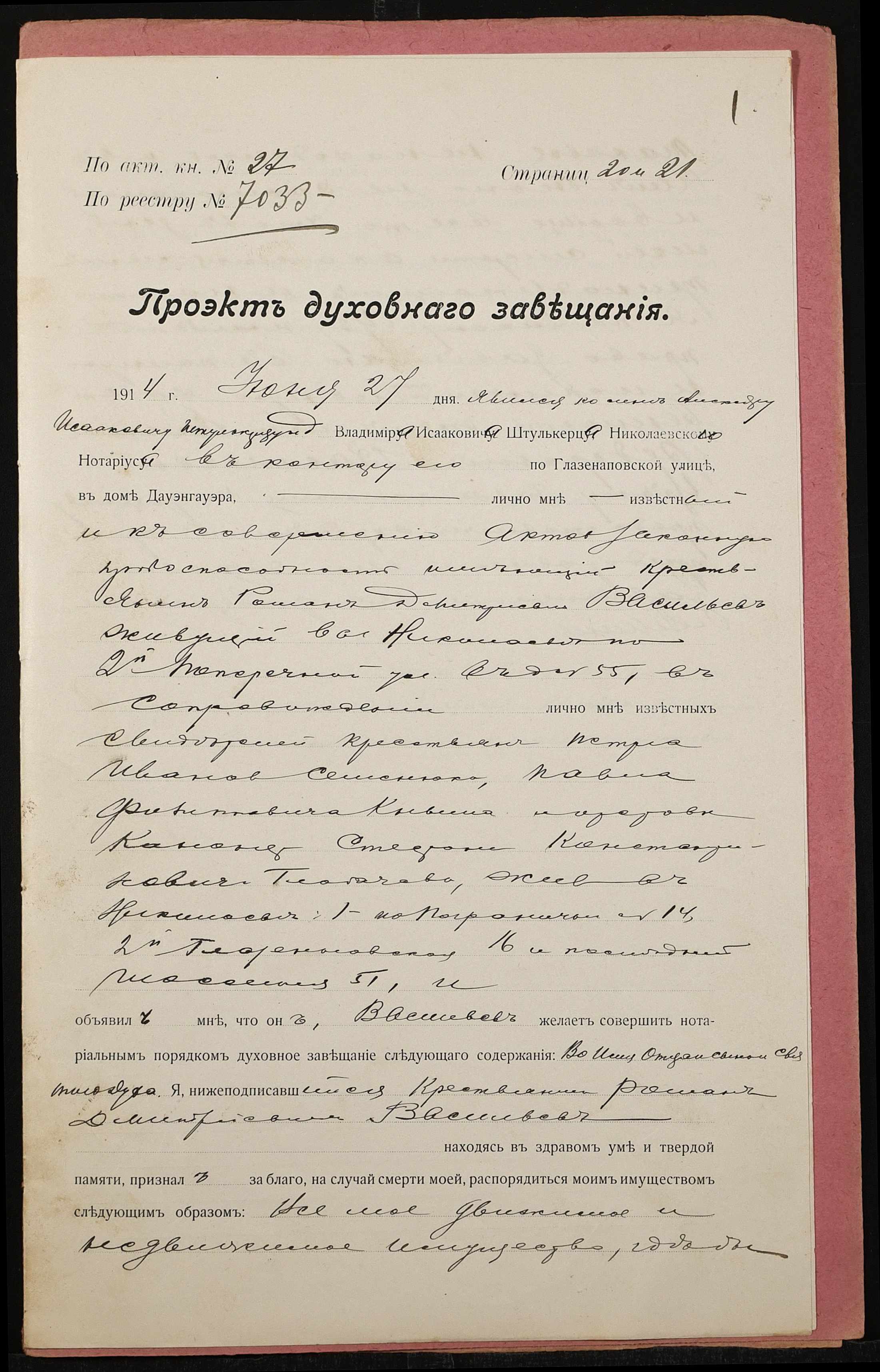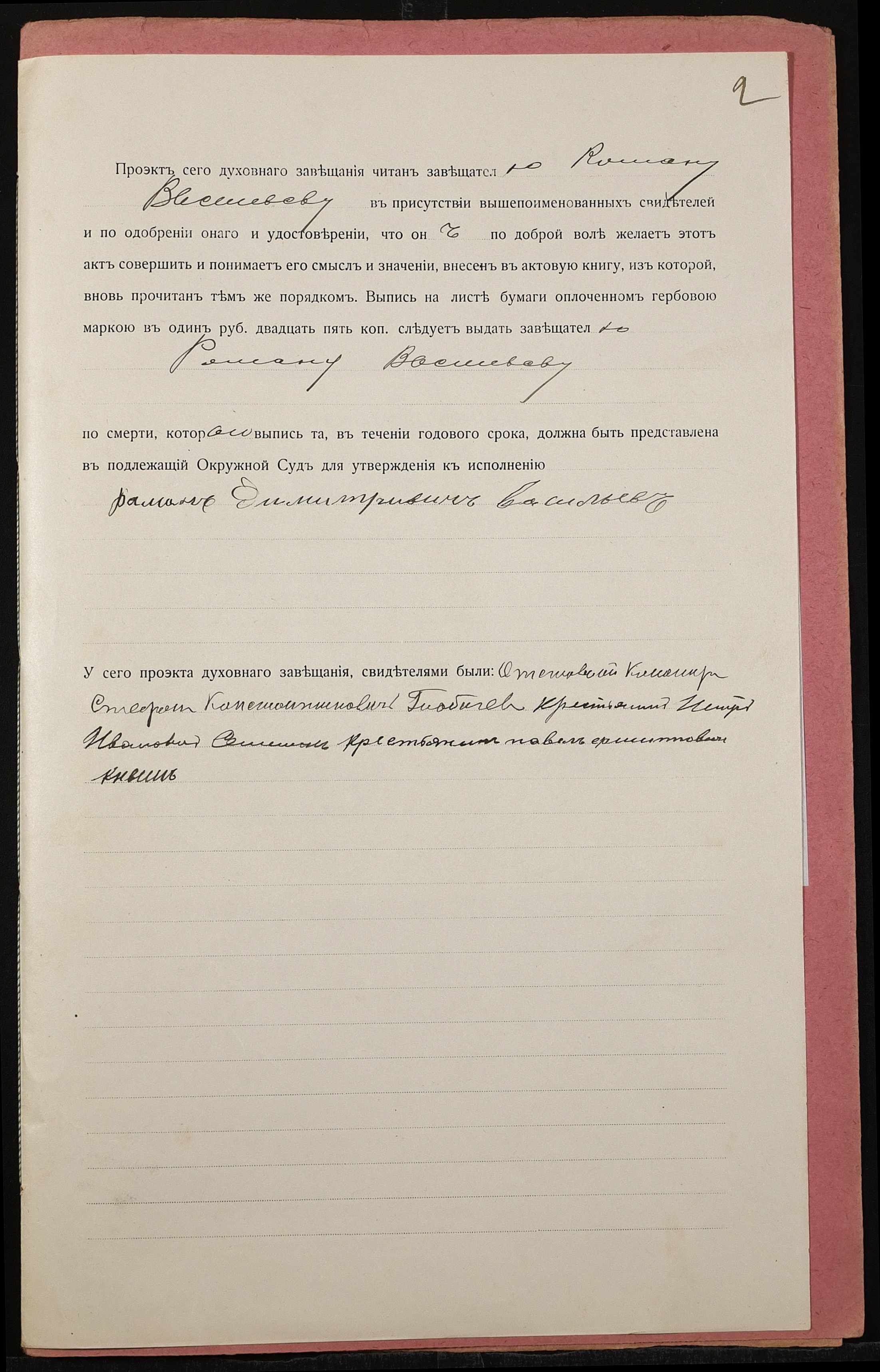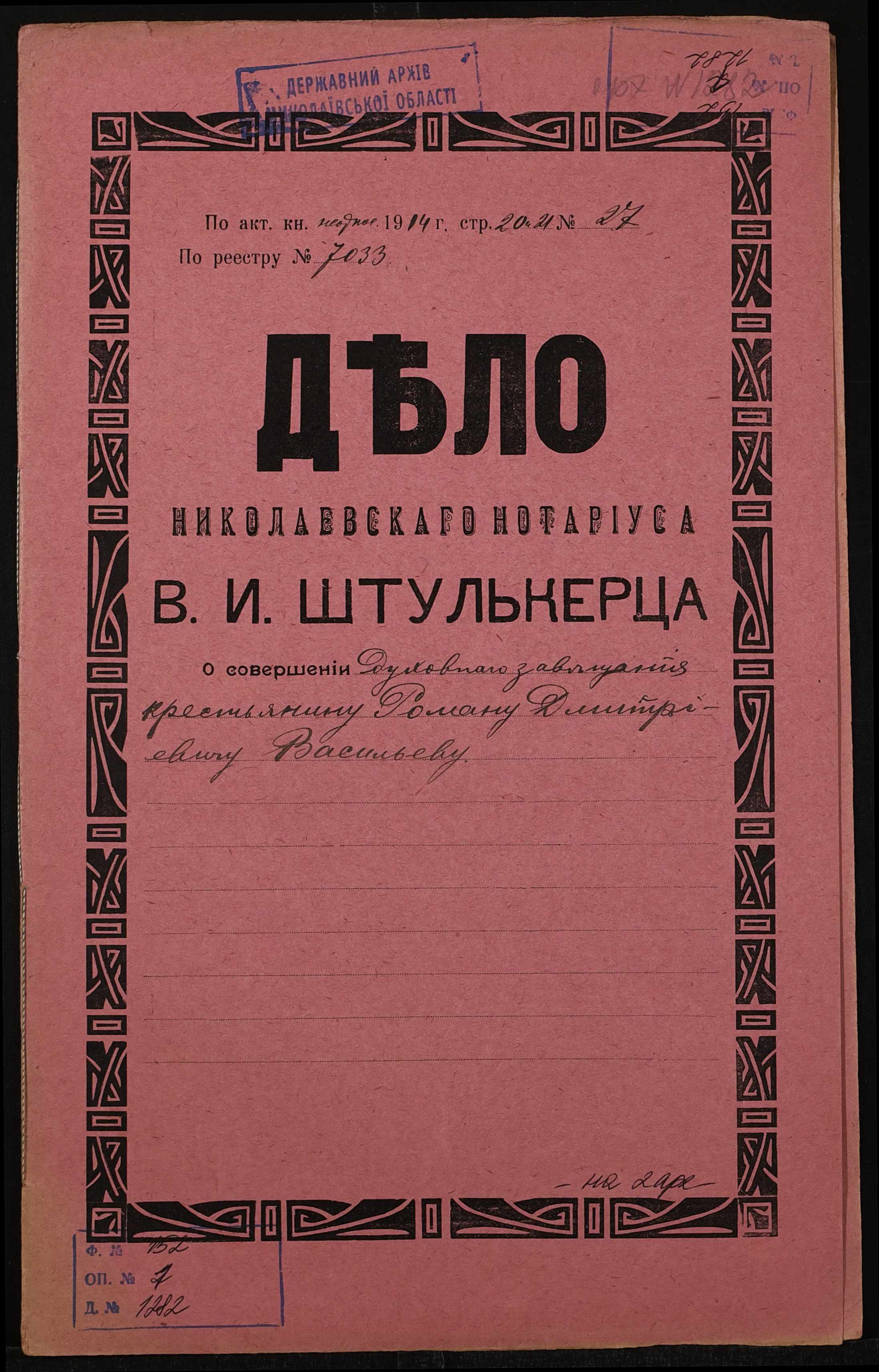 • • • • Справа № 1282 “Проєкт духівниці селянина Васильєва Романа Дмитровича (Васильева Романа Дмитриевича)”