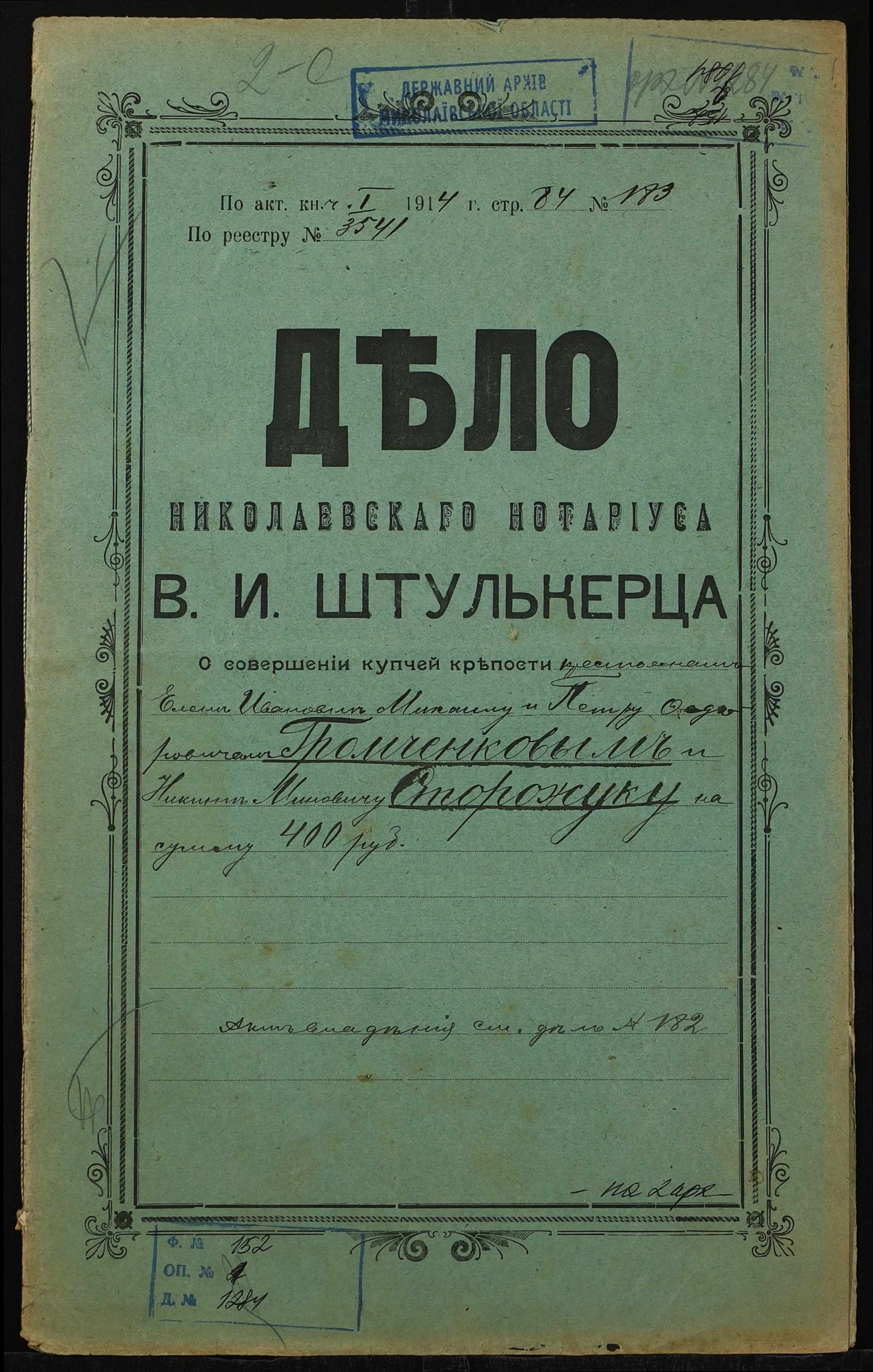 ◦ ◦ Фонд № 152 “Контора миколаївського нотаріуса Херсонського окружного суду Штулькерца Володимира Ісааковича”