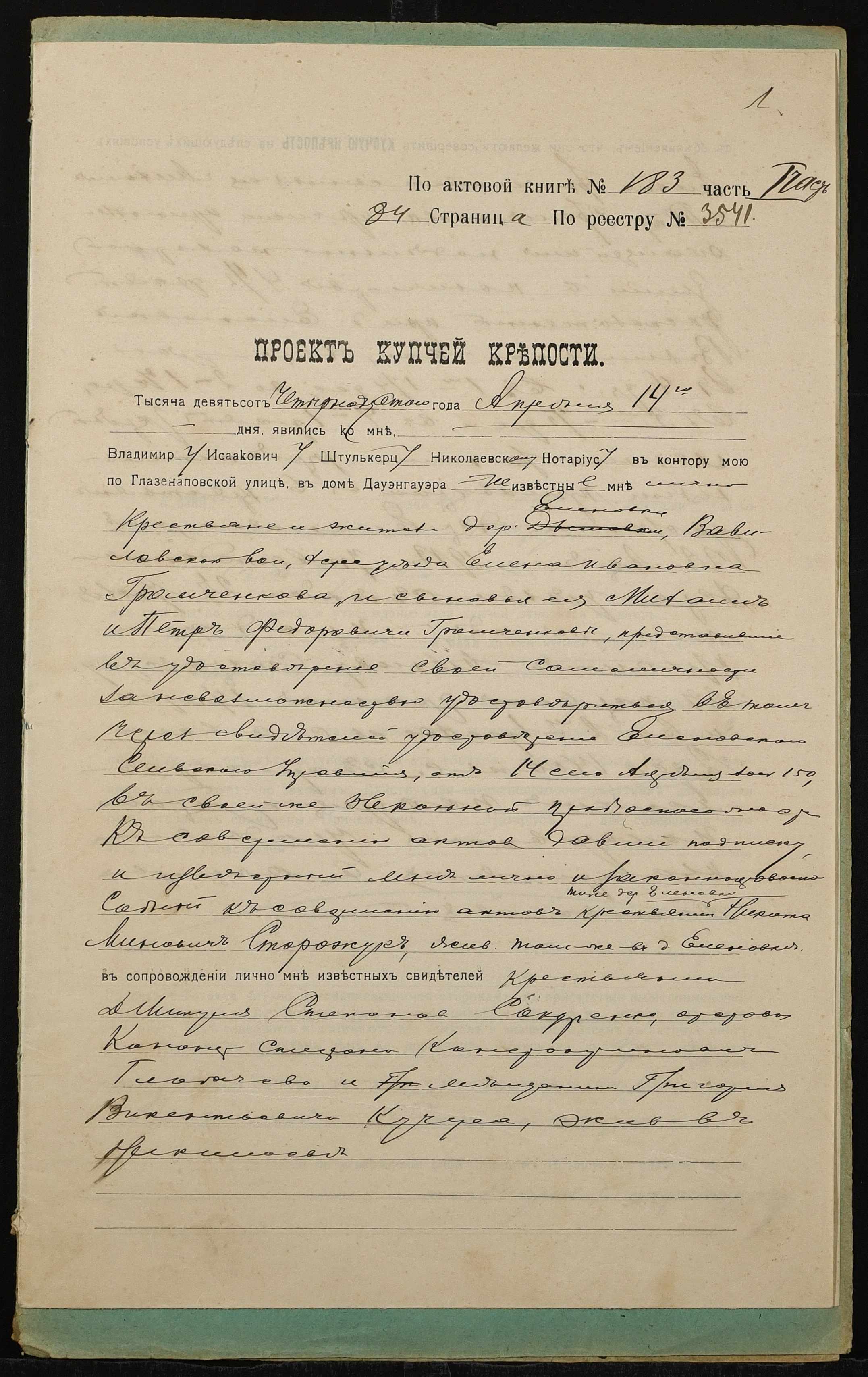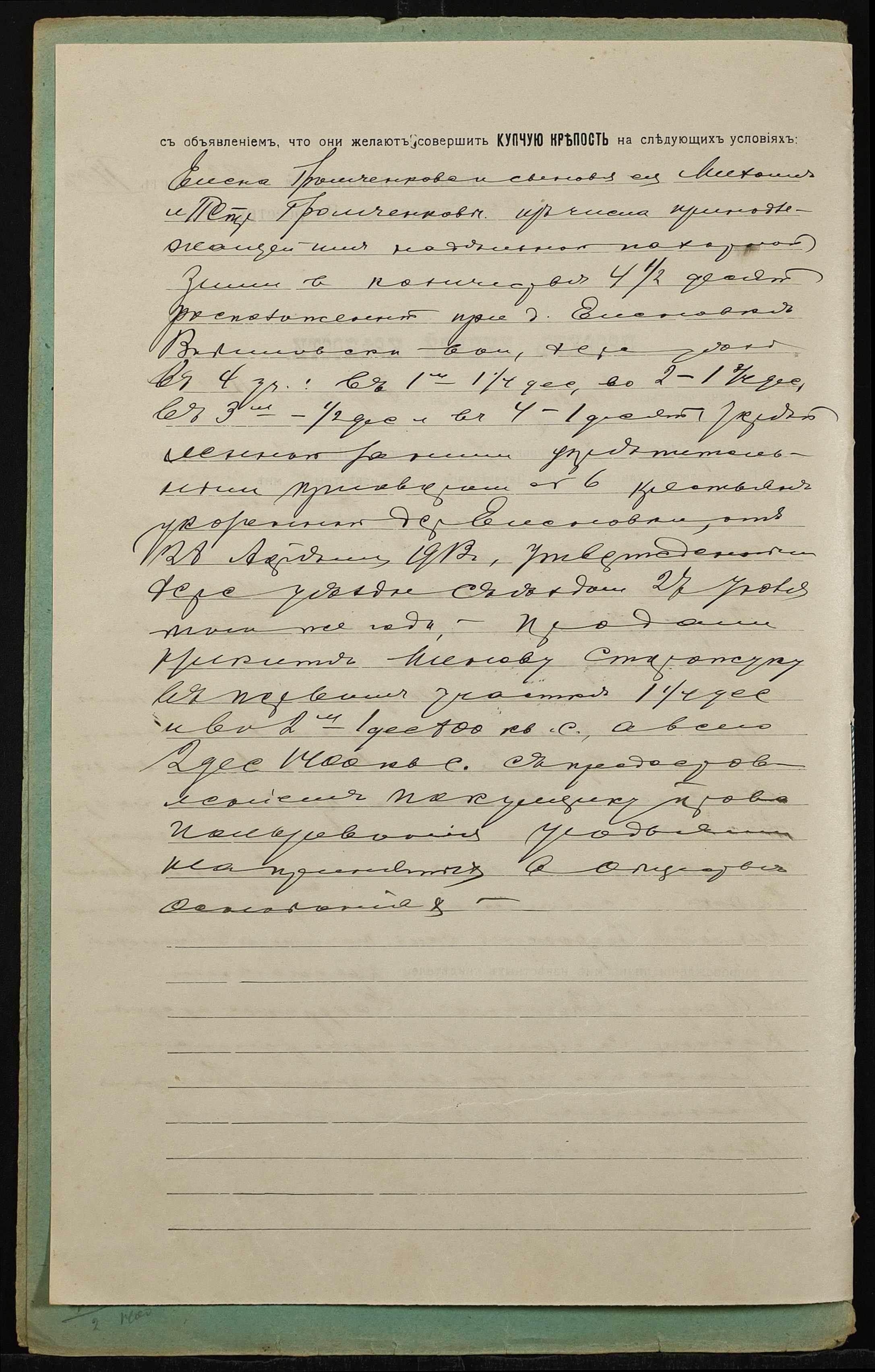 • • • • Справа № 1284 “Справа про вчинення купчої про продаж землі селянами Громченковою Оленою Іванівною (Громченковой Еленой Ивановной) і Громченковими Михайлом і Петром Федоровичами (Громченковыми Михаилом и Петром Федоровичами) на користь селянина Сторожука Микити Миновича (Сторожука Никиты Миновича)”