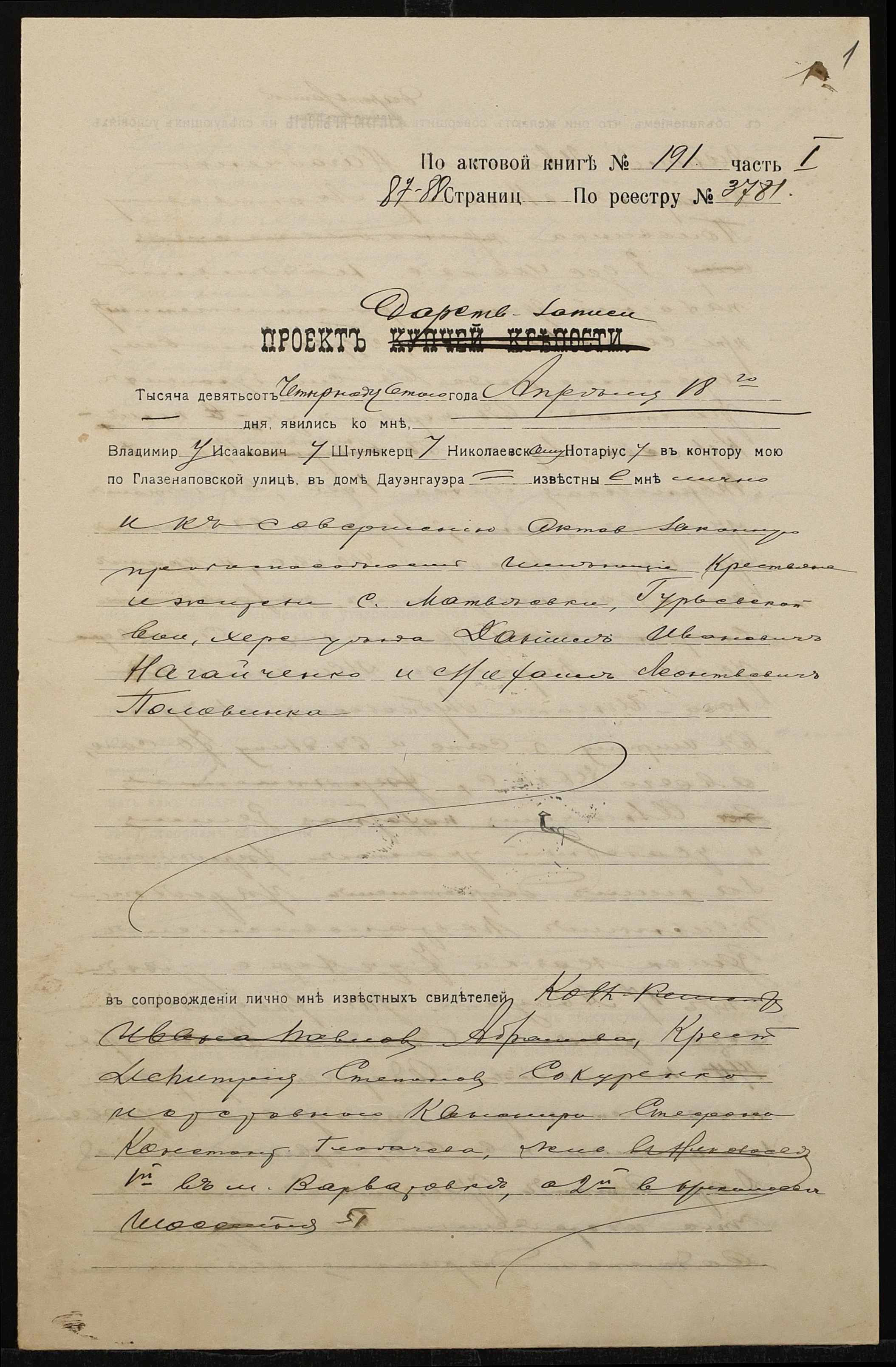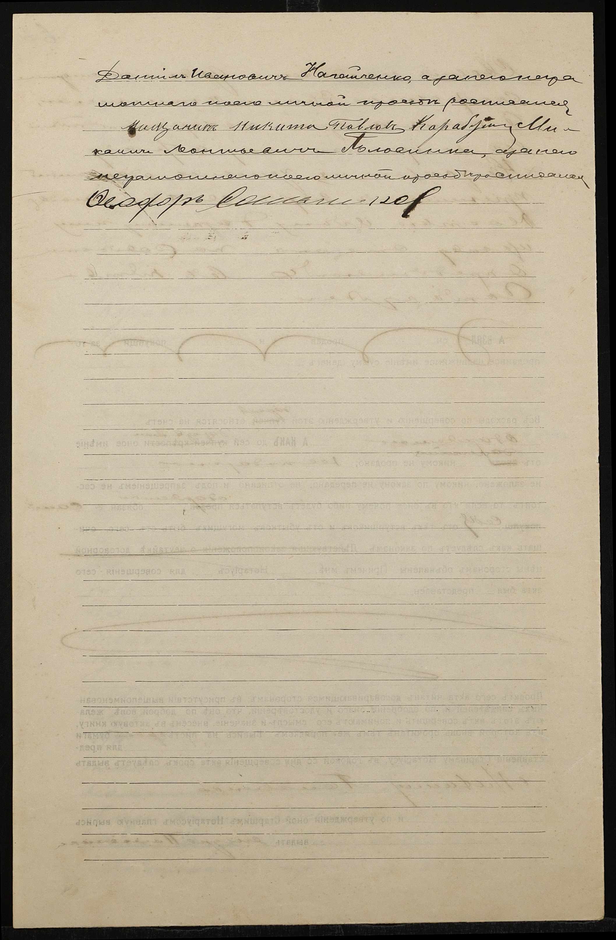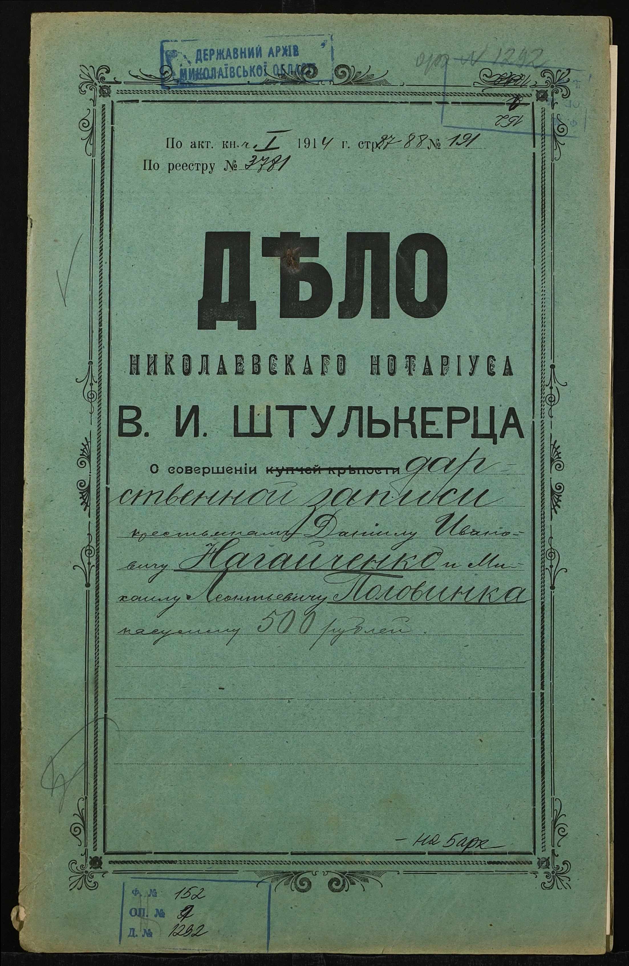 • • • • Справа № 1292 “Справа про вчинення дарчої на землю, передану селянином Нагайченком Данилом Івановичем (Нагайченко Данилом Ивановичем) у власність селянина Половинки Михайла Леонтійовича (Половинки Михаила Леонтьевича)”