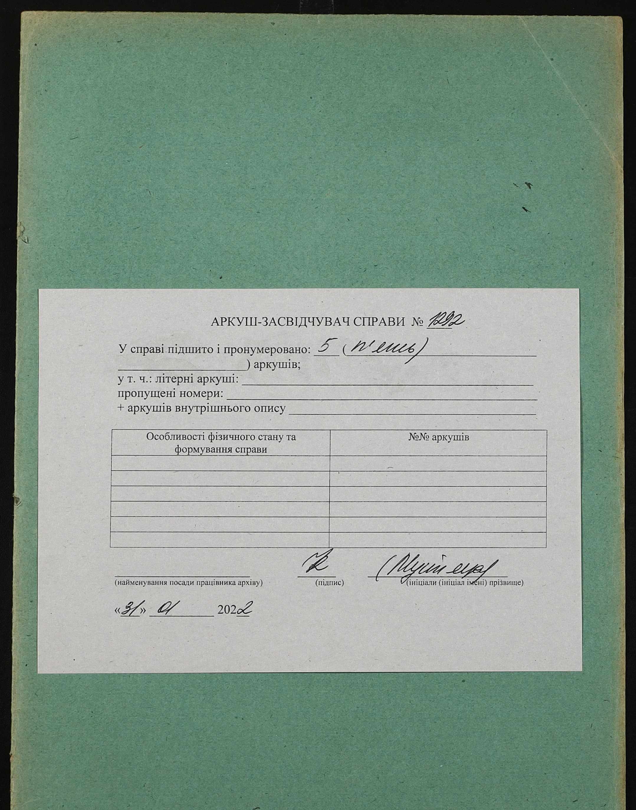 Фонд 152 / Опис 1 / Справа 1292
