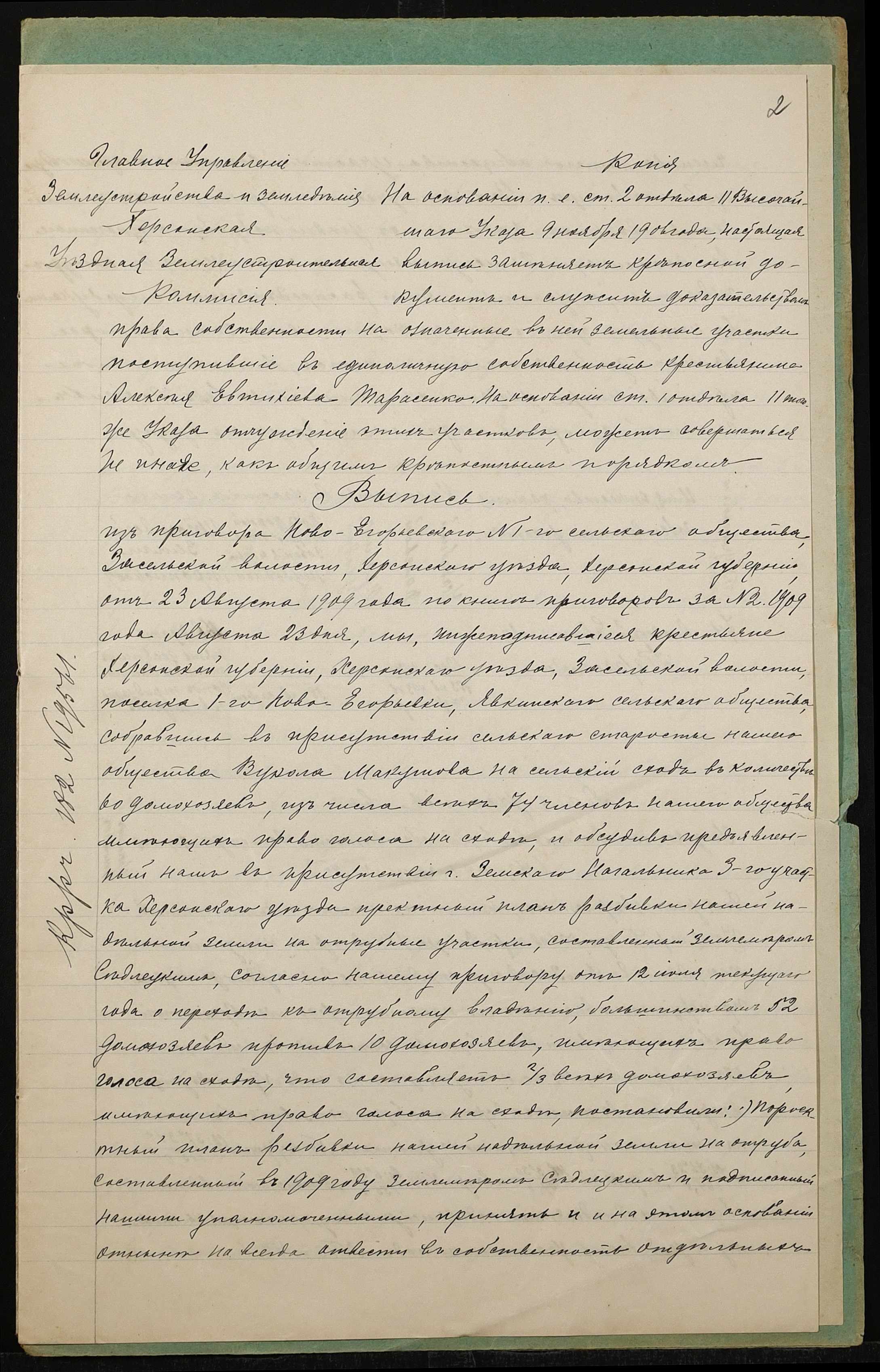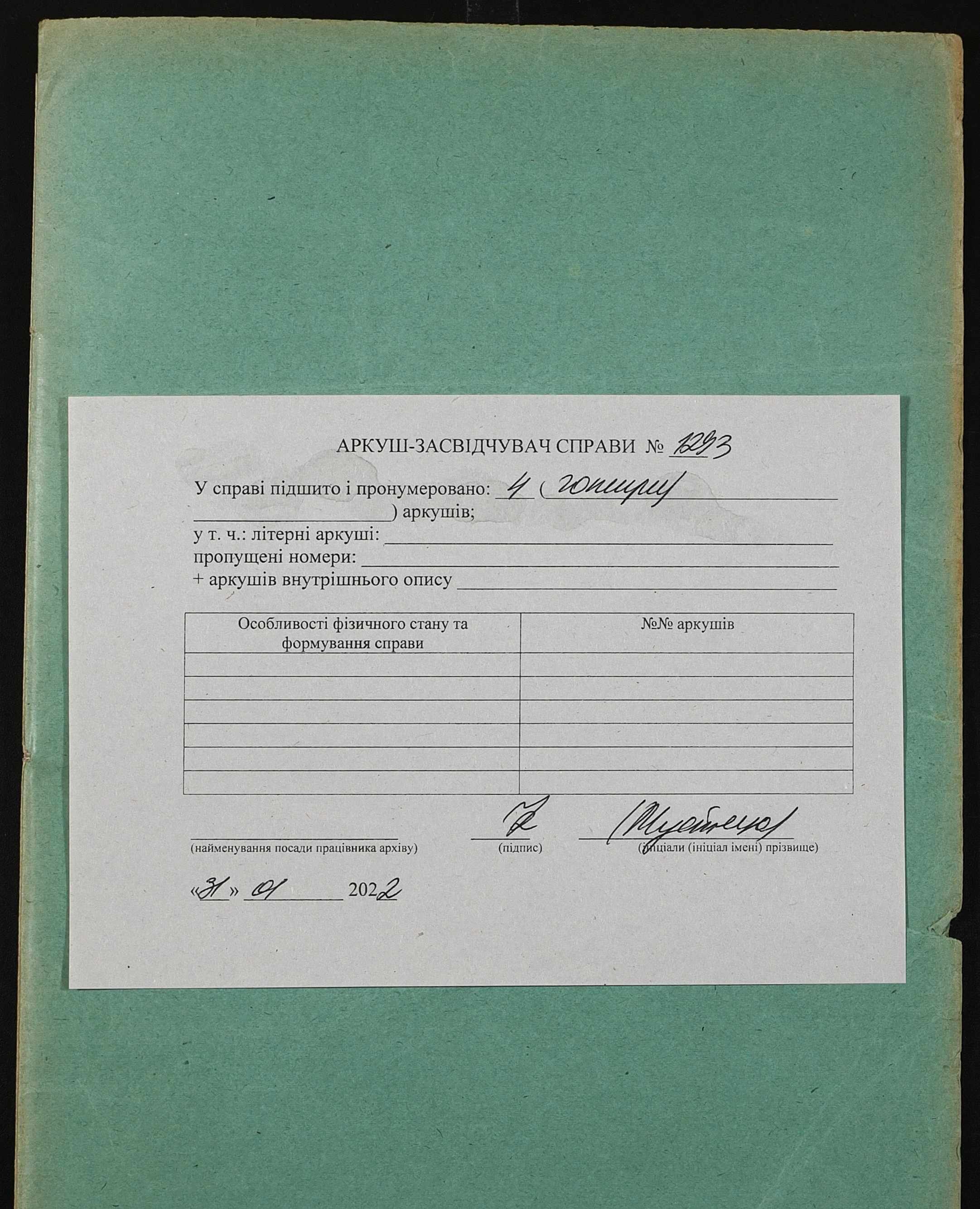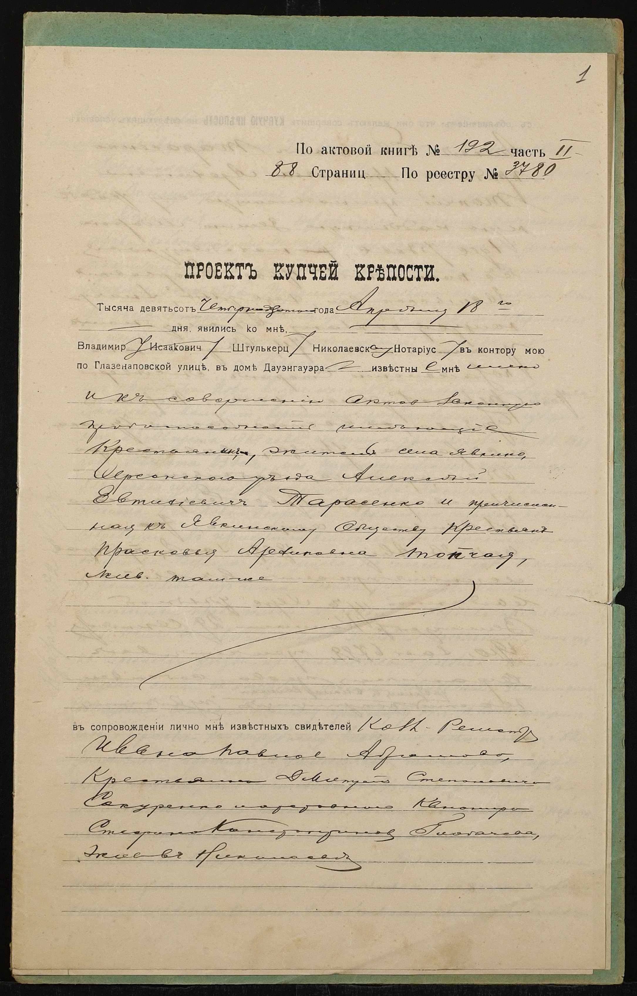• • • • Справа № 1293 “Справа про вчинення купчої про продаж землі селянином Тарасенком Олексієм Євтихійовичем (Тарасенко Алексеем Евтихиевичем) на користь селянки Топчій Парасковії Архипівни (Топчий Прасковьи Архиповны)”