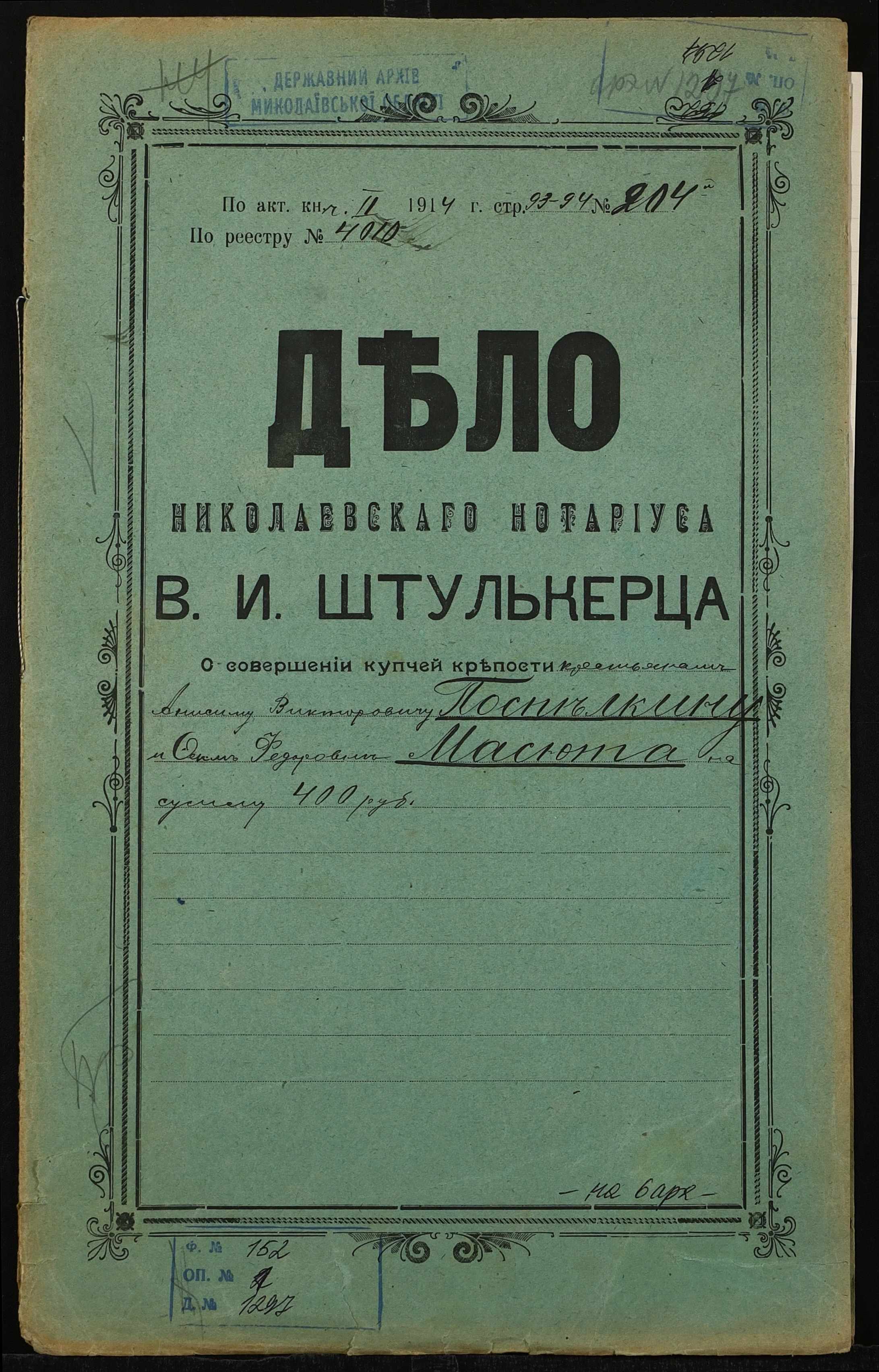 ◦ ◦ Фонд № 152 “Контора миколаївського нотаріуса Херсонського окружного суду Штулькерца Володимира Ісааковича”
