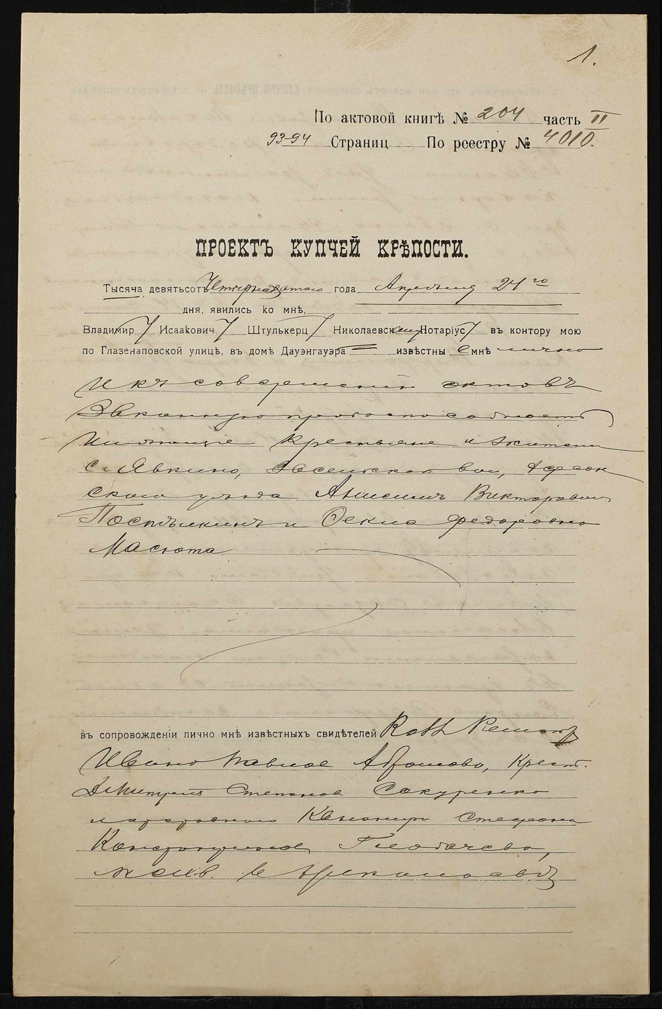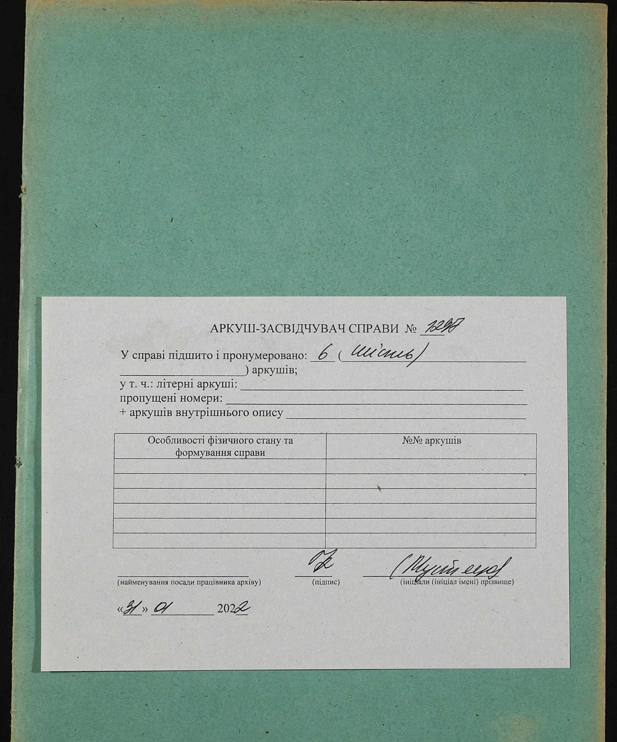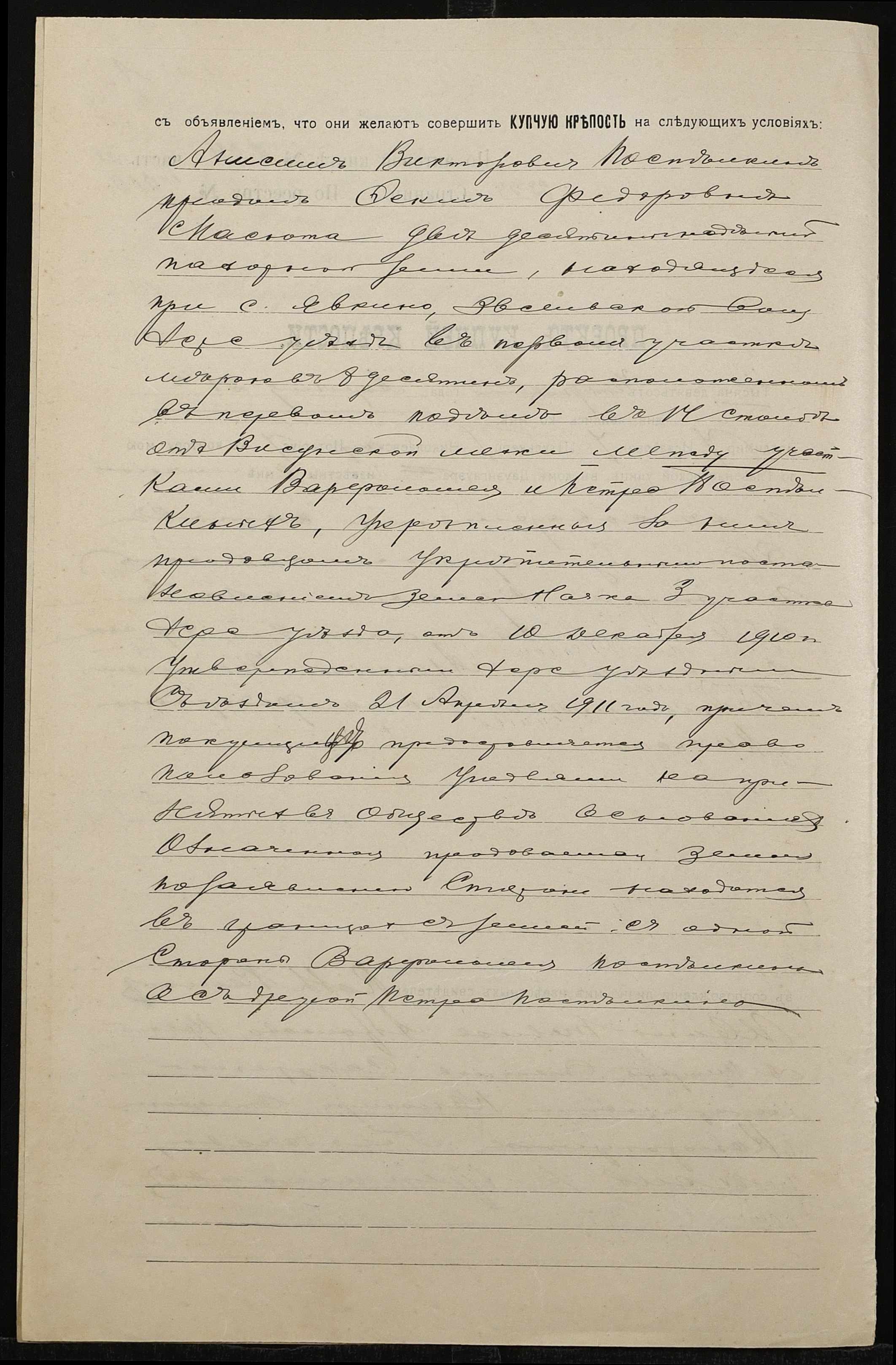 • • • • Справа № 1297 “Справа про вчинення купчої про продаж землі селянином Поспєлкіним Онисимом Вікторовичем (Поспелкиным Анисимом Викторовичем) на користь селянки Масюти Теклі Федорівни (Масюты Феклы Федоровны)”