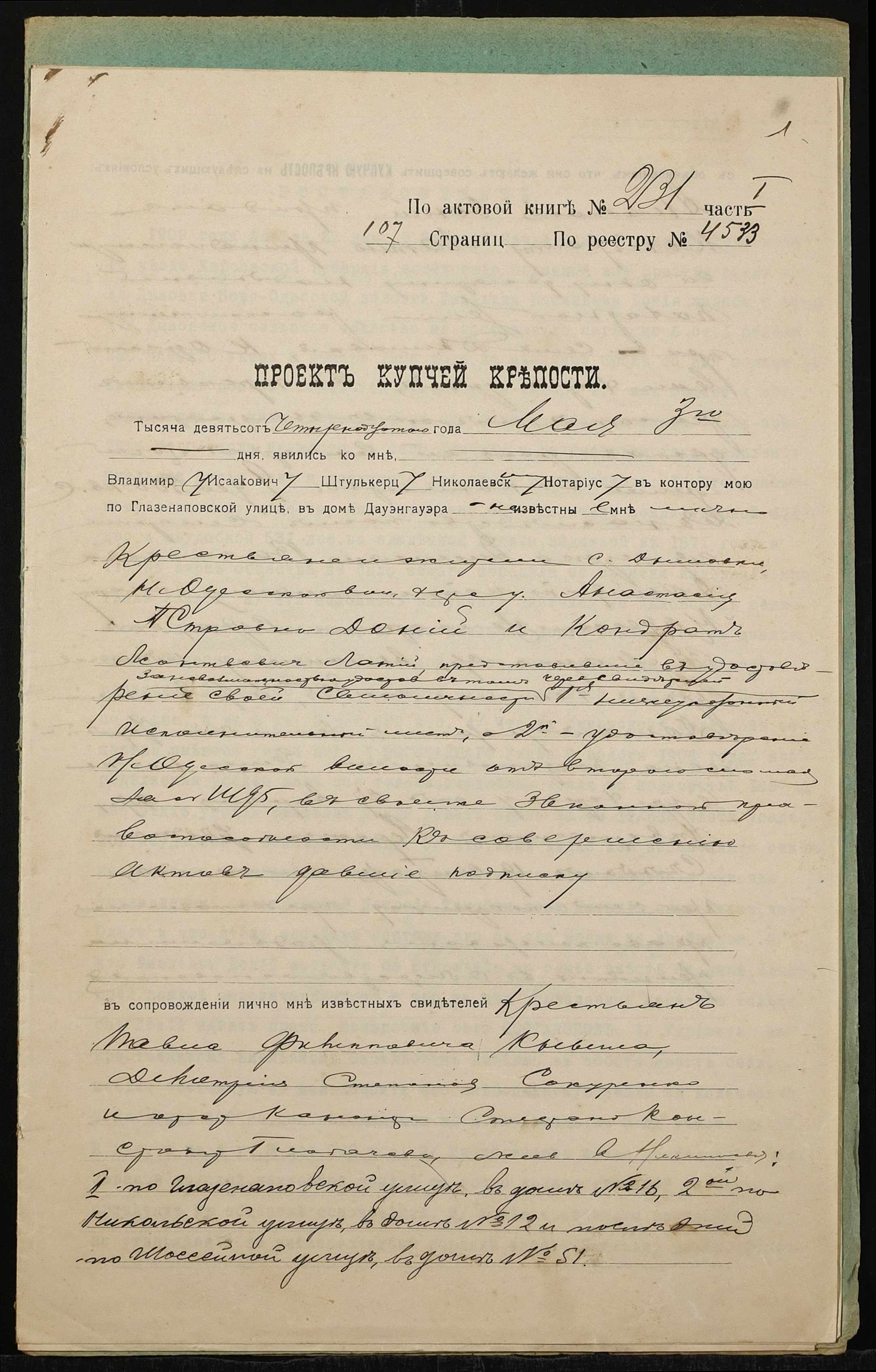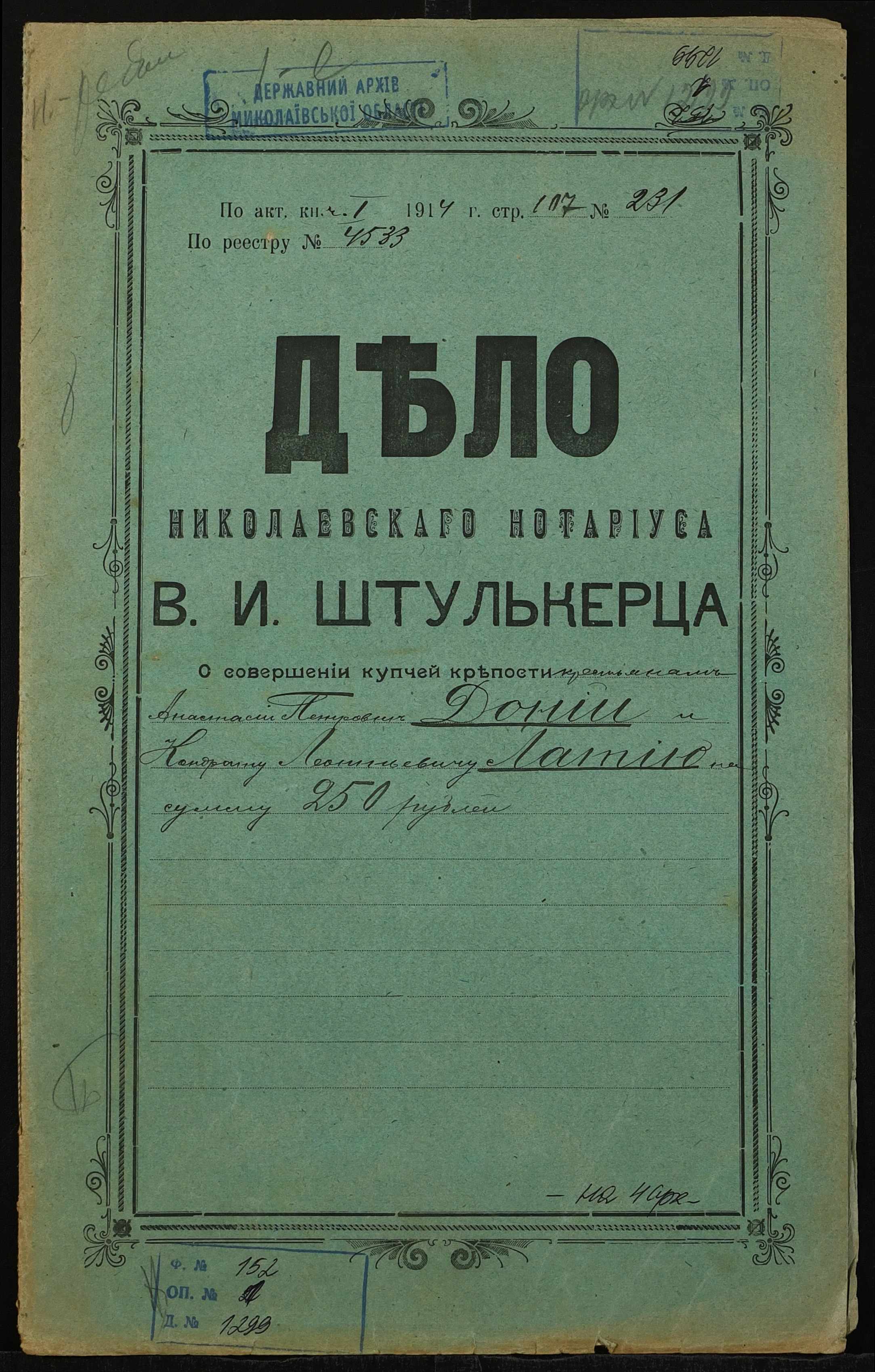 ◦ ◦ Фонд № 152 “Контора миколаївського нотаріуса Херсонського окружного суду Штулькерца Володимира Ісааковича”