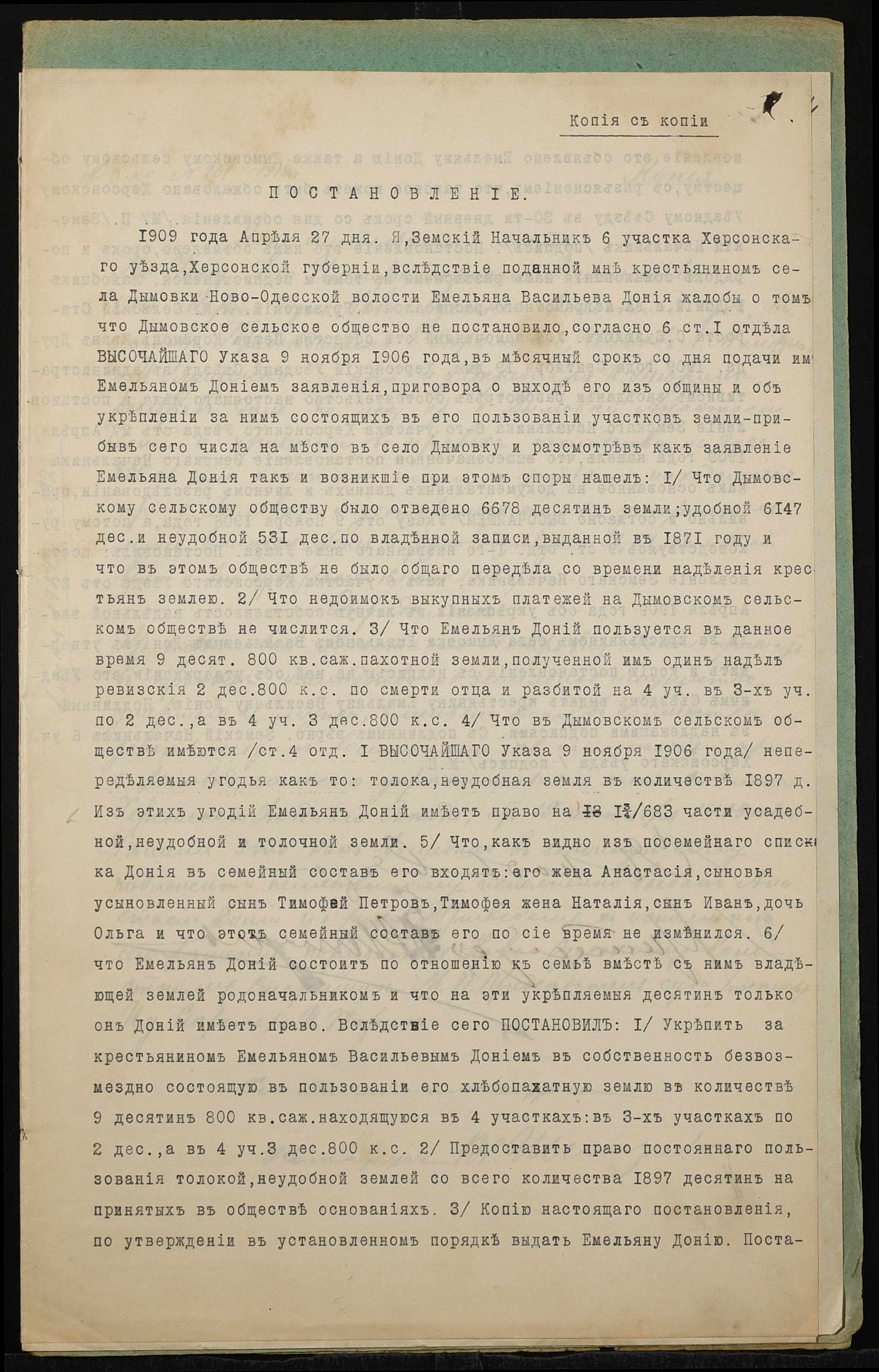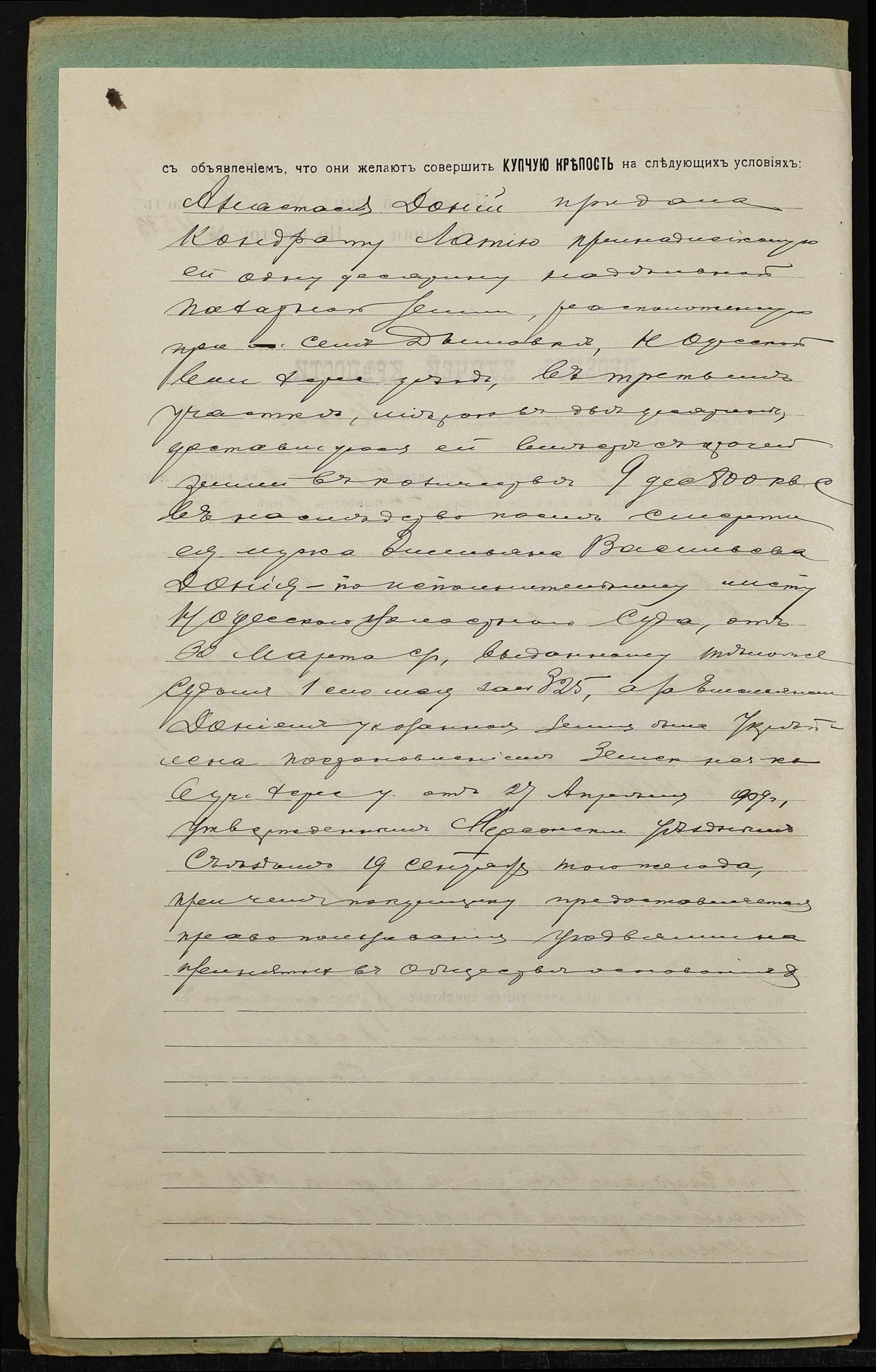 • • • • Справа № 1299 “Справа про вчинення купчої про продаж землі селянкою Доній Анастасією Петрівною (Доний Анастасией Петровной) на користь селянина Латія Кіндрата Леонтійовича (Латия Кондрата Леонтьевича)”
