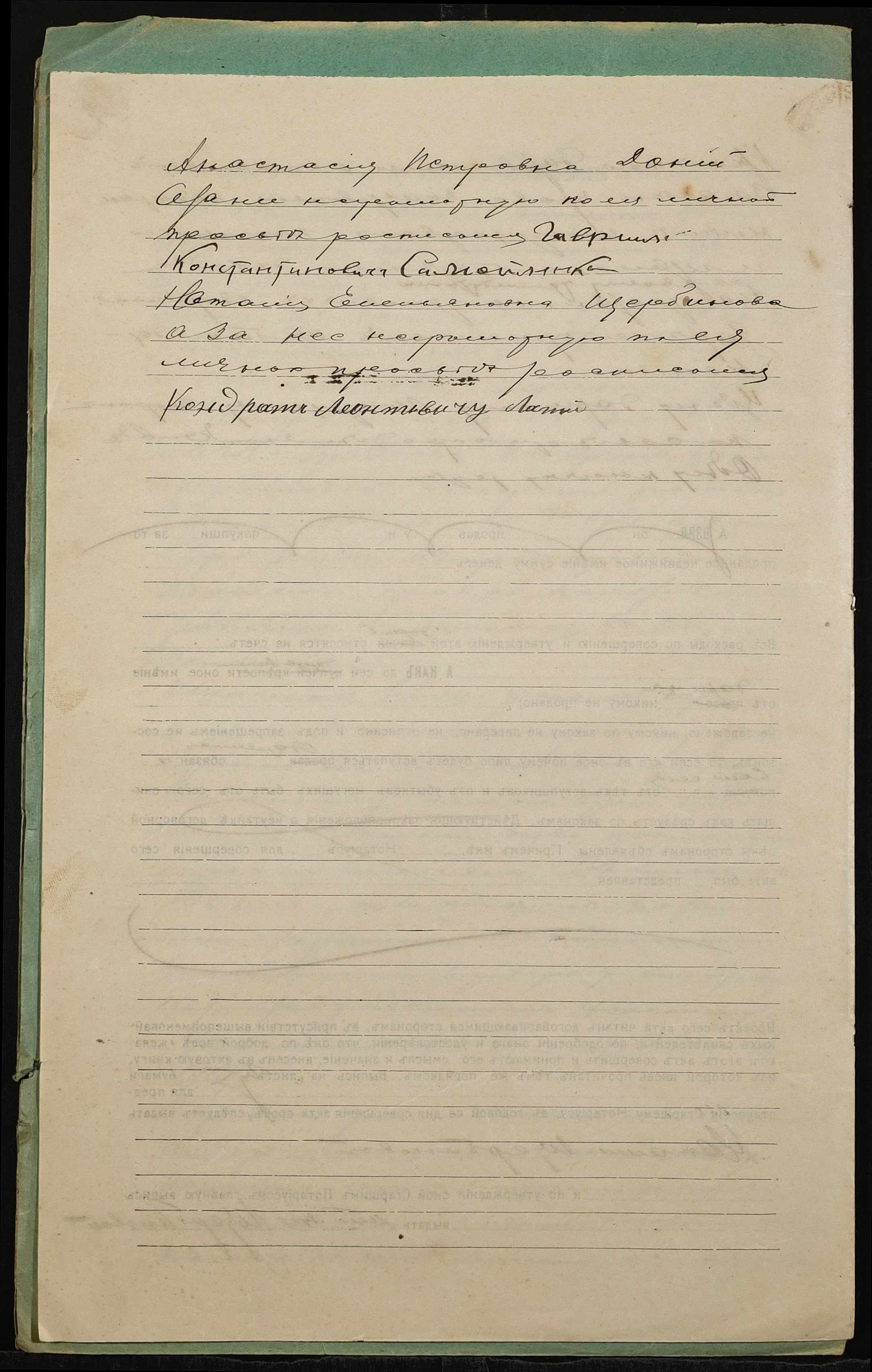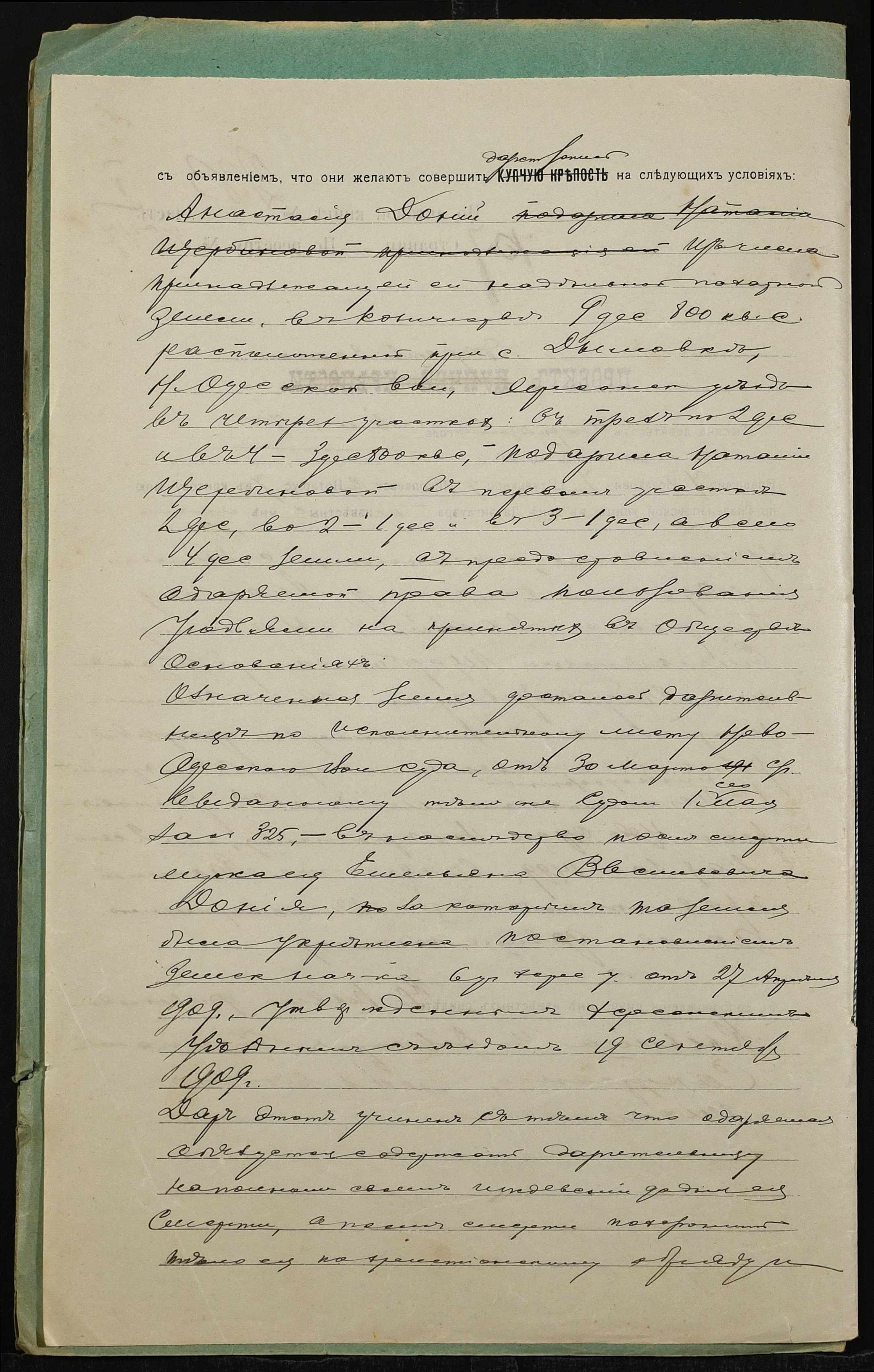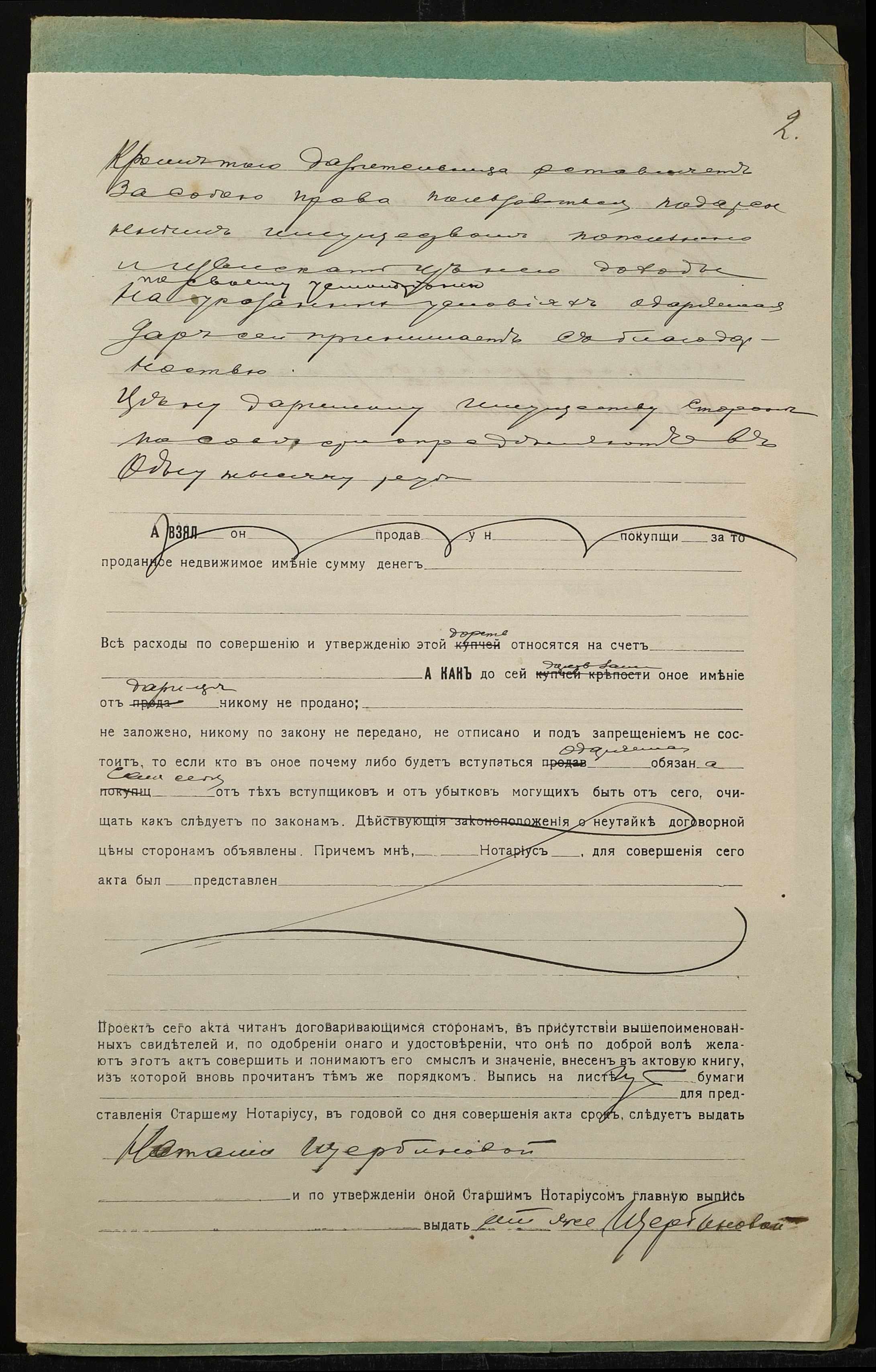 • • • • Справа № 1301 “Справа про вчинення дарчої на землю, передану селянкою Доній Анастасією Петрівною (Доний Анастасией Петровной) у власність селянки Щербинової Наталії Омелянівни (Щербиновой Наталии Емельяновны)”