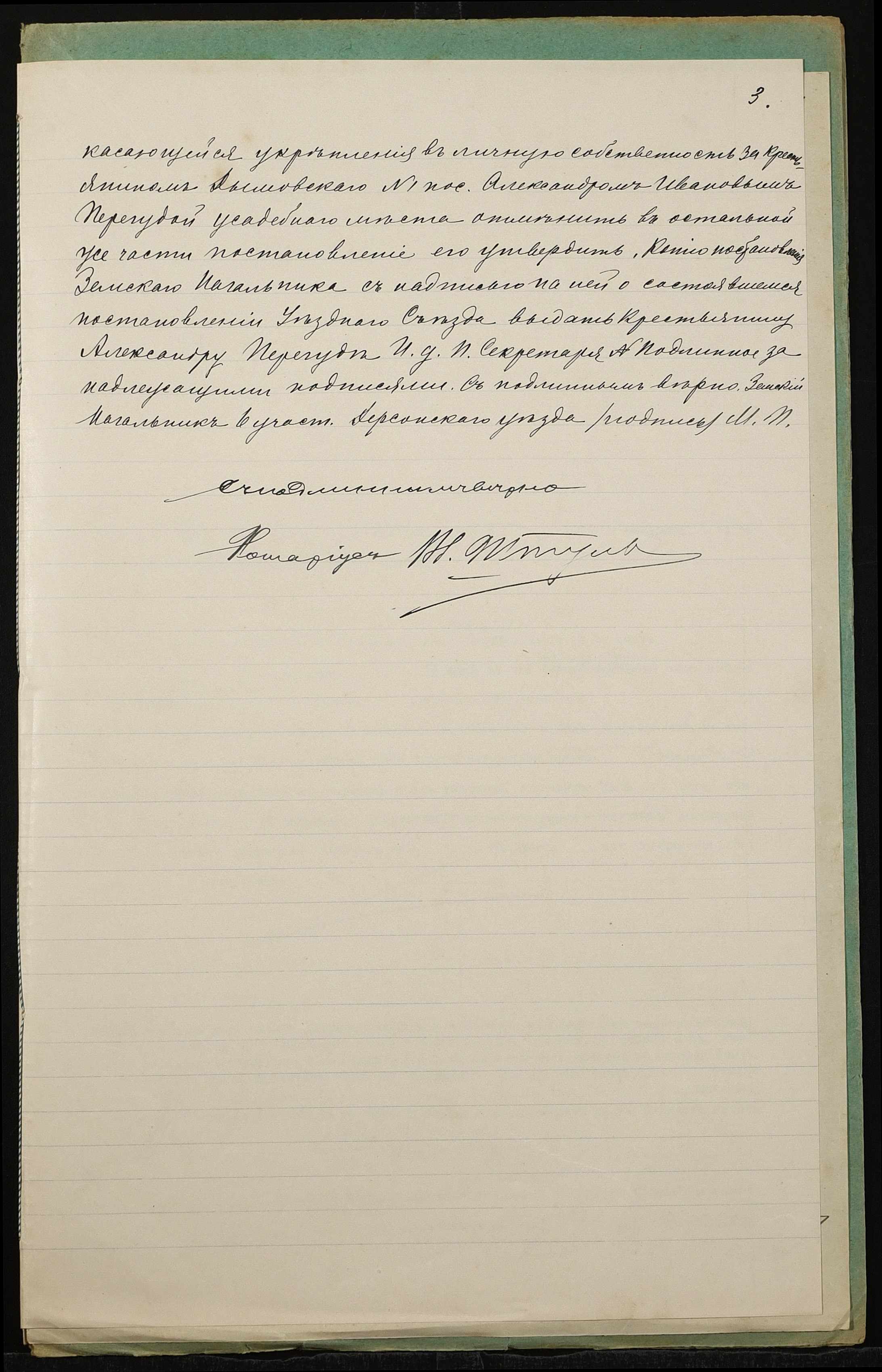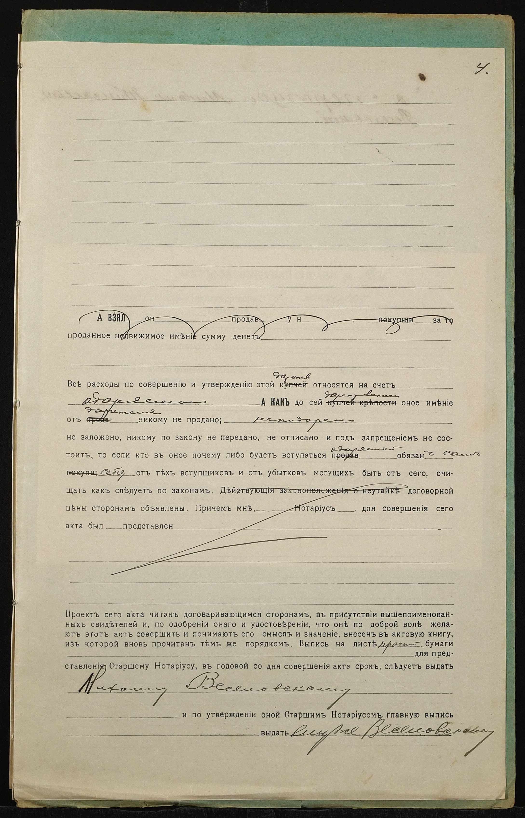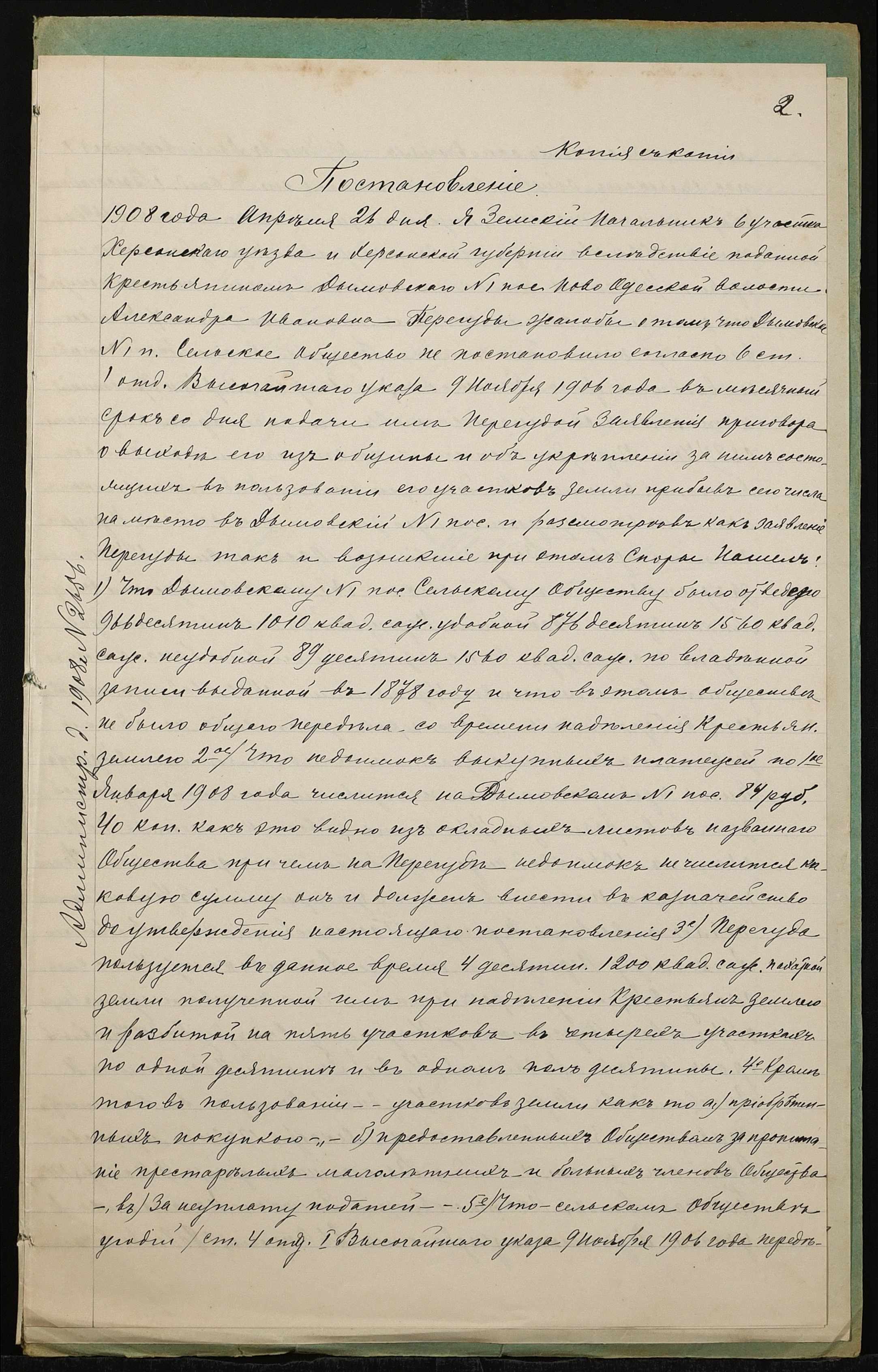 • • • • Справа № 1308 “Справа про вчинення дарчого запису на землю, передану селянином Перегудою Олександром Івановичем (Перегудой Александром Ивановичем) у власність селянина Веселовського Михайла Тимофійовича (Веселовского Михаила Тимофеевича)”