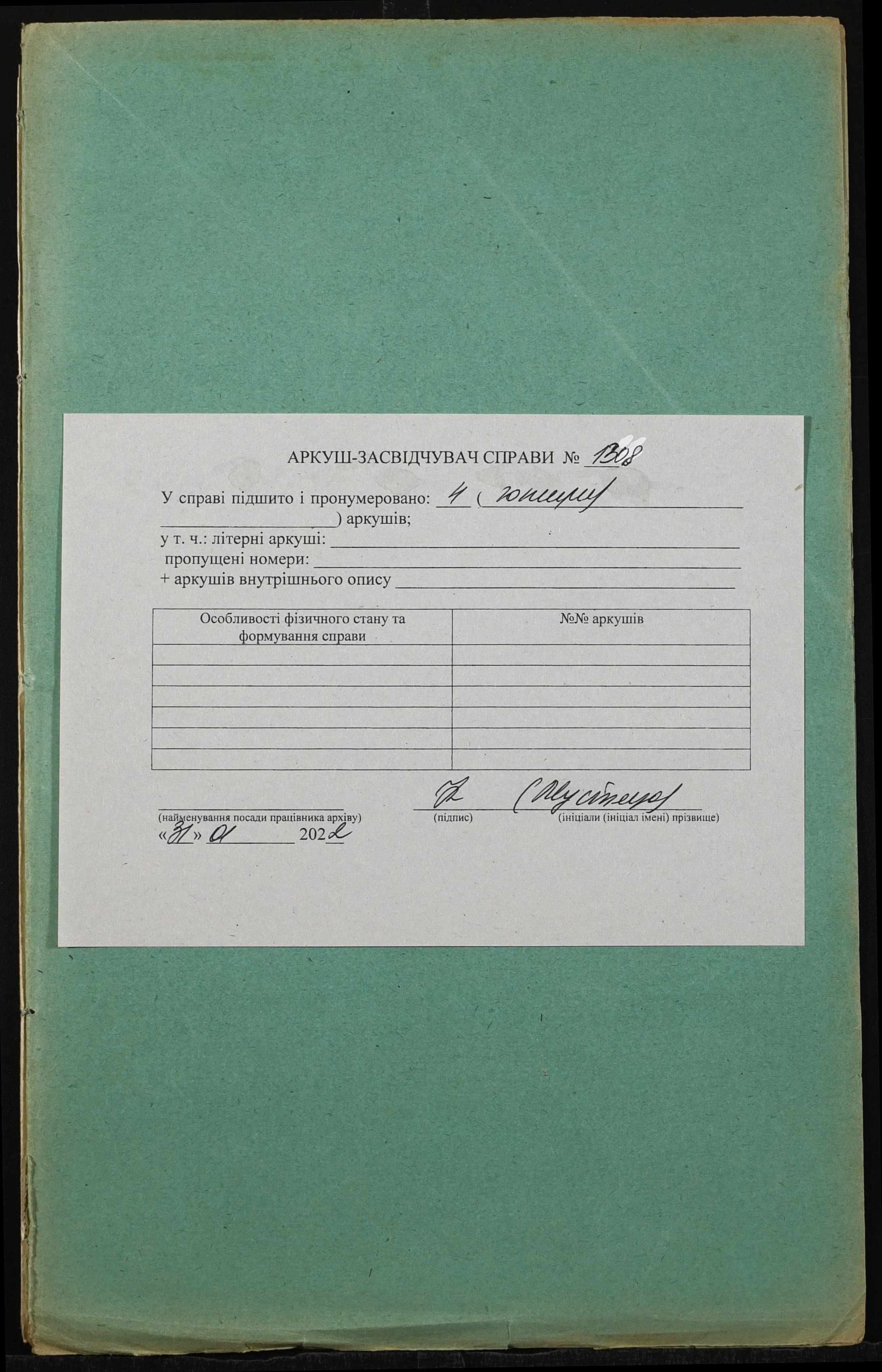 Фонд 152 / Опис 1 / Справа 1308