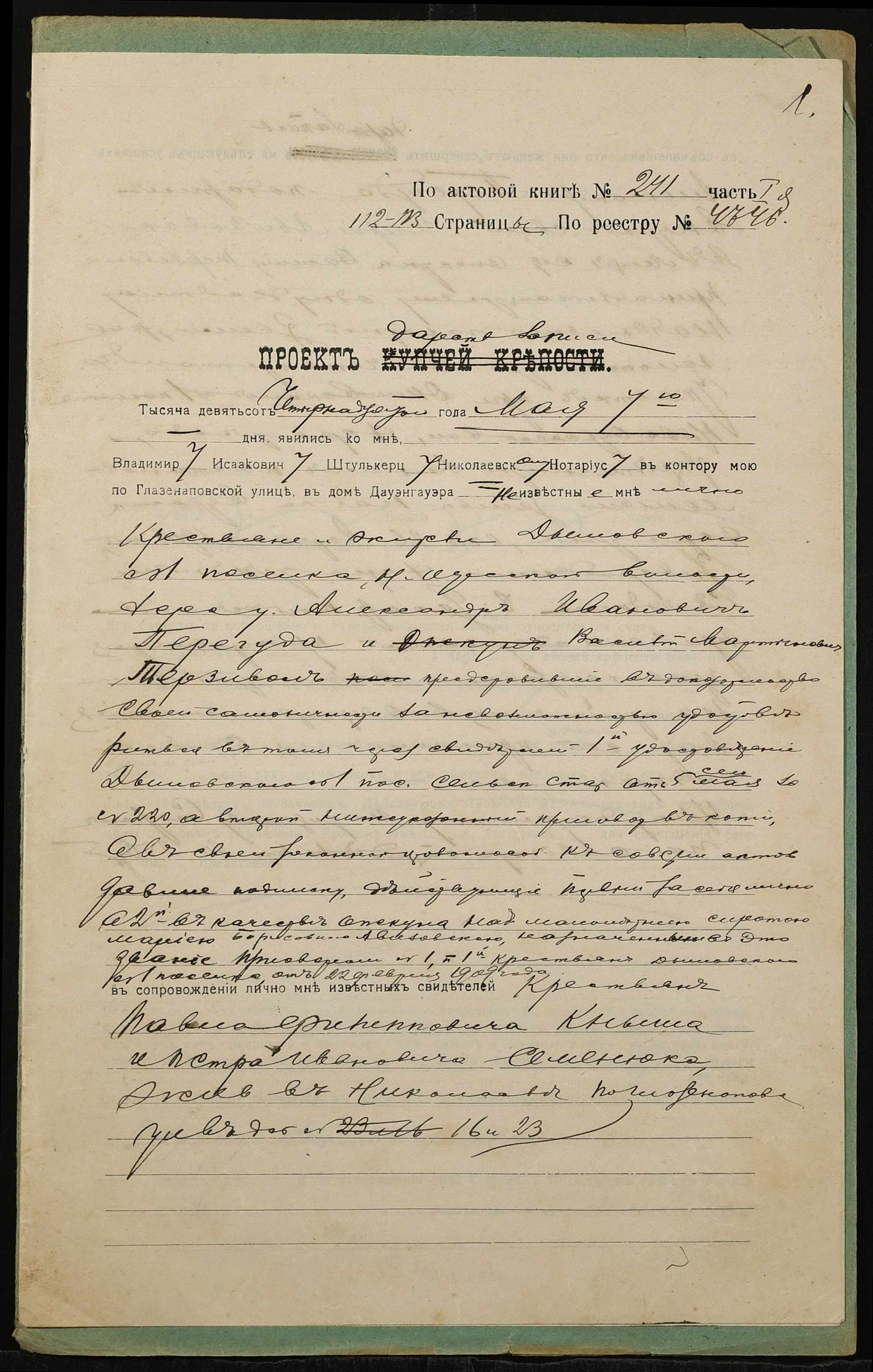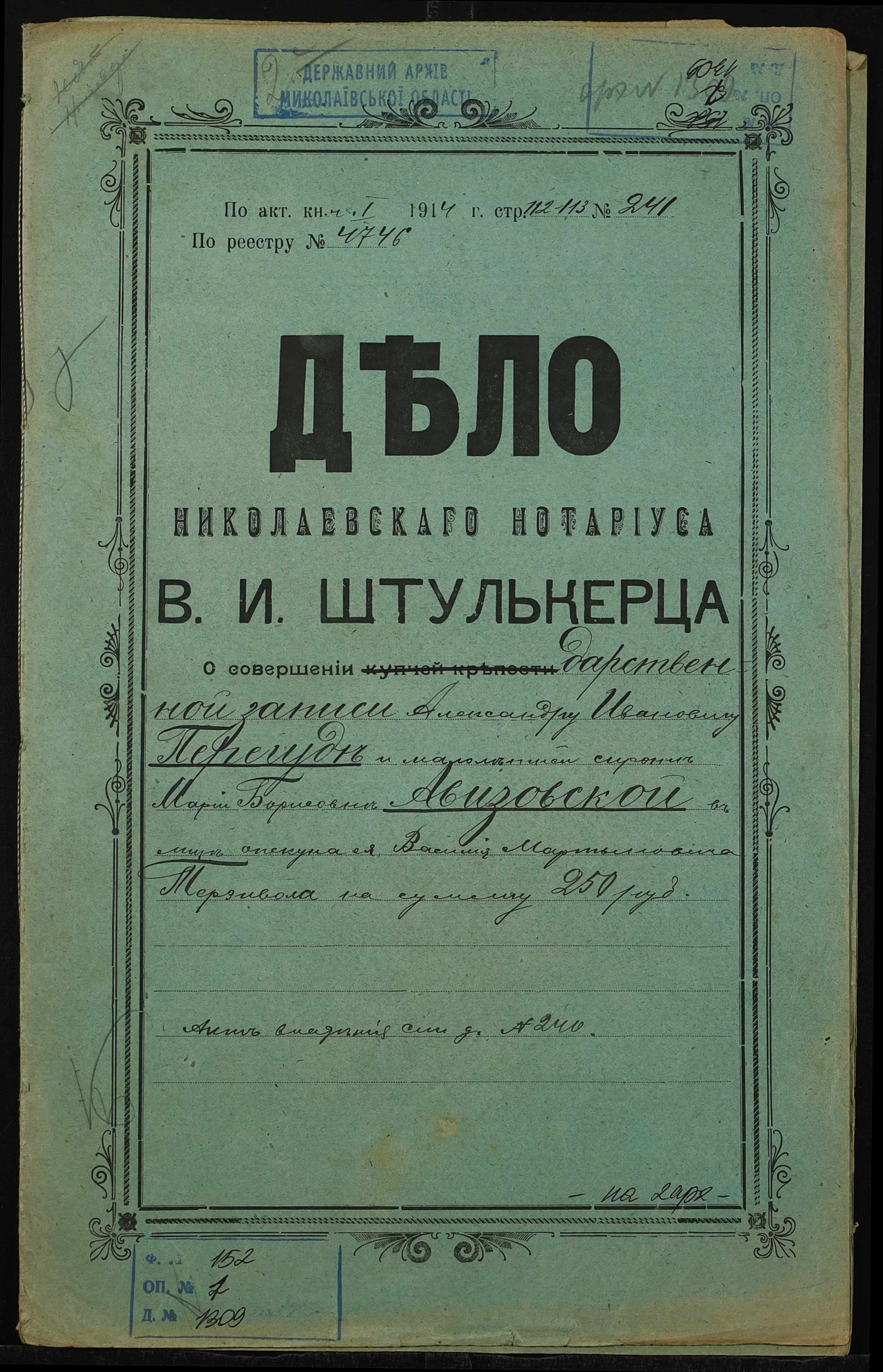 ◦ ◦ Фонд № 152 “Контора миколаївського нотаріуса Херсонського окружного суду Штулькерца Володимира Ісааковича”