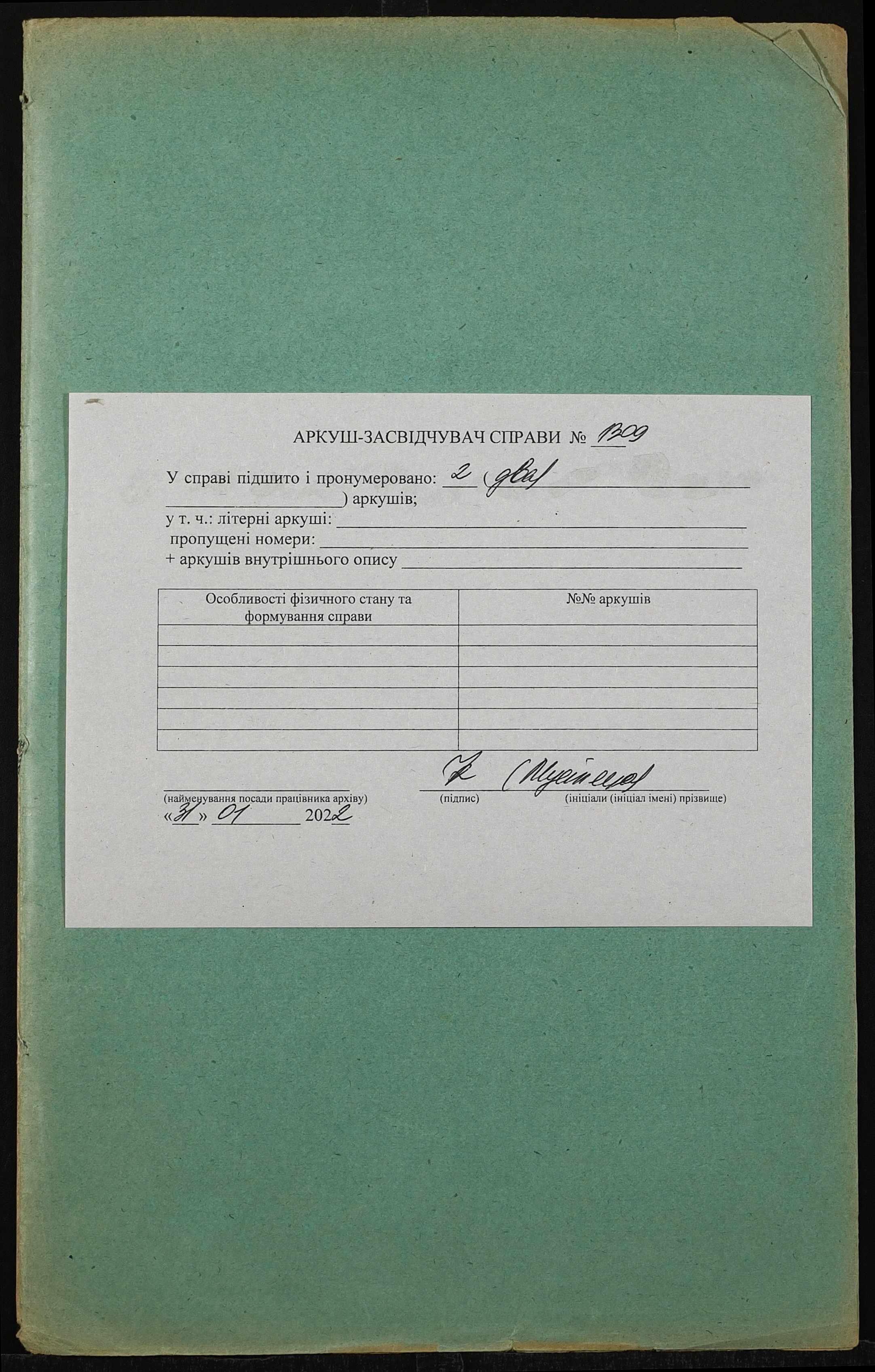 Фонд 152 / Опис 1 / Справа 1309