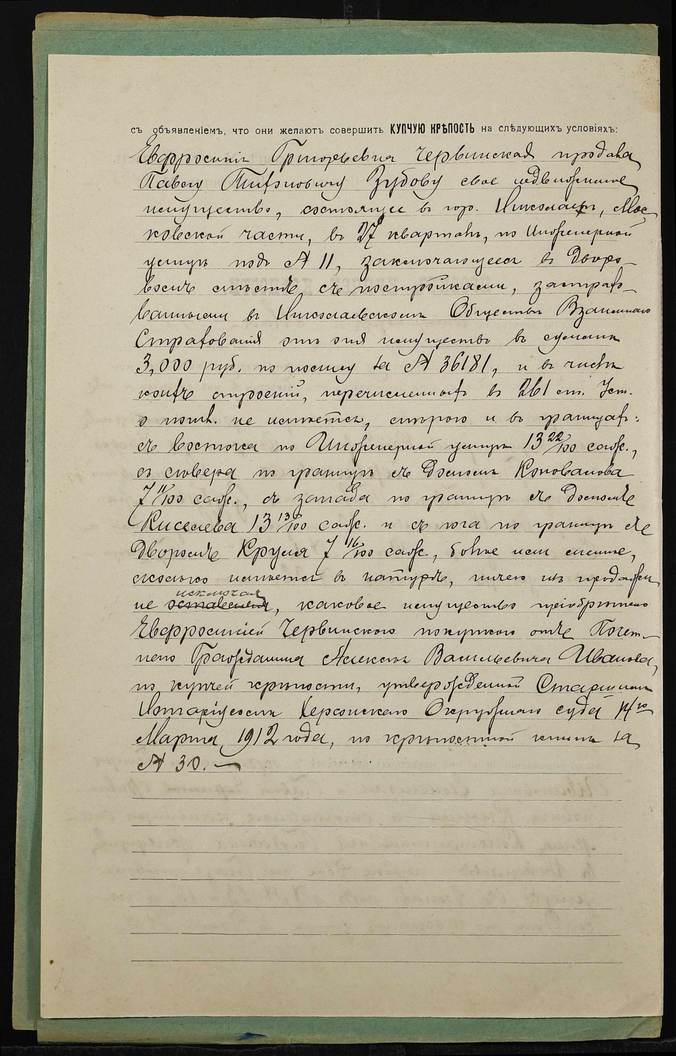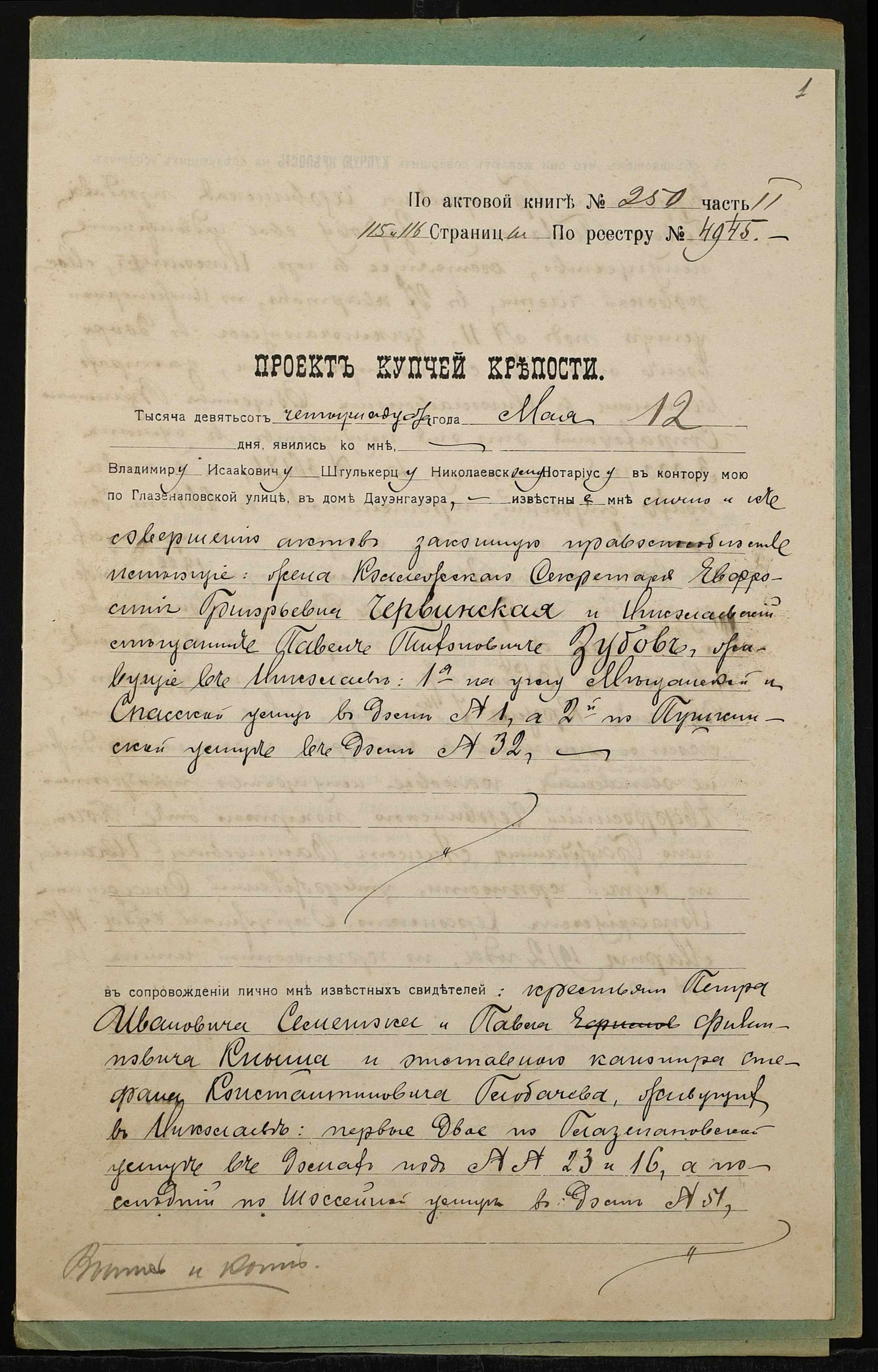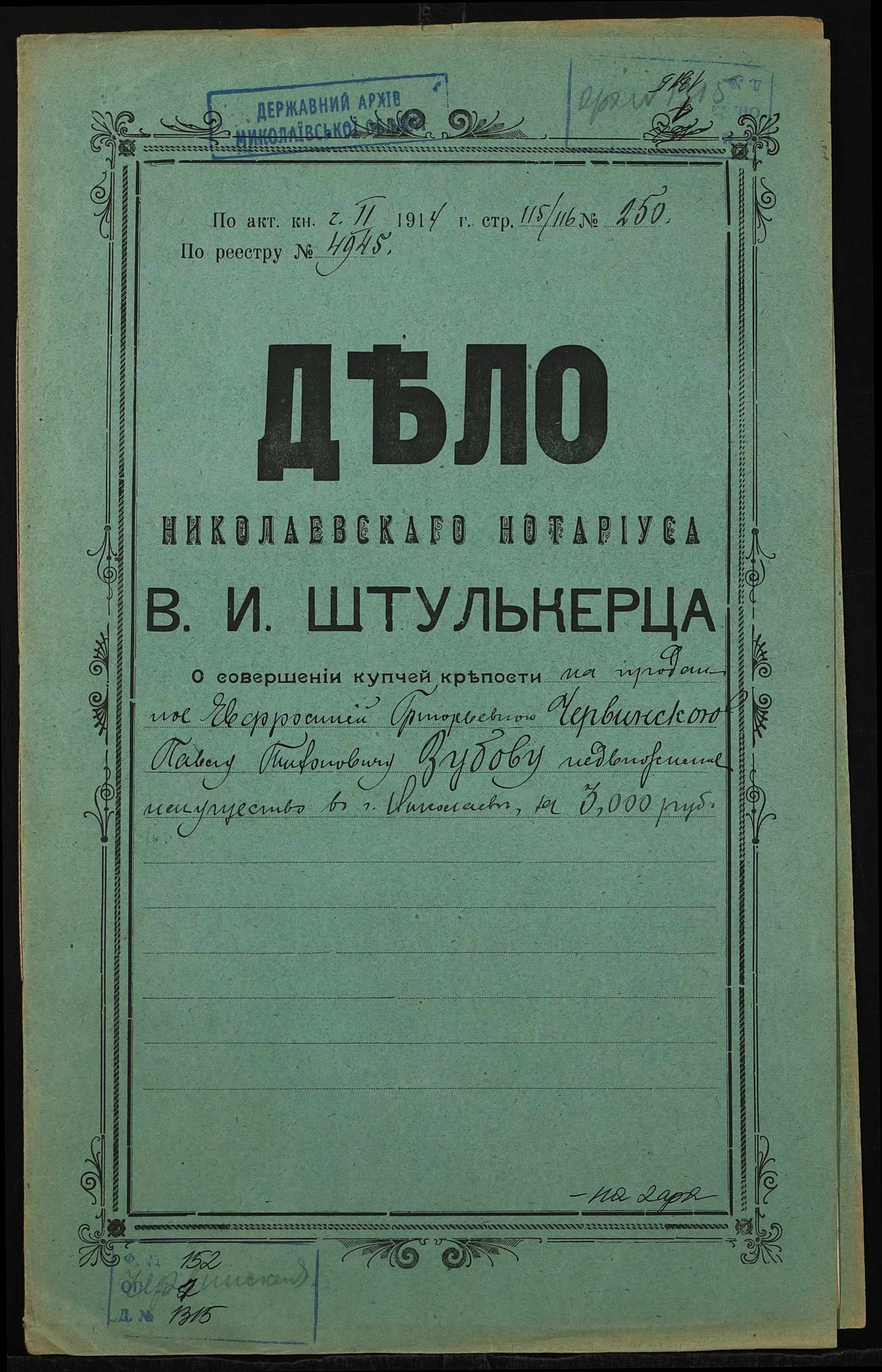 • • • • Справа № 1315 “Справа про вчинення купчої про продаж нерухомого майна у м. Миколаїв Червинською Єфросинією Григорівною (Червинской Ефросинией Григорьевной) на користь Зубова Павла Тихоновича (Зубова Павла Тихоновича)”