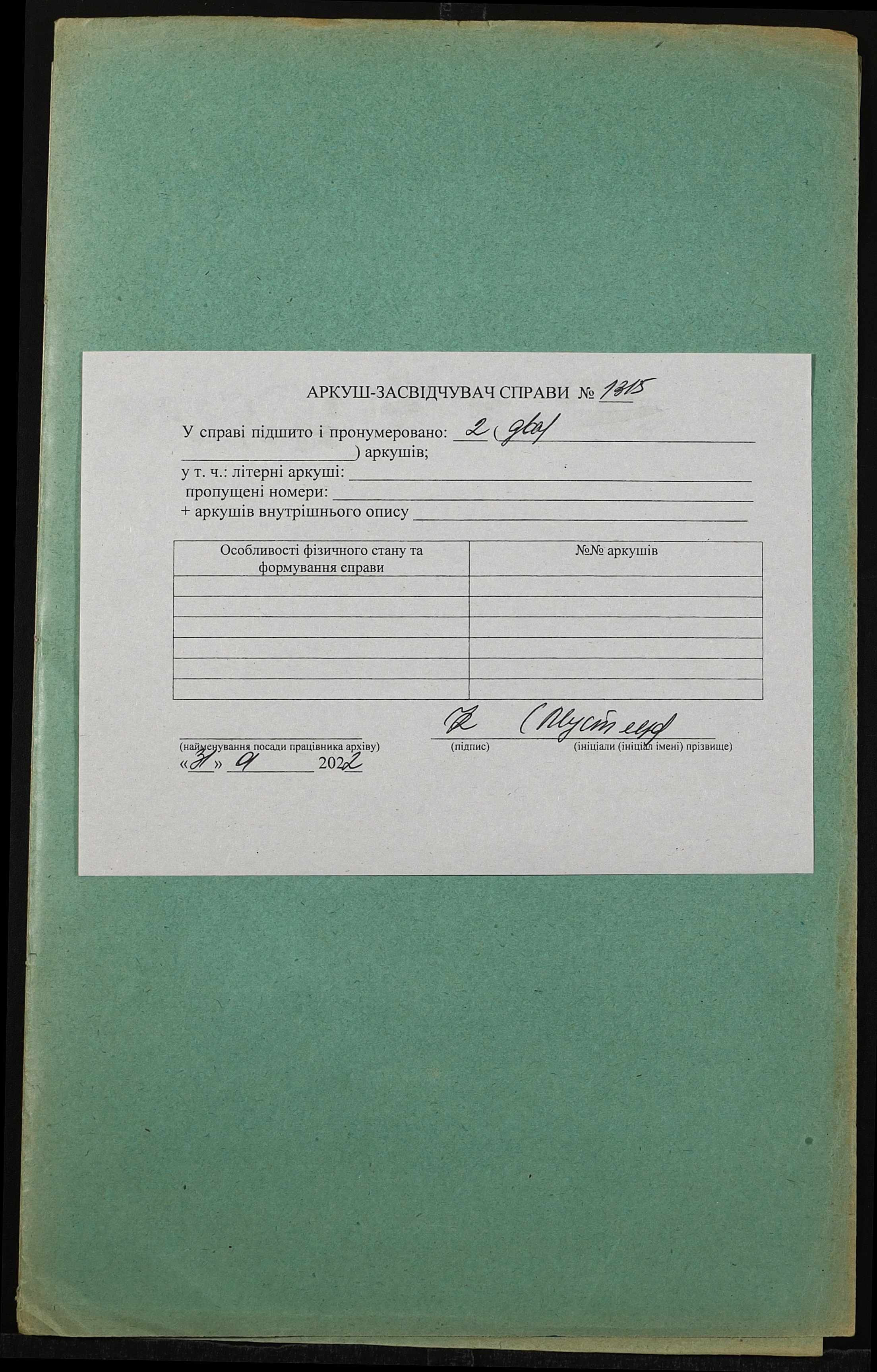 Фонд 152 / Опис 1 / Справа 1315