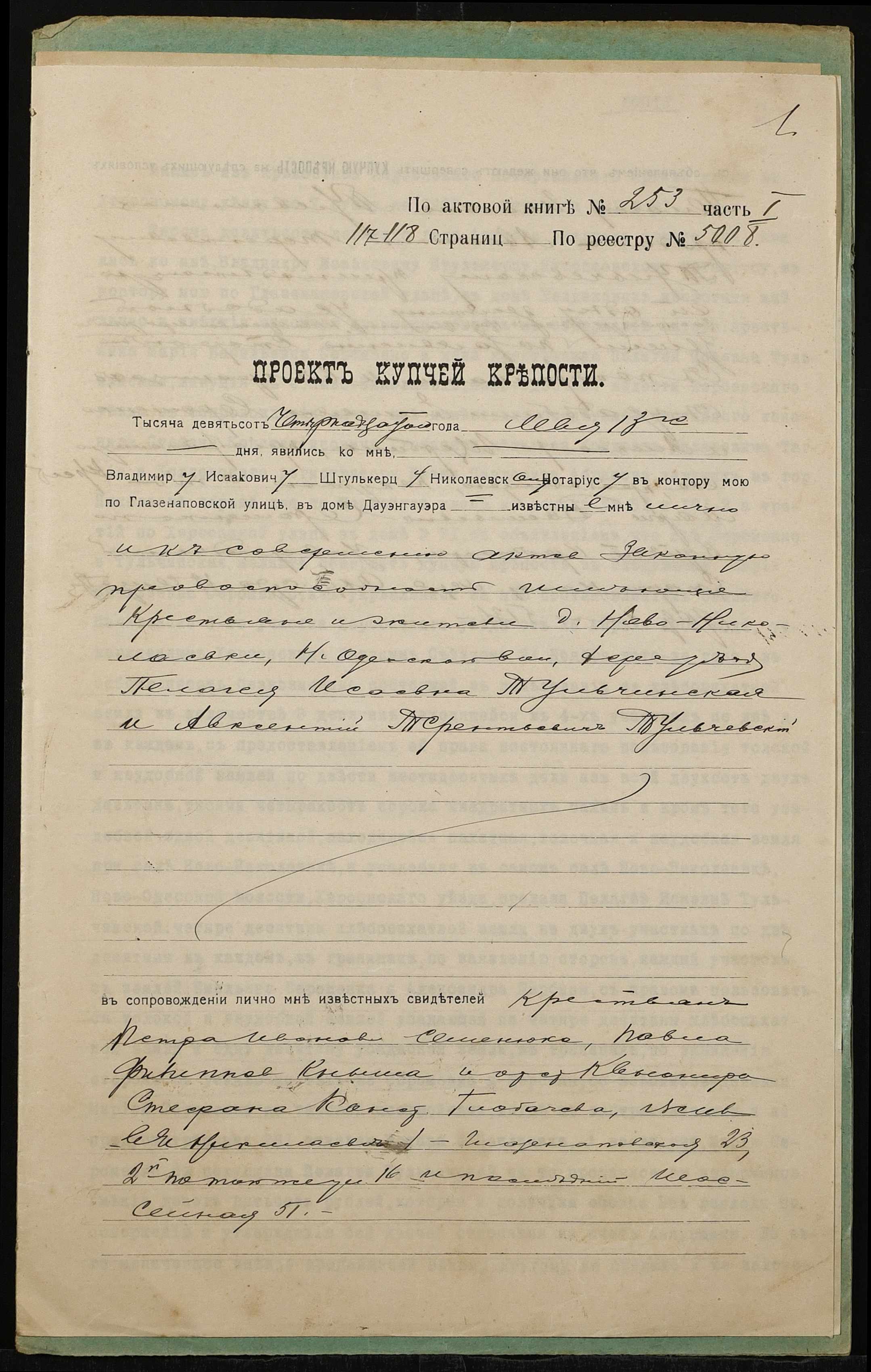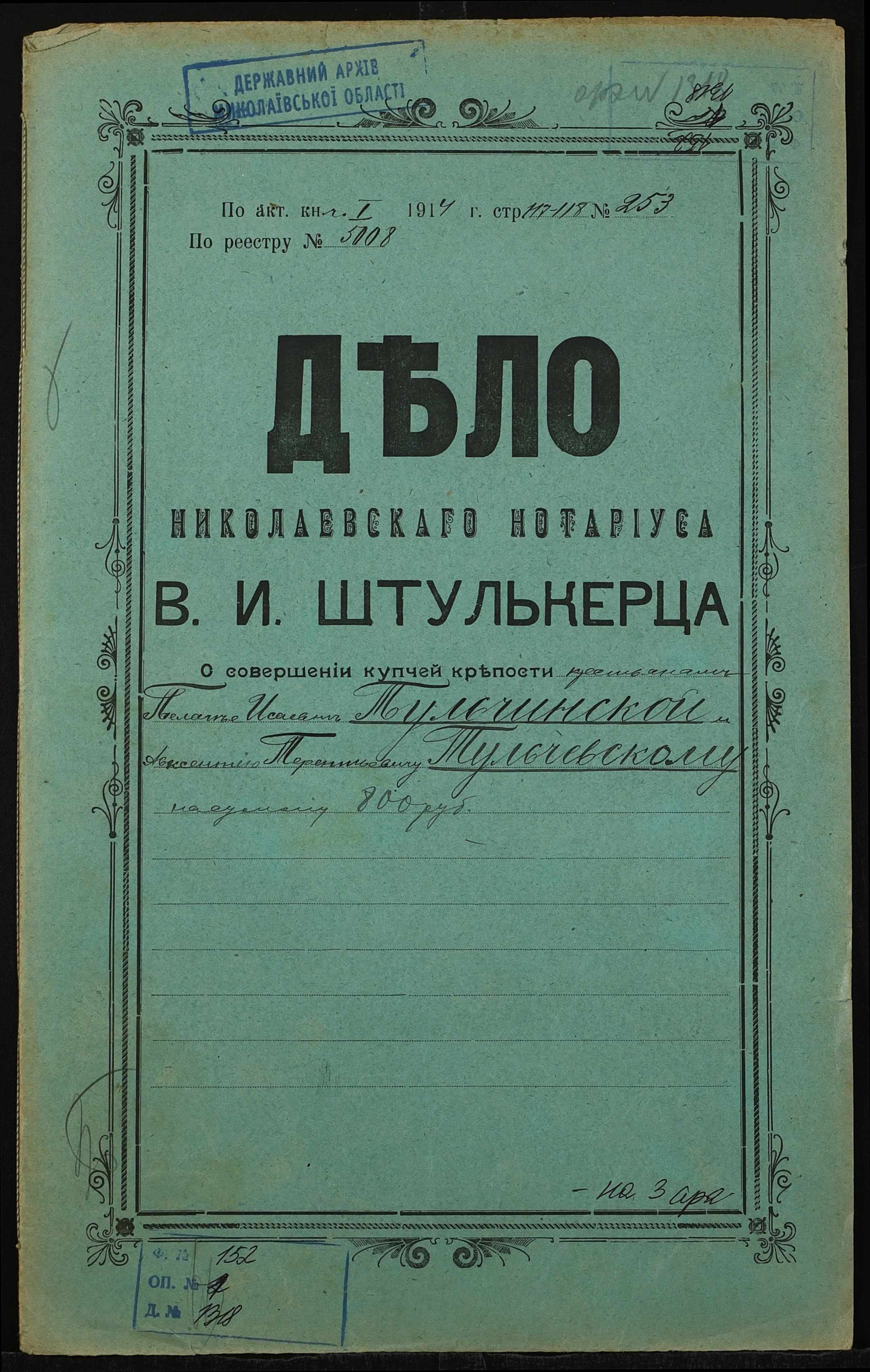 ◦ ◦ Фонд № 152 “Контора миколаївського нотаріуса Херсонського окружного суду Штулькерца Володимира Ісааковича”