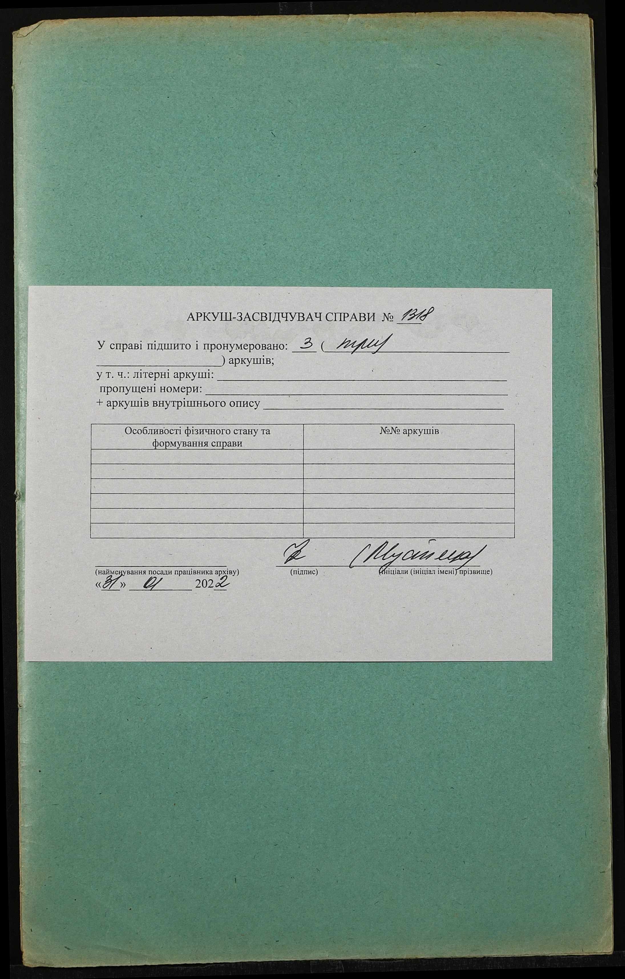 Фонд 152 / Опис 1 / Справа 1318