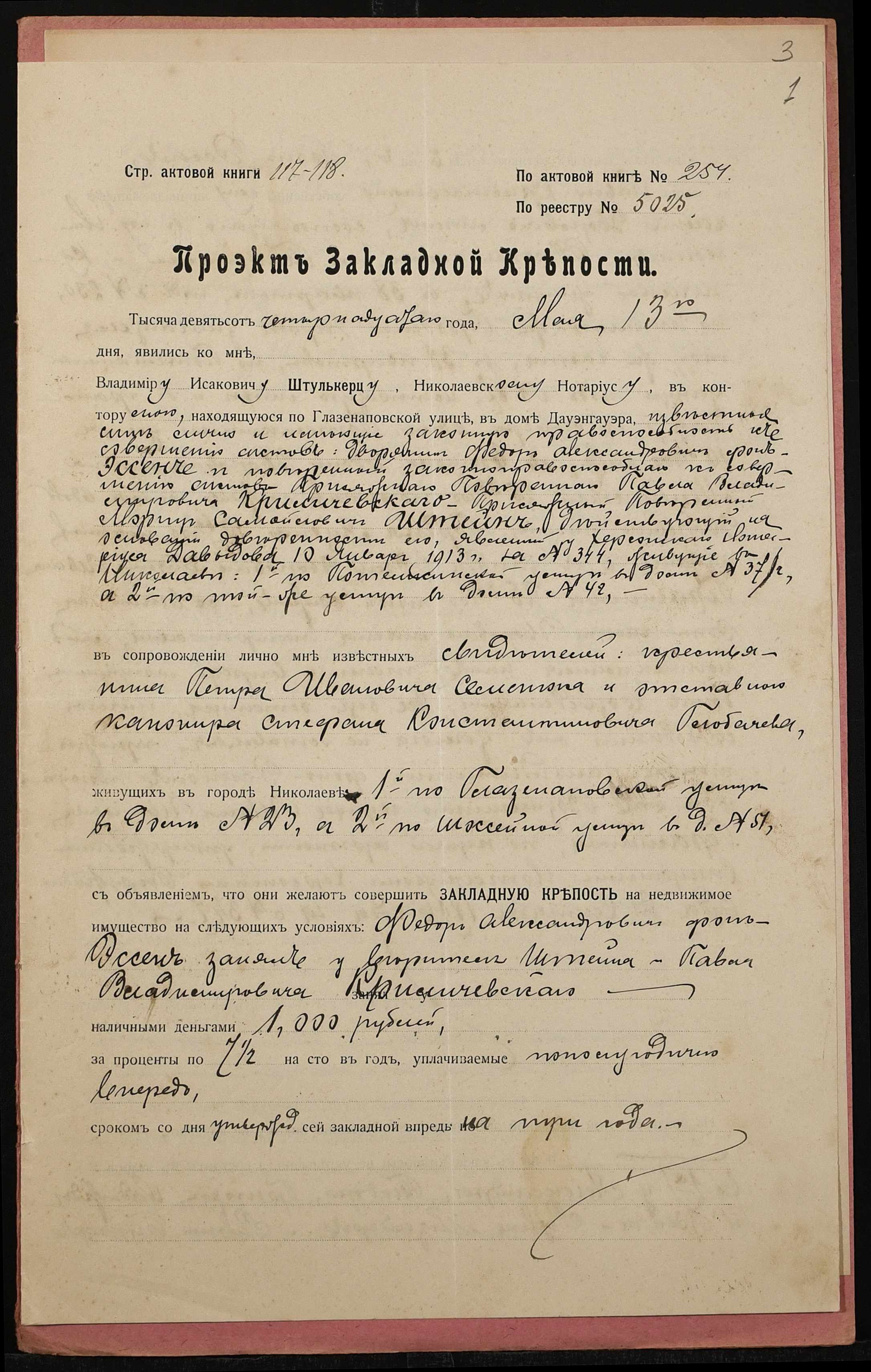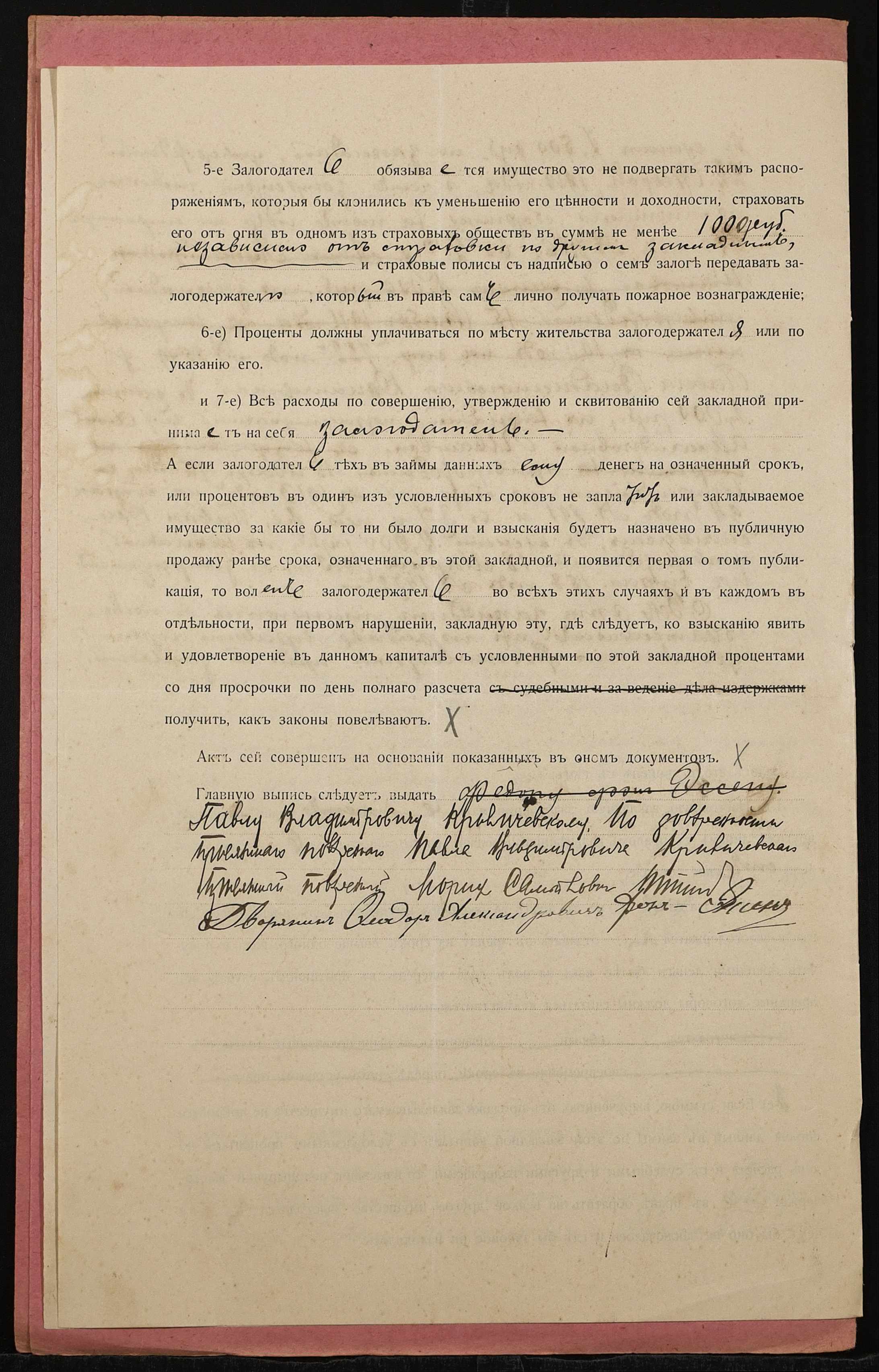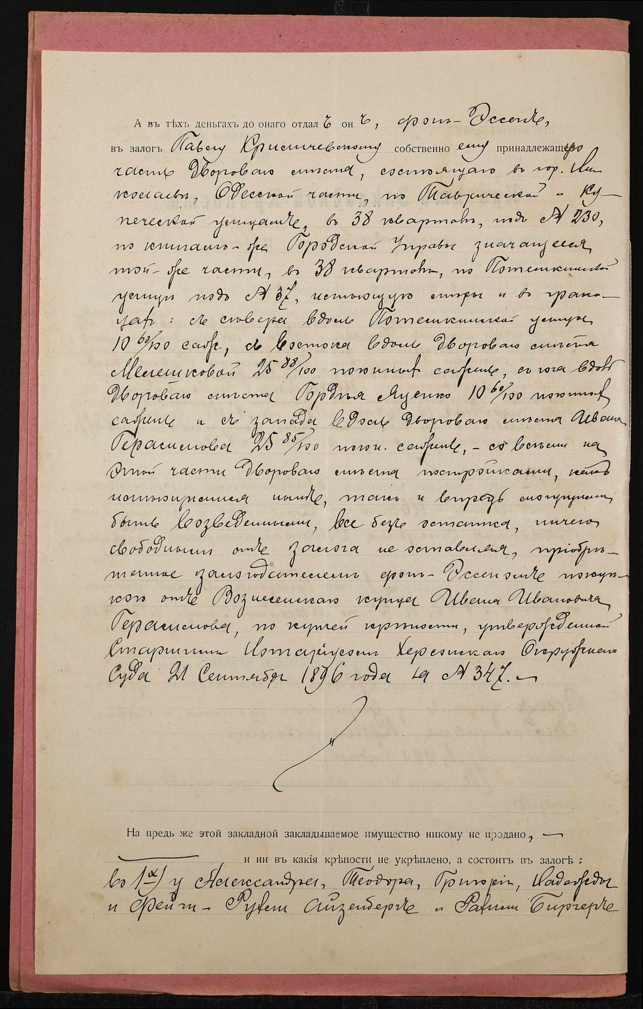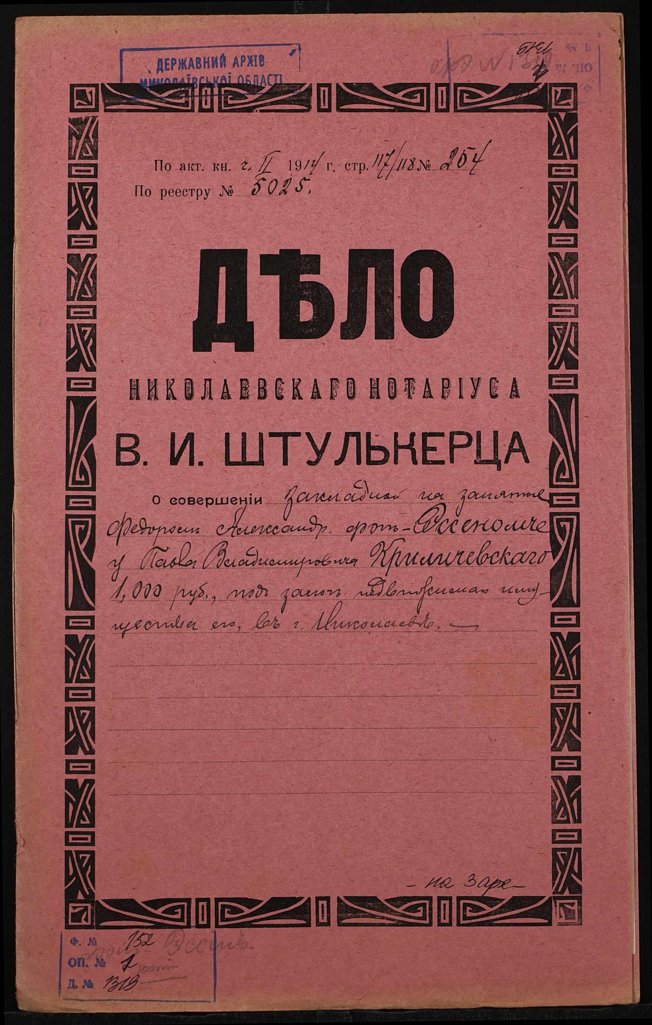 • • • • Справа № 1319 “Справа про вчинення заставної на нерухоме майно у м. Миколаїв, закладене Фон-Ессенче Федором Олександровичем (Фон-Эссенче Федором Александровичем) – Криличевському Павлу Володимировичу (Криличевскому Павлу Владимировичу)”