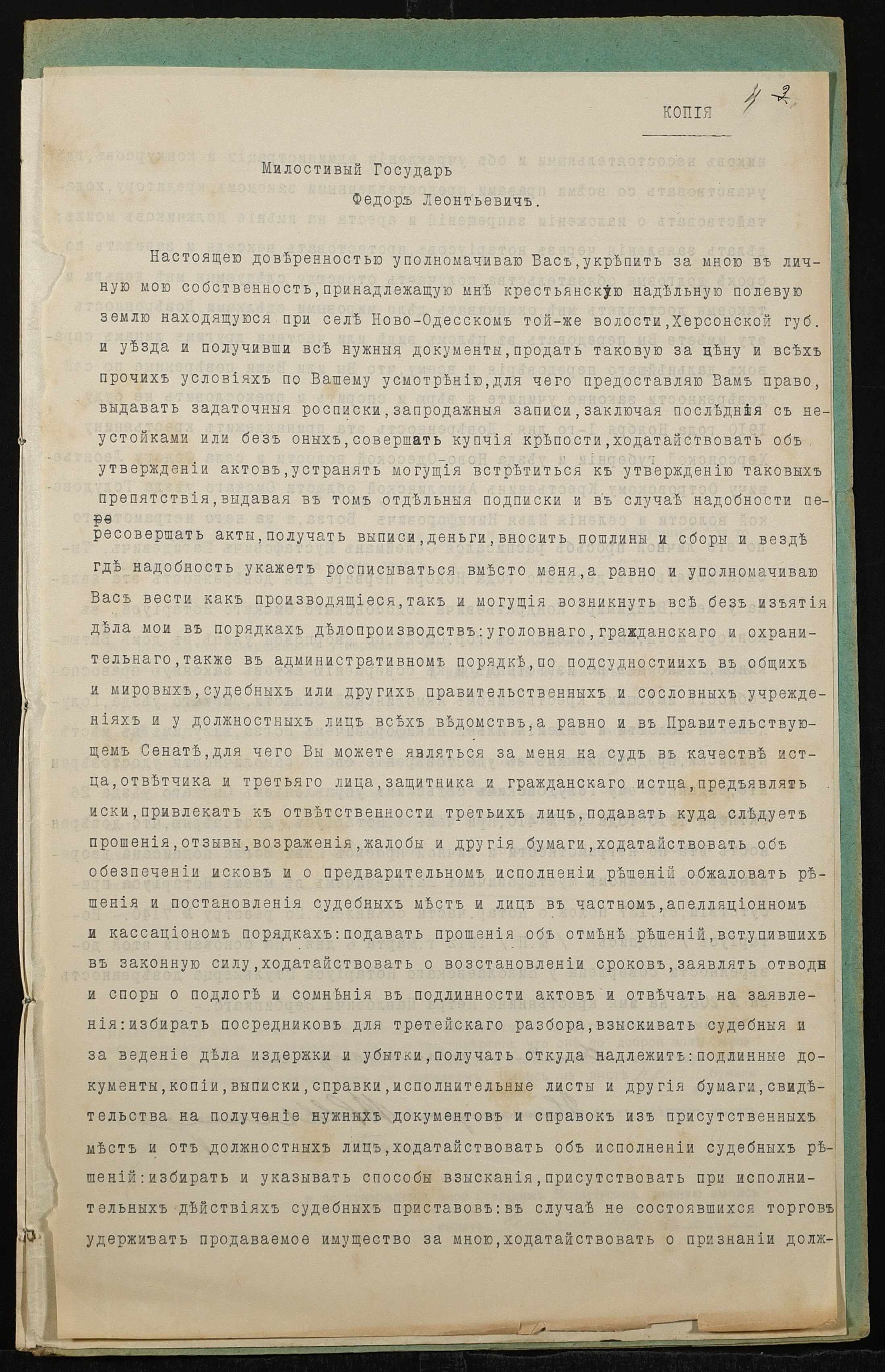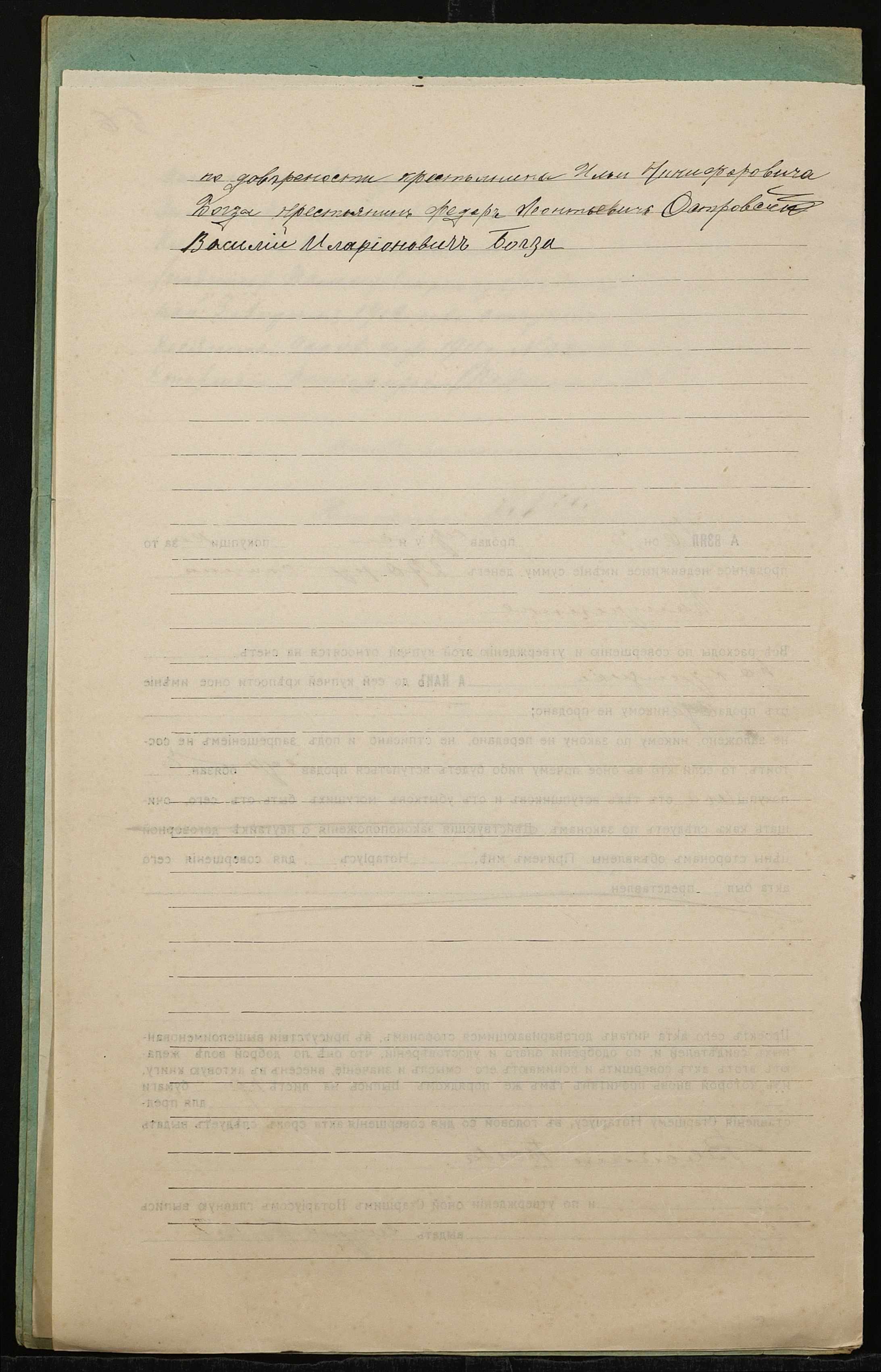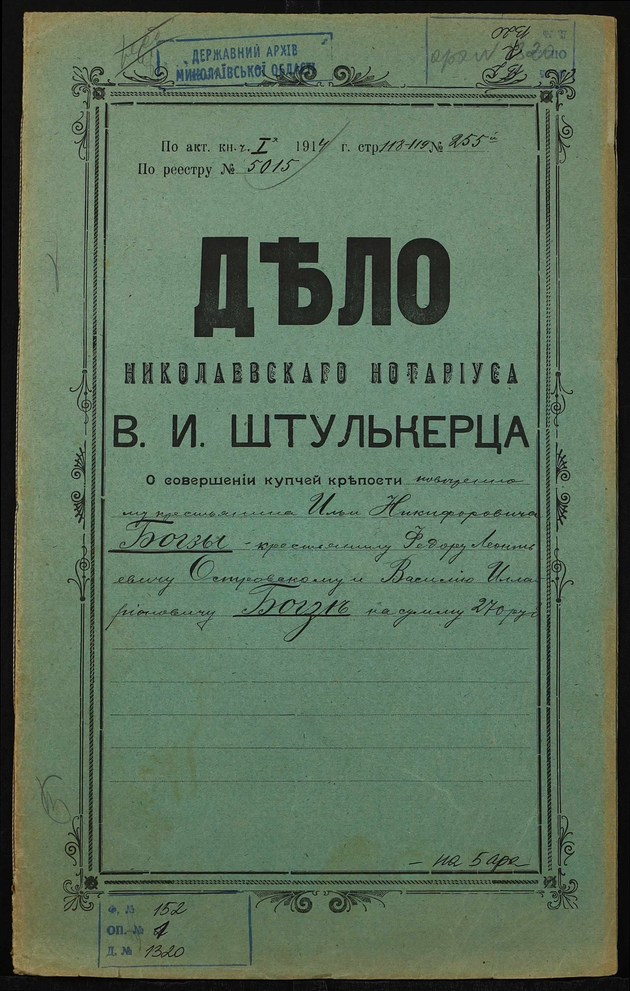 • • • • Справа № 1320 “Справа про вчинення купчої про продаж землі селянином Островським Федором Леонтійовичем (Островським Федором Леонтьевичем), повіреним Богзи Іллі Никифоровича (Богзы Ильи Никифоровича), на користь селянина Богзи Василя Іларіоновича (Богзы Василия Илларионовича)”