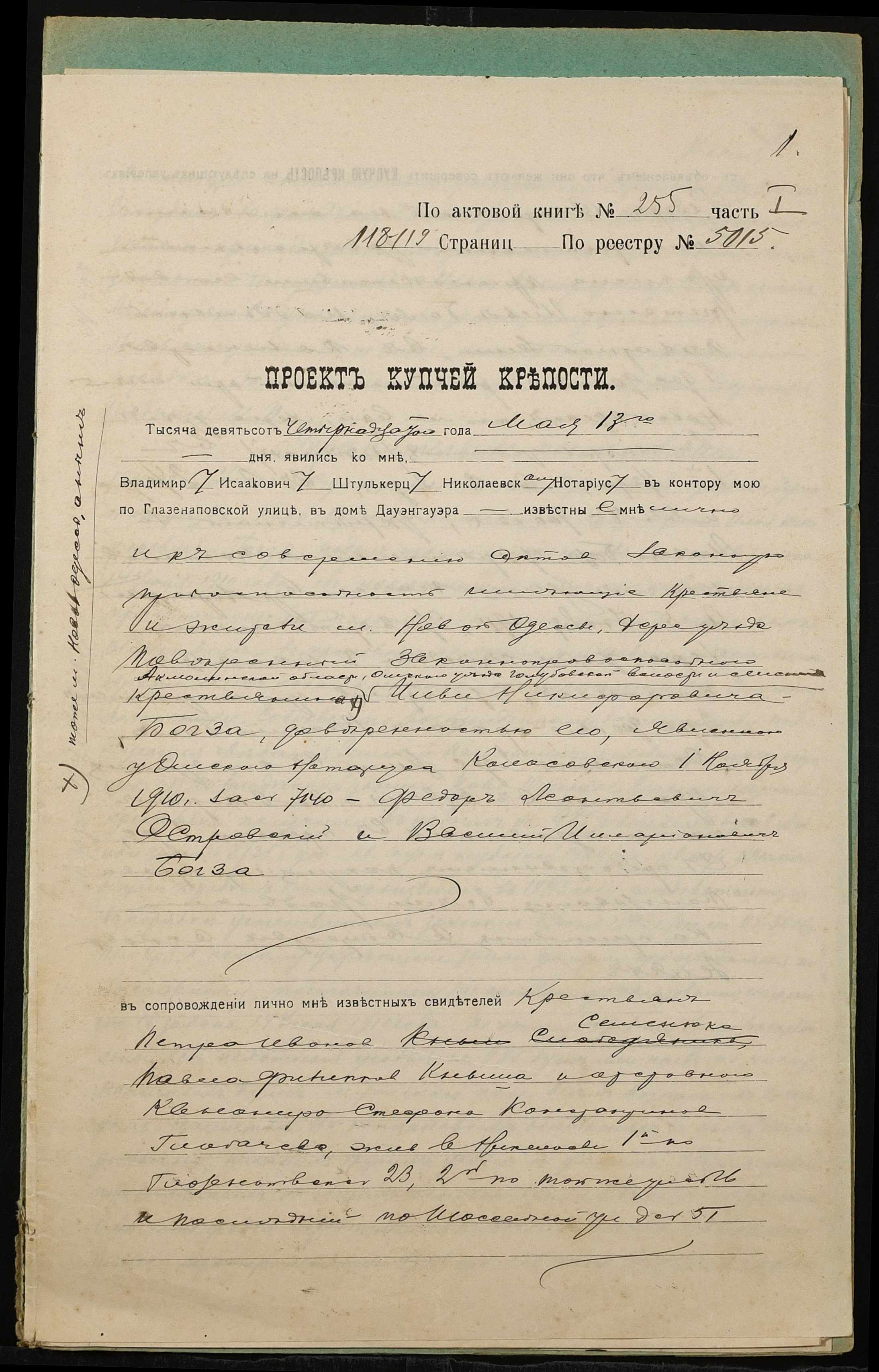 ◦ ◦ Фонд № 152 “Контора миколаївського нотаріуса Херсонського окружного суду Штулькерца Володимира Ісааковича”